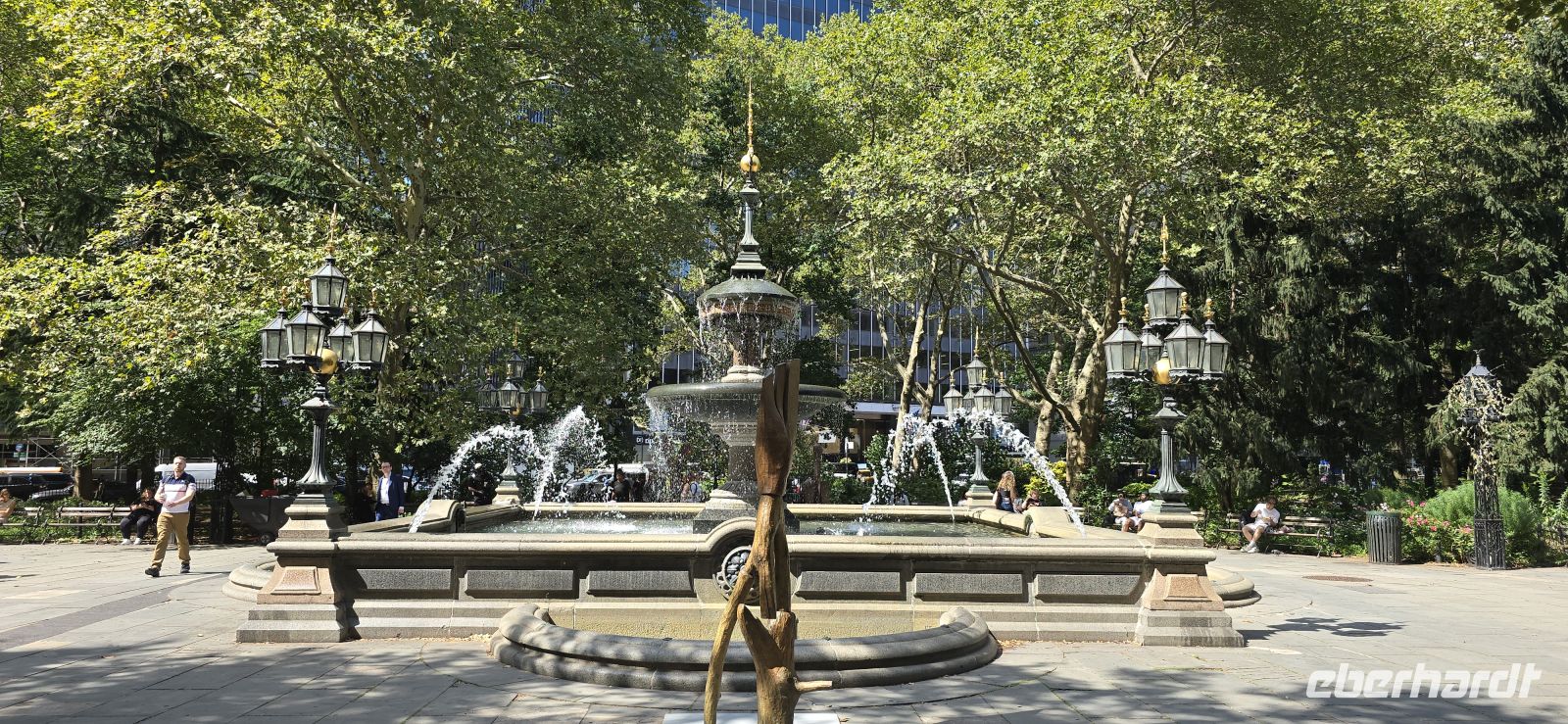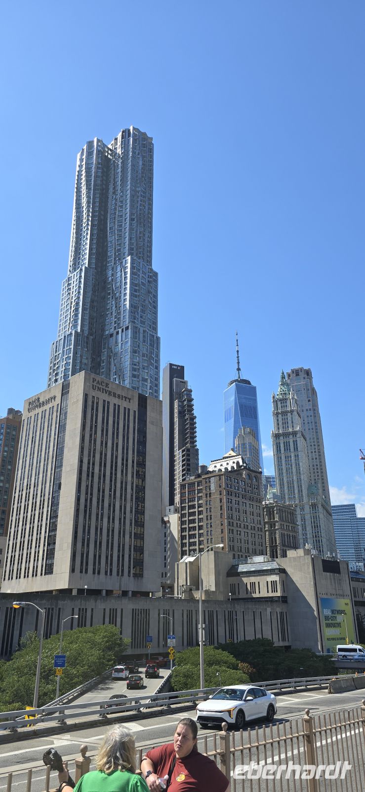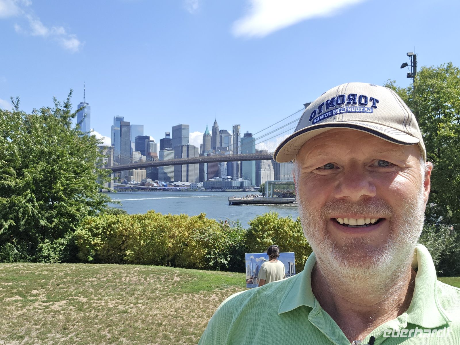 Der Nachmittag führte uns an die Brooklyn Bridge. Gemeinsam spazierten wir durch den Manhattan- und den Brooklyn Bridge Park, wo sich unzählige Fotomotive boten: die Brücke, die Skyline, der Fluss – ein Panorama, das man so schnell nicht vergisst. Einige Gäste waren nach dem langen Tag erschöpft und machten sich langsam auf den Rückweg ins Hotel. Die übrigen begleiteten mich weiter zum City Hall Park, wo wir eine kurze Erfrischungspause einlegten, bevor wir zum Ground Zero und dem 9/11 Memorial weitergingen. Der Besuch dieses Ortes war bewegend und nachdenklich – ein Kontrast zu den vielen lebhaften Eindrücken des Tages.