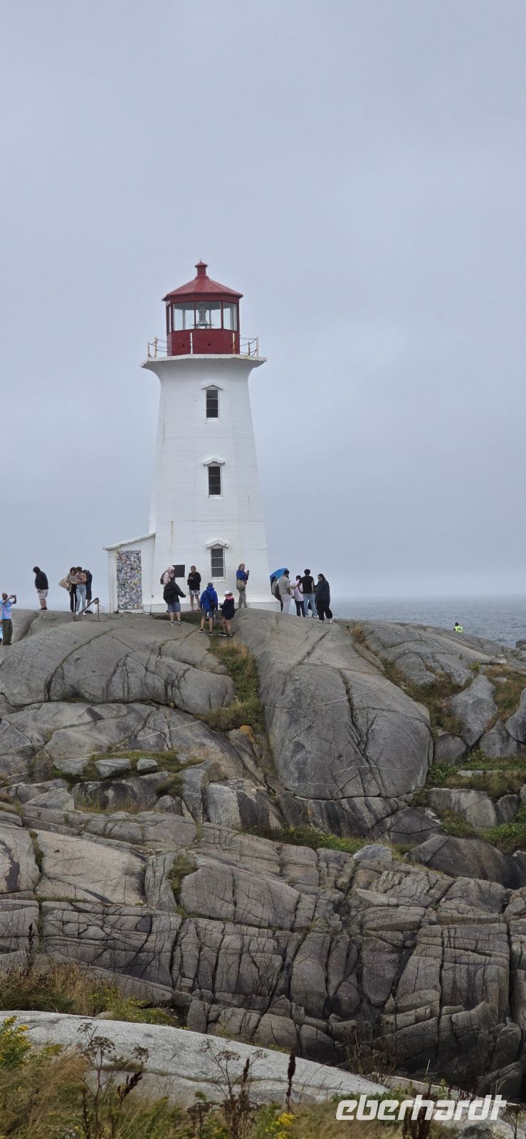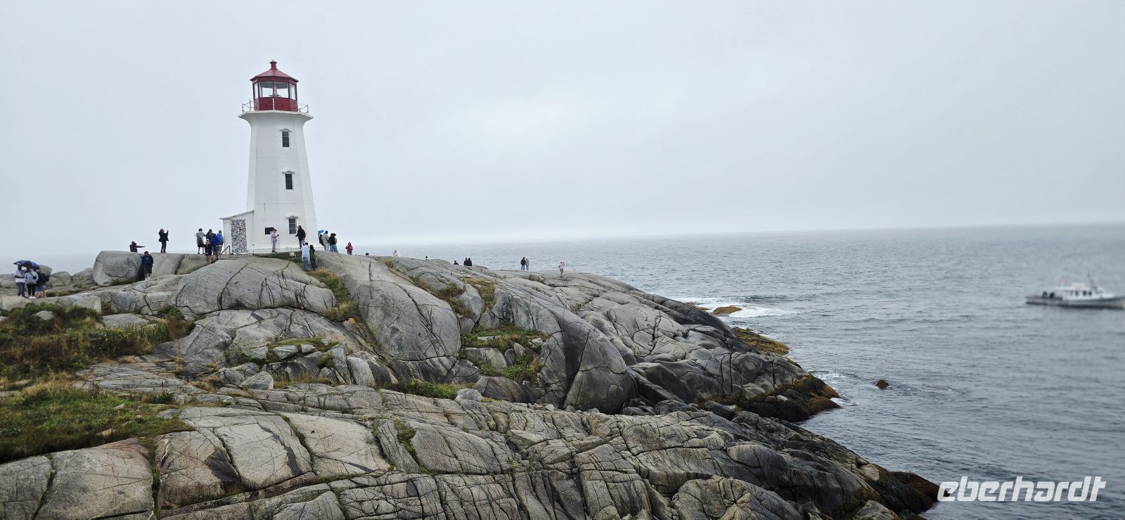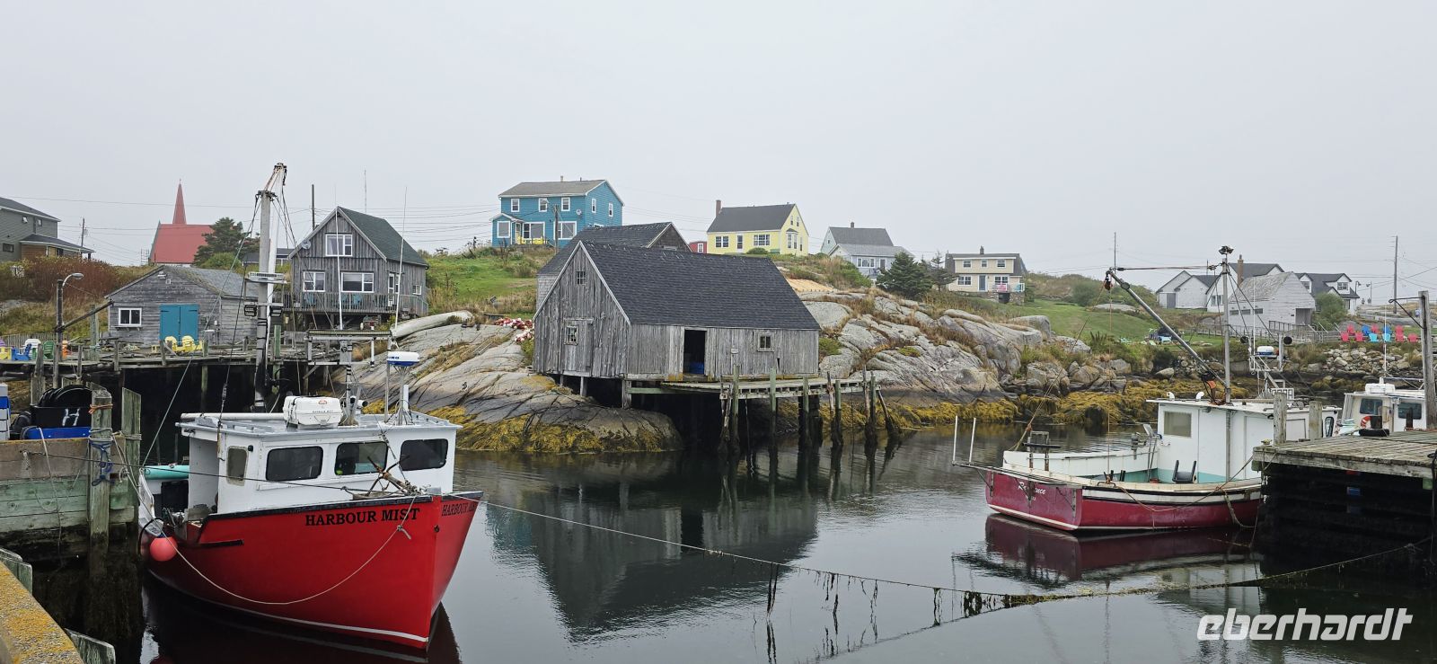 Am Nachmittag zieht Bewölkung auf, und die Fahrt nach Peggy’s Cove verläuft unter grauem Himmel mit leichtem Nieselregen. Doch die Küste selbst mit ihren kleinen Hummerfischereien macht die Fahrt besonders. Peggy’s Cove – so viel wie „Peggys Küste“ – entpuppt sich als winziger, aber überaus pittoresker Ort, der vom Tourismus regelrecht belagert wird. Kein Wunder, denn die bunten Fischerhäuschen und der Leuchtturm auf den gewaltigen Granitfelsen sind ein Postkartenmotiv par excellence. Trotz Regen lassen wir uns nicht davon abhalten, am berühmten Tony’s Kiosk eine köstliche Lobster Roll zu probieren.