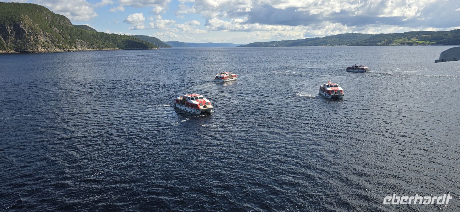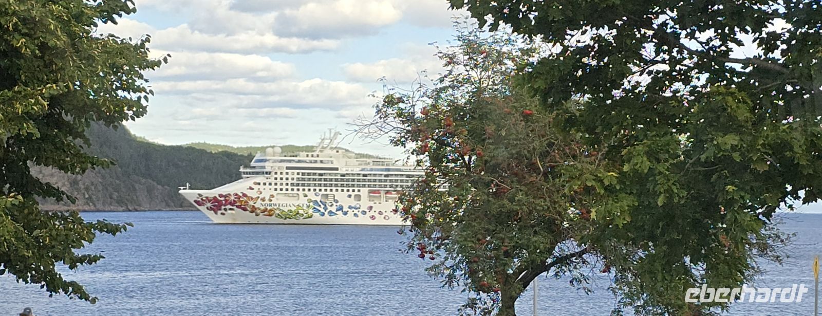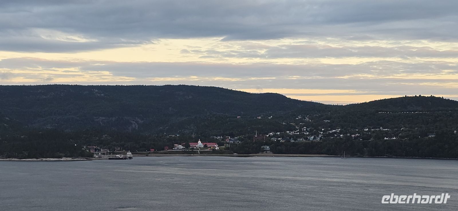 Nach diesem unvergesslichen Start des Tages erwartet uns ein leckeres Frühstück mit herrlichem Panoramablick auf den Fjord. Vor Saguenay liegen wir gemeinsam mit zwei weiteren Schiffen auf Reede, und die Tenderboote bringen uns an Land.