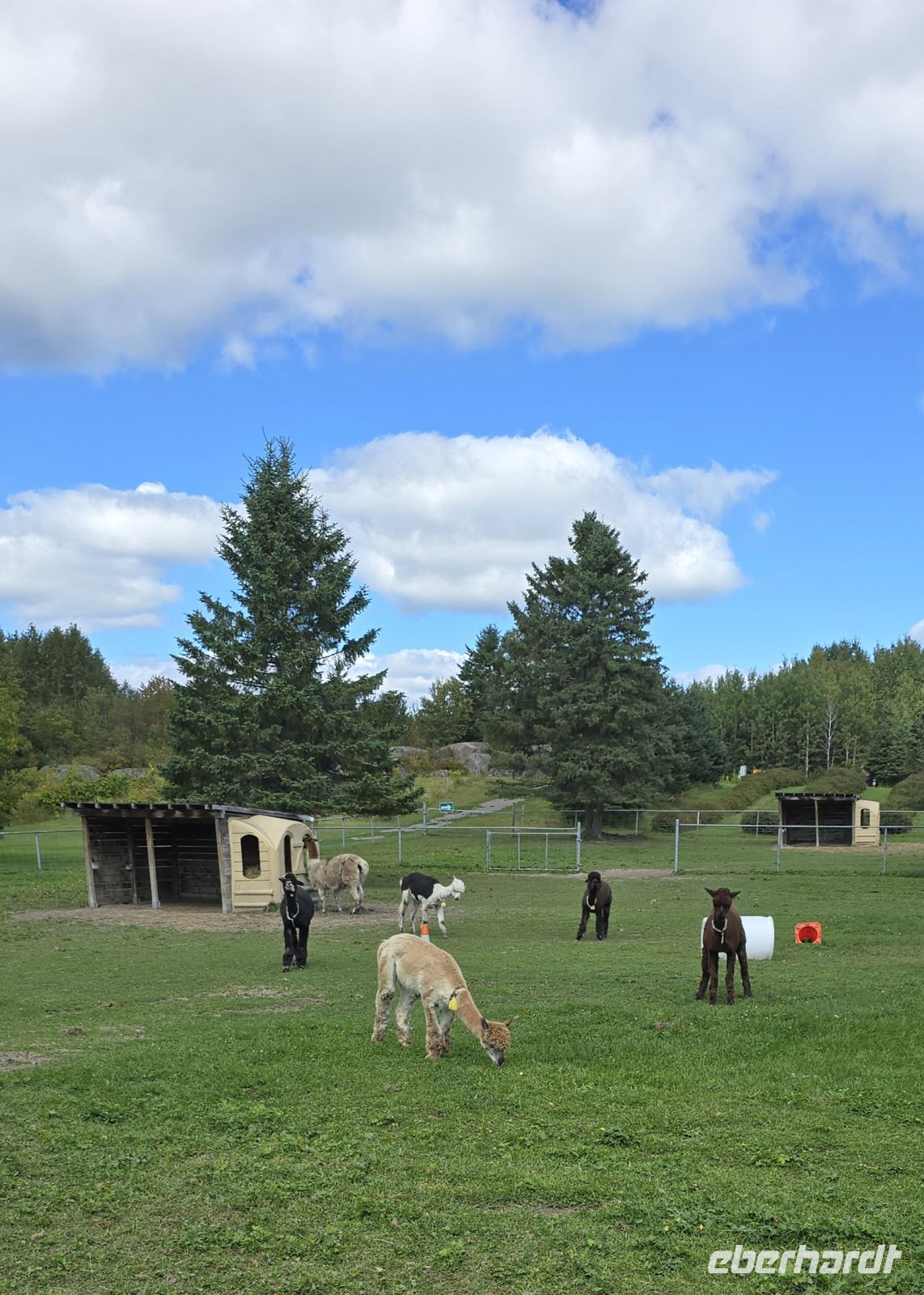 Unser Ausflug beginnt auf einer Alpaka-Farm, wo die neugierigen Tiere gierig nach Futter betteln und sich zutraulich streicheln lassen – ein echter Spaß. Anschließend erkunden wir den gepflegten Ort bei einer Stadtrundfahrt, der mit seiner Lieblichkeit sofort ins Herz fällt. Ein Besuch in einer Käserei sorgt für kulinarische Momente: Hier wird der Käse hergestellt, der für das kanadische Nationalgericht „Poutine“ so wichtig ist. Weiter geht es zur Glasbläserei, wo ein italienischer Künstler mit viel Geschick beeindruckende Kunstwerke schafft.