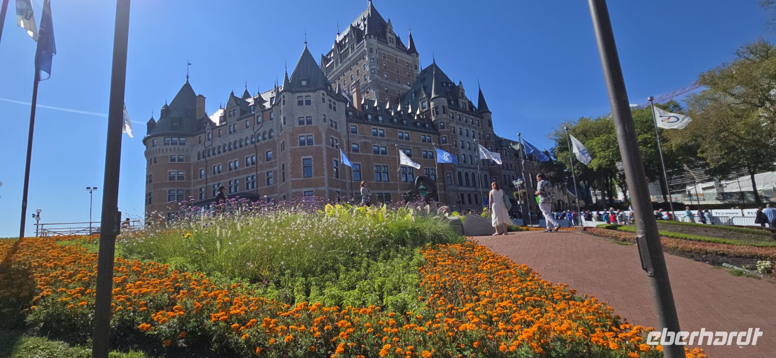 Früh am Morgen erreichen wir unser Ziel: Québec City. Schon beim Einlaufen begleitet uns strahlender Sonnenschein – ein richtiges Kaiserwetter, auch wenn die Temperaturen in den frühen Stunden noch frisch sind. Von Deck aus eröffnen sich die ersten Fotomotive: die historischen Mauern, das Château Frontenac im Hintergrund, das sich majestätisch über die Stadt erhebt.