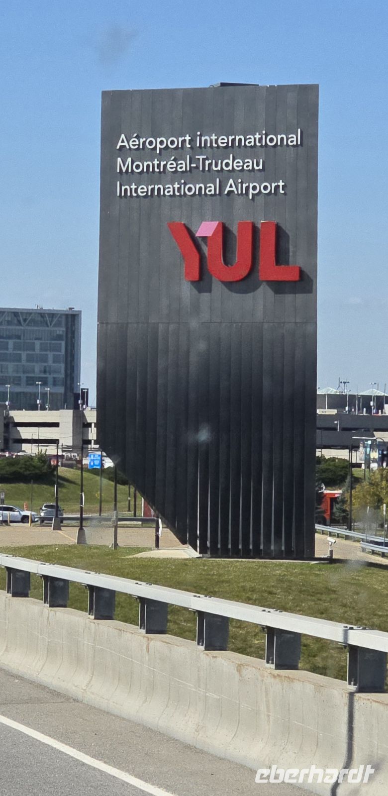 Weiter geht es Richtung Montréal. Schon bald erblicken wir das eindrucksvolle Olympiastadion und die Île Notre-Dame, bevor sich uns die Skyline der Stadt in voller Pracht zeigt. Über eine große Brücke gelangen wir wieder auf die andere Seite des Flusses und erreichen schließlich den Flughafen *Montréal-Trudeau (YUL)* – gut in der Zeit.