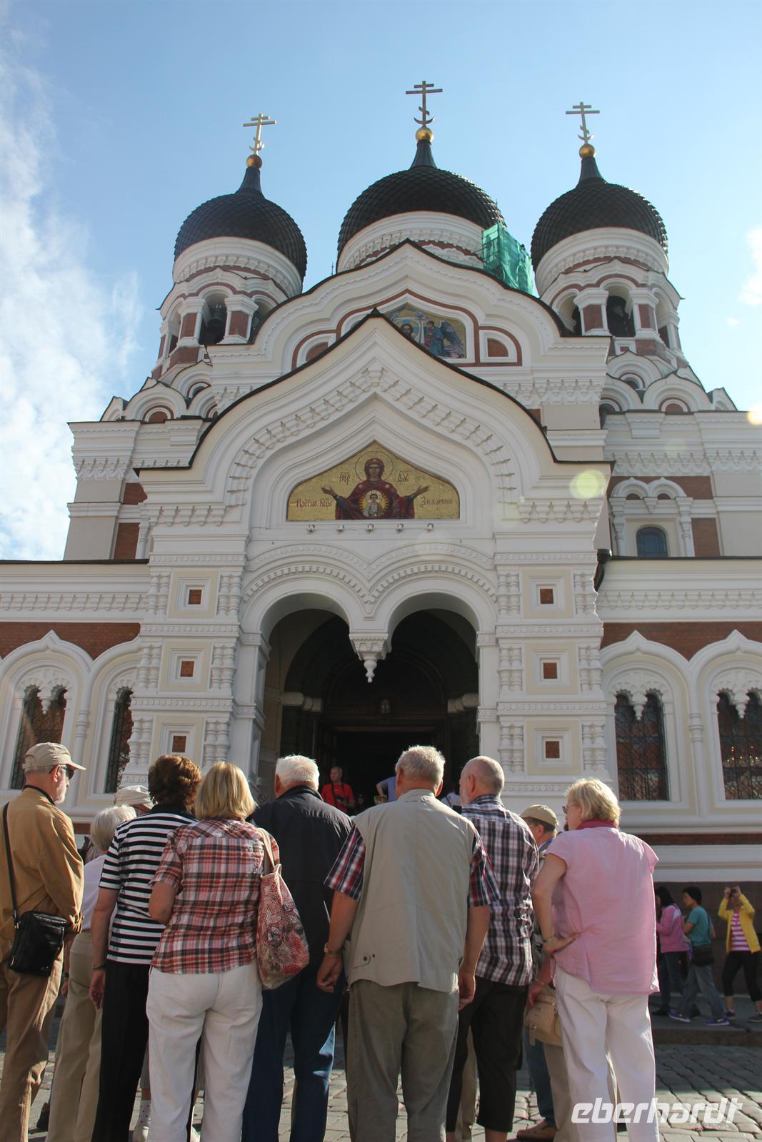 Heute ging es geschlossen mit allen Eberhardt-Gästen in die Hauptstadt Estlands: Tallinn. Das frühere Reval begeisterte uns bei einem Stadtrundgang und zeigte sich bei schönstem Wetter von seiner besten Seite. Unsere Gruppe wurde aufgeteilt in Genießer, die eher entschleunigt unterwegs waren und diejenigen, die noch schneller und besser zu Fuß sind.Wir sahen die Alexander-Newsky-Kathedrale in der Oberstadt und durchstreiften die schmalen Gässchen der Stadt. An einem Aussichtspunkt bot sich uns ein einzigartiger Blick über die Unterstadt! Schließlich ging es weiter entlang der Stadtmauer und wir erreichten den Marktplatz der Hauptstadt, wo sich die Apotheke und das Rathaus befinden. Wie uns unsere Stadtführerin Diana verriet, ist man sich in Lübeck und Tallinn uneinig, wer nun das Marzipan erfunden hat. Doch wie sollte es anders sein, die Bewohner der einen Stadt behaupten sie wären es gewesen und andersherum. Dann hatten wir Freizeit und man konnte in einem Café einen Cappuccino trinken und dabei die Postkarten an die Liebsten schreiben.Später ging es dann weiter durch die Katharinengasse zu einem ehemaligen Mönchskloster. Dort trafen dann wieder beide Gruppen aufeinander. Die Genießer-Gruppe besichtigte das Kloster jedoch nicht, sondern genoss dafür lieber die Zeit in der Stadt. Die andere Gruppe jedoch tauchte nach einer Probe des Mönchs-Schnapses ein in die Welt des ehemaligen Mönchsklosters und wurde durch die Räumlichkeiten des Klosters geführt.Am späten Nachmittag steuerten wir dann St. Petersburg an.