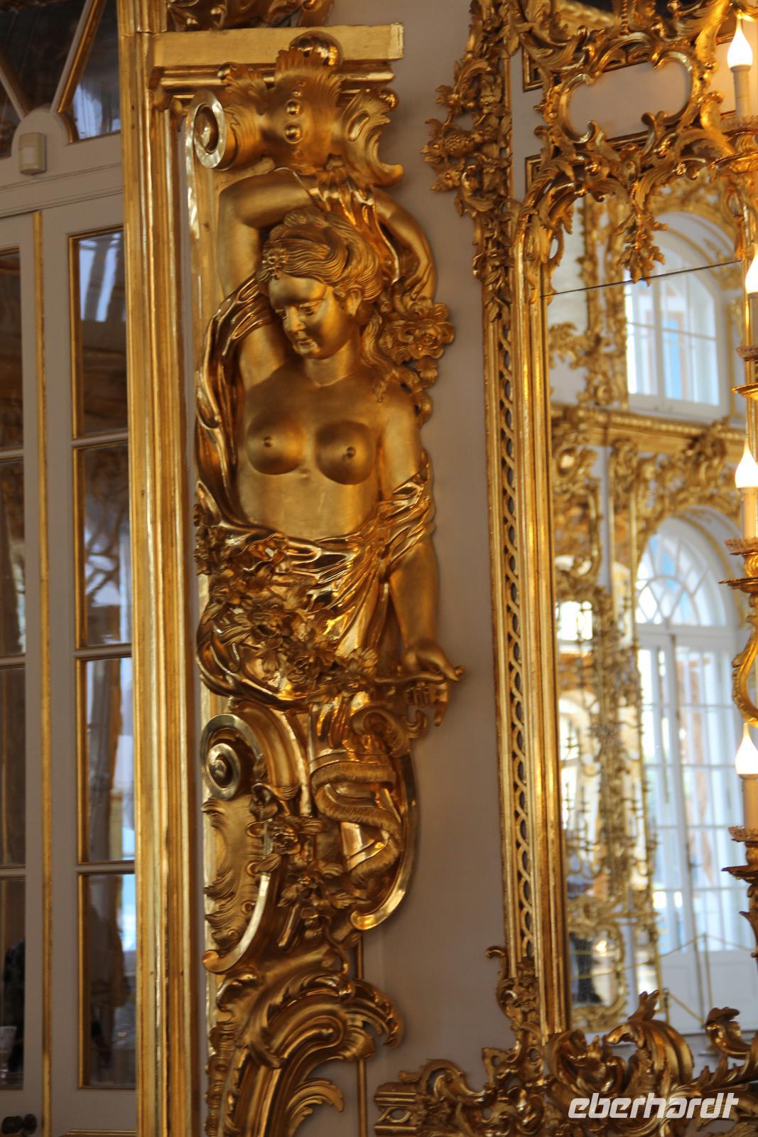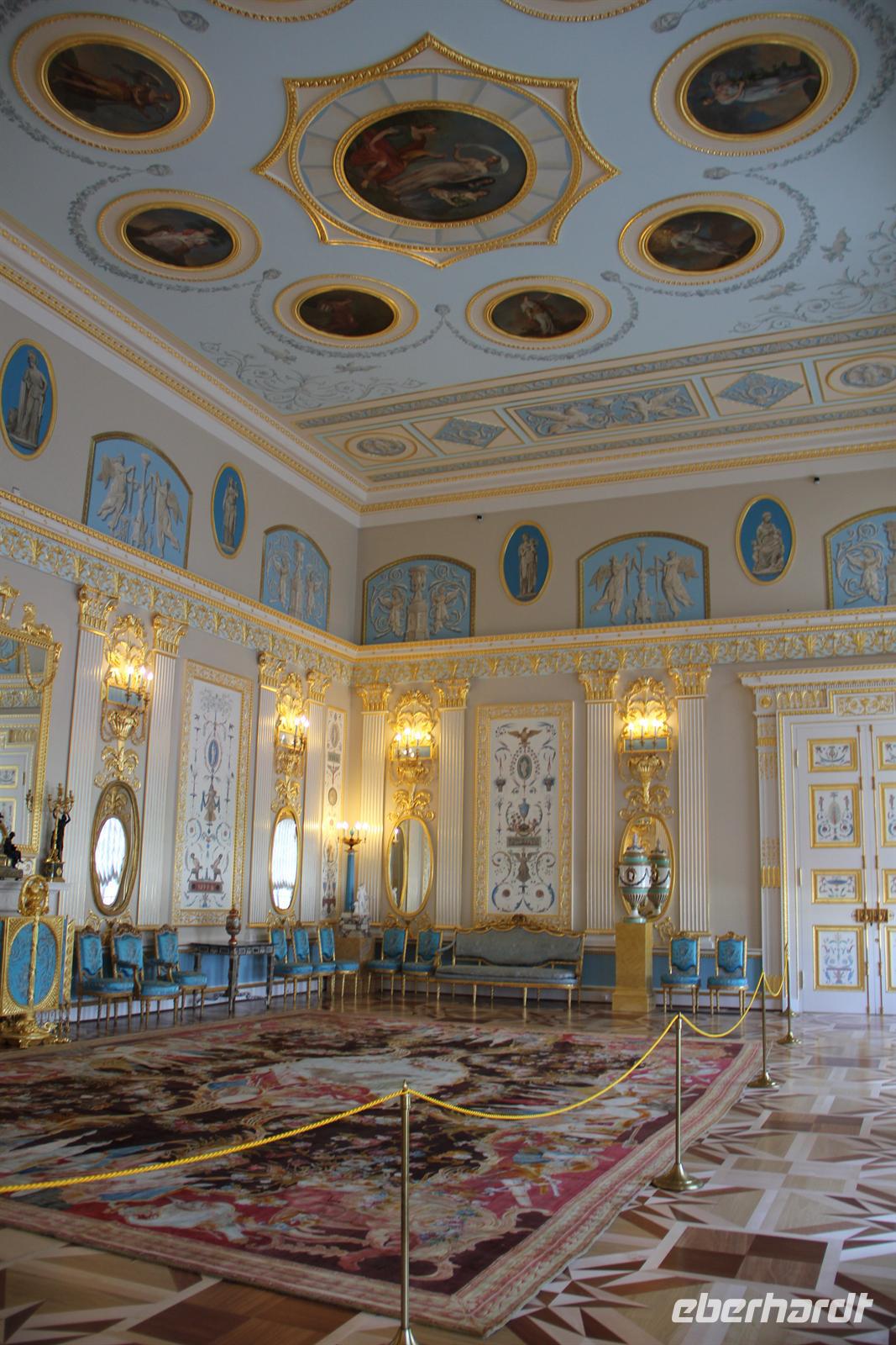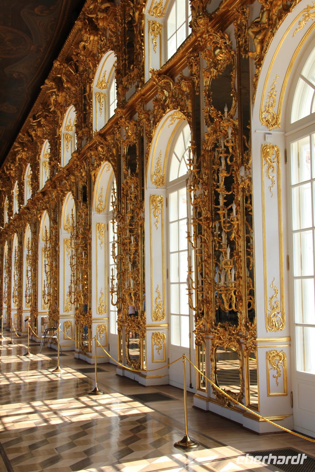 Am Morgen erreichten wir endlich das Venedig des Nordens und die Stadt der Weißen Nächte. Aus einer Fülle von Ausflügen hatten sich die meisten heute für den Katharinenpalast (in Puschkin) und den Jussupow-Palast (in St. Petersburg) entschieden. Also machte ich mich mit meiner Gruppe auf Richtung Puschkin, einer Stadt südlich von St. Peterburg gelegen und vor allem berühmt für das weltbekannte Bernsteinzimmer.Mit Reiseleiter-Funk ausgestattet besichtigten wir den prunkvollen Katharinenpalast. Wir erfuhren viel über die Räumlichkeiten des Anwesens und noch mehr über die russische Zarenschaft. Der Höhepunkt des Besuches war das Bernsteinzimmer. Auch wenn das Zimmer nicht so groß ist, wie die meisten gedacht haben, beeindruckend sind die vielen Verzierungen und Mosaike an den Wänden in jedem Fall! Danach spazierten wir noch gemütlich durch den angrenzenden Park und ließen die Sonne auf uns nieder scheinen. Beim nachfolgenden Mittagessen in wunderbarem Ambiente mit Blick auf den Katharinenpalast wurden wir von russischen Folklore-Künstlern unterhalten.Am späten Mittag fuhren wir dann zurück nach St. Petersburg. Angekommen im Jussupow-Palast besichtigten wir zuerst die Kellerräume des Anwesens, in welchen eine Szene aus dem Leben von Rasputin nachgestellt ist. Schließlich wurden wir durch das Haus geführt und durften auch einem Lied eines russischen Männerquartetts lauschen. Im Theater des Hauses werden heute noch Stücke und kleine Opern aufgeführt.Nach diesem Tag voller schöner Eindrücke, viel Wissen über den russischen Stammbaum und sehr viel Sonne ging es zurück zur AIDAsol, welche über Nacht in St. Petersburg blieb.