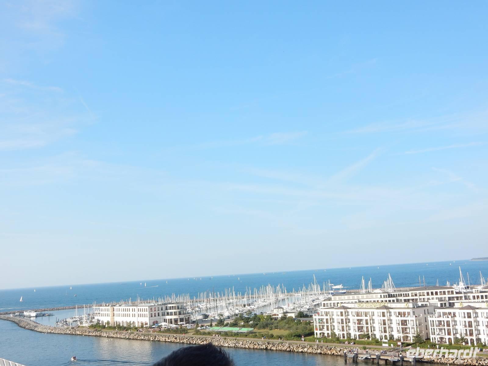 17:15 ertönt der Ton zur international vorgeschriebenen Schiffssicherheit an der alle Gäste teilnehmen müssen. Danach ziehen sich alle schnell auf das Sonnendeck zurück, um das Auslaufen aus Warnemünde in die weite See mitzuerleben. Es werden viele unvergessliche Bilder geschossen und nachdem uns ein Schwall an Hupen der anderen Schiffe verlassen hat, begegeben wir uns zum Essen in eines der vielen Restaurants. Wir lassen den Abend an der Poolbar mit einem Glas Sekt ausklingen. Recht schnell wird die Runde aufgelöst und alle ziehen sich nach diesem ereignisreichen Tag zurück.