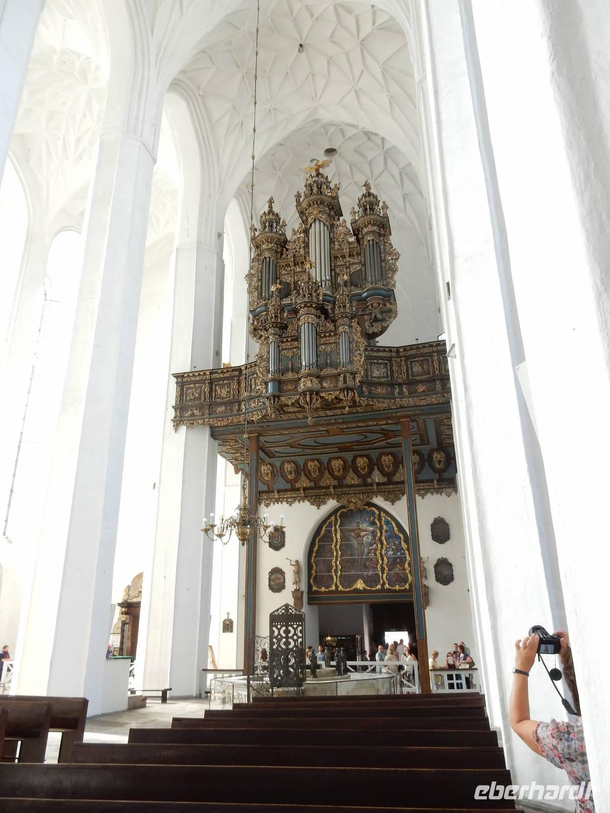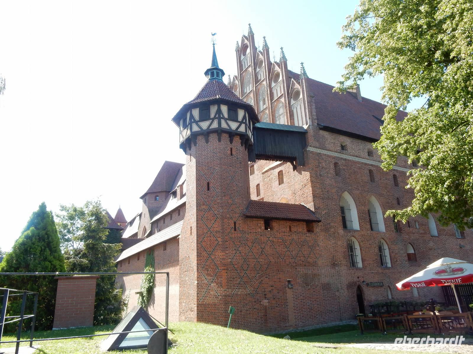 Viele haben sich für den Ganztagsausflug entschieden, welcher uns zur Marienburg und in die Stadt reinführt. Wir fahren ca. eine Stunde zur Burg. Der Weg führt durch typische kleine polnische Dörfer. Unser Guide weist und darauf hin, dass das Gebiet ein Storchengebiet ist. Wir sehen viele Nester und auch ein zwei Störche auf den Feldern. Man kann schon von weiten die mächtige Anlage sehen. Wir machen einen zwei stündigen Rundgang durch die größte Backsteinanlage Europas fahren wir in die Stadt hinein. Dort stärken wir uns in einem Hotel bei belegten Brötchen. Die Stadt ist wunderschön und prall gefüllt mit Touristen. Unser Guide führt uns in die berühmte Marienkirche. Nach der interessanten Besichtigung haben wir etwas Freizeit um dann zurück zum Schiff zu fahren.