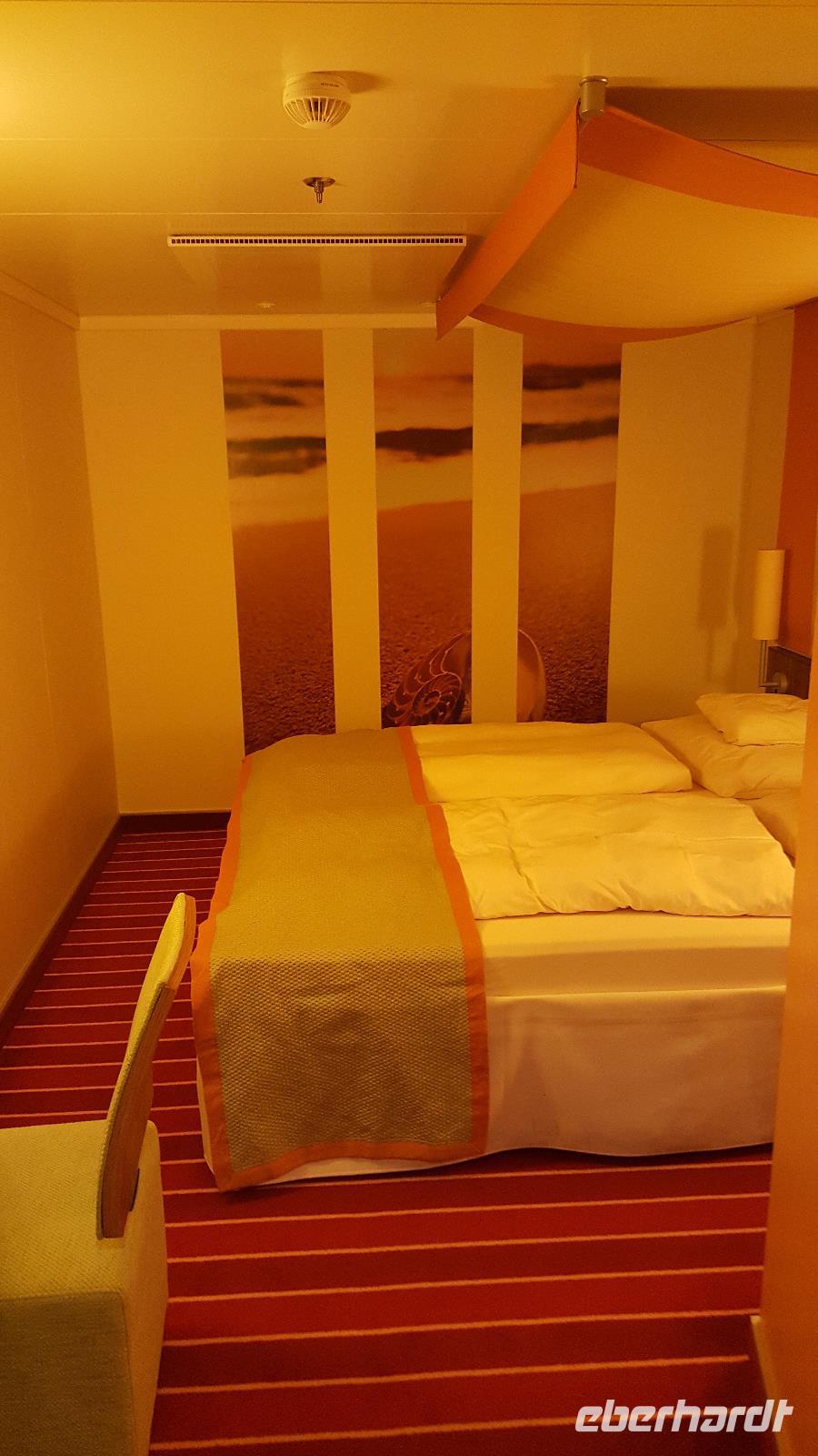 Durch einen Schwertransport wurden wir ausgebremst. Somit kamen wir mit leichter Verspätung ca. 16:00 Uhr am Anleger in Warnemünde an. Dafür verlief der Check-In relativ flott, da wir fast die einzigen waren, die noch einchecken mussten. Als alle wohlbehalten auf dem Schiff waren, wollte natürlich jeder erst einmal seine Kabine beziehen und sich ein wenig frisch machen. Doch die Ruhe währte nicht lang: die Seenotrettungsübung stand uns vor dem Ablegen ja auch noch bevor.