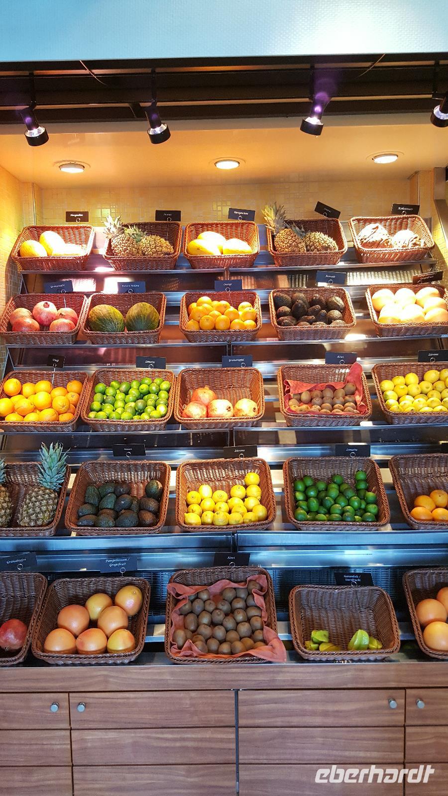 Heute konnten wir ausschlafen, denn wir verbrachten den ganzen Tag an Bord. Viele der Passagiere kamen erst etwas später zum Frühstück, sei es der Party am Vorabend geschuldet oder doch der Zeitverschiebung, denn wir mussten die Uhren eine Stunde vor stellen. Doch da alle Restaurants ja lange genug auf haben und auch immer genügend Essen vorhanden war, konnte jeder ausgiebig frühstücken.