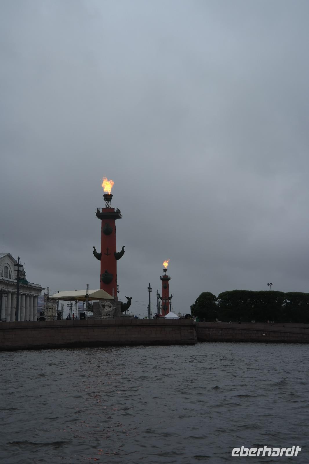 St. Petersburg lag am heutigen Morgen im Nebel. Auch über den Tag wurde das Wetter leider nicht besser. Nichtsdestotrotz haben fast alle das Schiff für einen Ausflug verlassen. Nicole und ich haben sich jeweils aufgeteilt. Somit hat Nicole den Ausflug „Stadtrundfahrt und Eremitage" begleitet und ich den Ausflug zur Isaakskathedrale mit Bootsfahrt. Die Isaakskathedrale sah schon von außen sehr imposant aus: die riesige, vergoldete Kuppel konnte man schon aus weiter Entfernung erkennen. Innen war es genauso prunkvoll: viele vergoldete Verzierungenen und bunte Mosaiken ließen uns sprachlos werden. Nach einer Führung durch die Kathedrale ging es dann schon weiter. An der Blutskirche stiegen wir aus und konnten noch einige Bilder machen bevor wir auf das Boot konnten und St. Peterburg vom Wasser aus erkundeten. Durch den Feiertag hatten wir das Glück, dass die „Leuchttürme" an waren. Zwei riesige Säulen, die aussahen wie Fackeln wurden an diesem Tag angezündet. Auf der Newa schipperten wir also an der Eremitage und der Peter-und Paul-Festung entlang und konnten trotz des schlechten Wetters einige tolle Sehenswürdigkeiten fotografieren. Der Ausflug endete wieder am Schiff und wir wurden durch einige der freundlichen Crew-Mitglieder mit wärmendem Tee und Vodka in Empfang genommen.