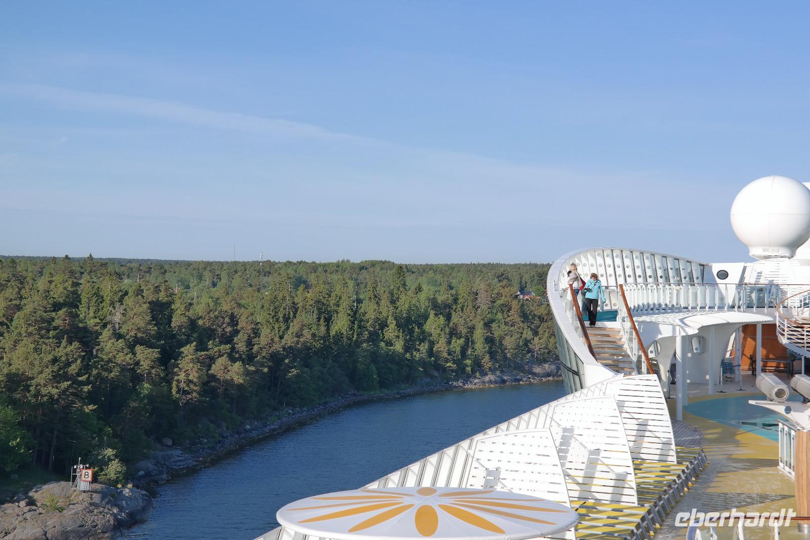 Früh am Morgen lockte es viele auf das Sonnendeck um die spektakuläre Schärenfahrt mitzuerleben. Vorbei an den vielen kleinen schwedischen Inseln genossen wir die Einfahrt nach Stockholm bei strahlendem Sonnenschein. Gegen Mittag haben wir zum Kapitänsfoto geladen und Nicole hat diese Möglichkeit genutzt, um sich von den Gästen schweren Herzens zu verabschieden. Wir waren alle sehr traurig, dass sie uns verlassen musste.