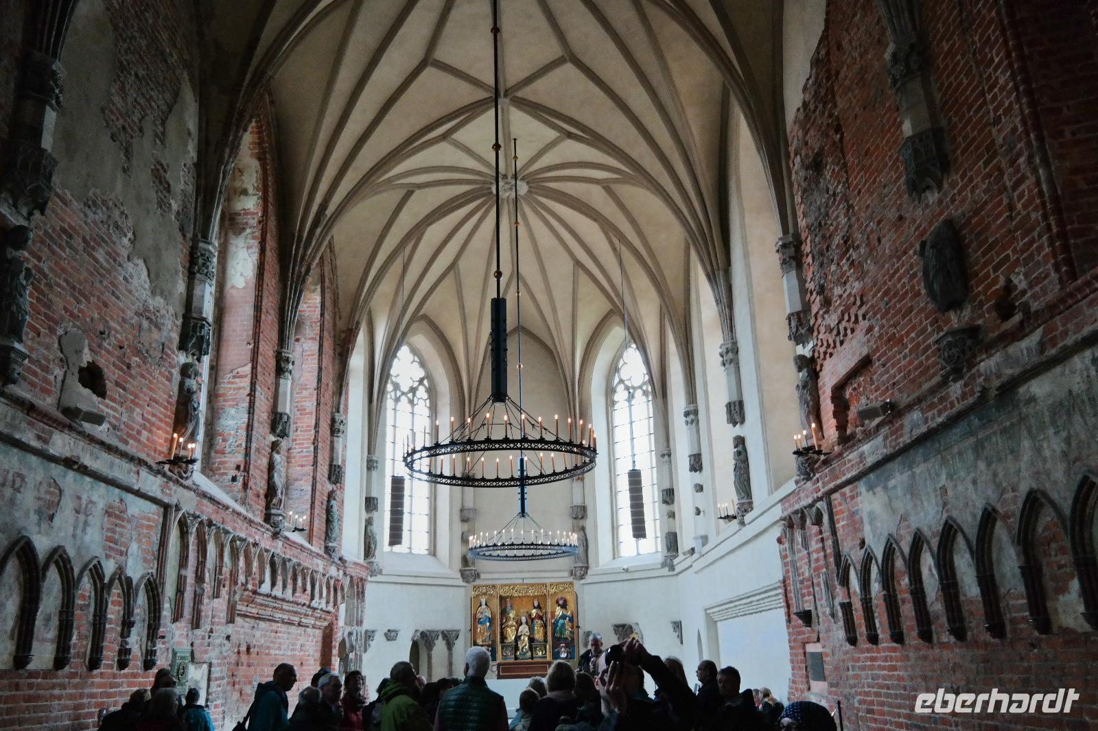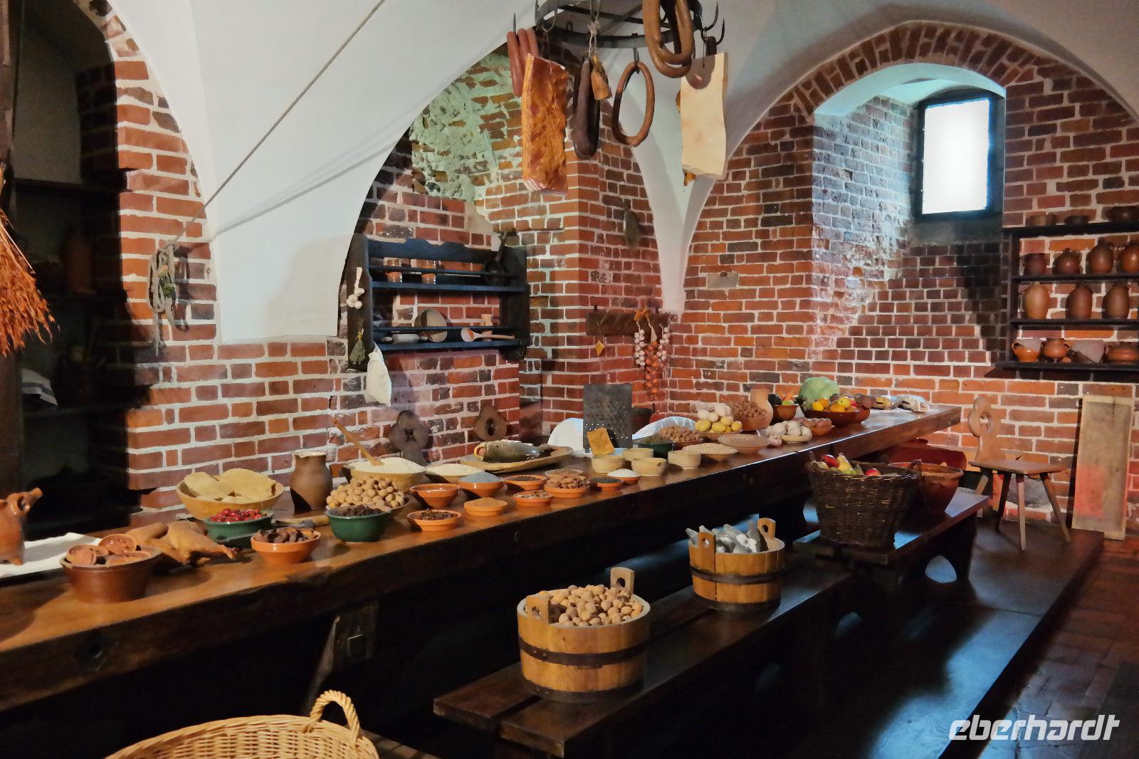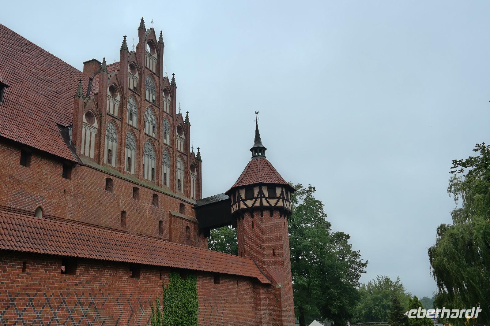 Der Hafen von Gdingen begrüßte uns regnerisch. Leider wurde dies im Laufe des Tages auch nicht besser sondern eher schlechter. Auf dem Weg zu unserem ersten Ausflugsstopp, der Marienburg, waren wir sehr betrübt über das Wetter. Glücklicherweise hatte es für einige Zeit aufgehört zu regnen, doch dieses Wetter hielte nicht lang. Kaum waren wir am Haupttor der Burg angelangt, mussten wir wieder unsere Regenschirme zücken. Bei der Führung durch die Marienburg konnten wir viele Räume besichtigen, unter anderem die Küche oder auch die kleine Kirche.