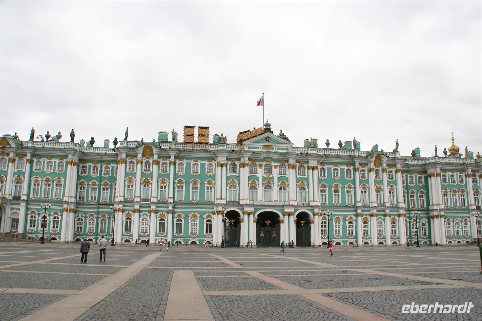 Heute starten die Ausflüge sehr zeitig. Sind wir doch zu Tagesausflügen unterwegs, um weitere herausragende Sehenswürdigkeiten St. Petersburgs und der Umgebung zu bestaunen und zu bewundern. Simone genießt mit ihren Gästen eine Stadtrundfahrt vorbei an der altehrwürdigen Universität und der Admiralität zur Peter-Paul-Festung. Gemeinsam besichtigen sie die dreischiffige Peter-Paul-Kathedrale, die im Inneren meisterhaft im barocken Stil gestaltet ist. Seit Zar Peter dem Ersten wurden alle Zaren der Romanows hier beigesetzt. Seit 1998 ruht auch der letzte Zar, Nikolaus II., hier. 1918 mit seiner Familie und Dienerschaft in Jekatarinburg erschossen wurde er hier Ende des 20. Jahrhunderts beigesetzt. Nach einem schmackhaften und reichhaltigen Mittagessen in einem festlichen Stadtpalast waren die Kunstschätze der Eremitage das nächste Ziel. Der Besuch in einem der weltgrößten Museen nahm fast den ganzen Nachmittag in Anspruch - trotzdem sahen wir nur wenige der ausgezeichneten Gemälde und Skulpturen. Katharina die Große war nicht nur eine bewundernswerte Zarin, sondern auch eine große Kunstkennerin. Sie begründete einst die Sammlung, die später durch den Petersburger Adel wie den Jussupows, den Stroganows, den Scheremetews und anderer mehr erweitert wurde. Heute besitzt die Eremitage fast drei Millionen Kunstwerke, von denen nur zwei Prozent ausgestellt sind - welch ein Reichtum! Übrigens sind dies 60.000 Kunstwerke - im Louvre in Paris sind es ca. 35.000 Werke. Nun standen wir vor Werken von Leonardo da Vinci, Michelangelo, Raffael, Tizian, Goya, Rubens, van Dyck, Lucas Cranach d. Ä., Van Gogh, Monet, Kandinsky und Picasso ... wir hätten noch viel mehr Zeit für unsere „Bilderreise durch die Kunstgeschichte“ benötigt. Und ohne unsere Reiseleiterin Irina wäre auch dies so schnell nicht möglich gewesen. Danke für diese kompakte und sachkundige Führung!