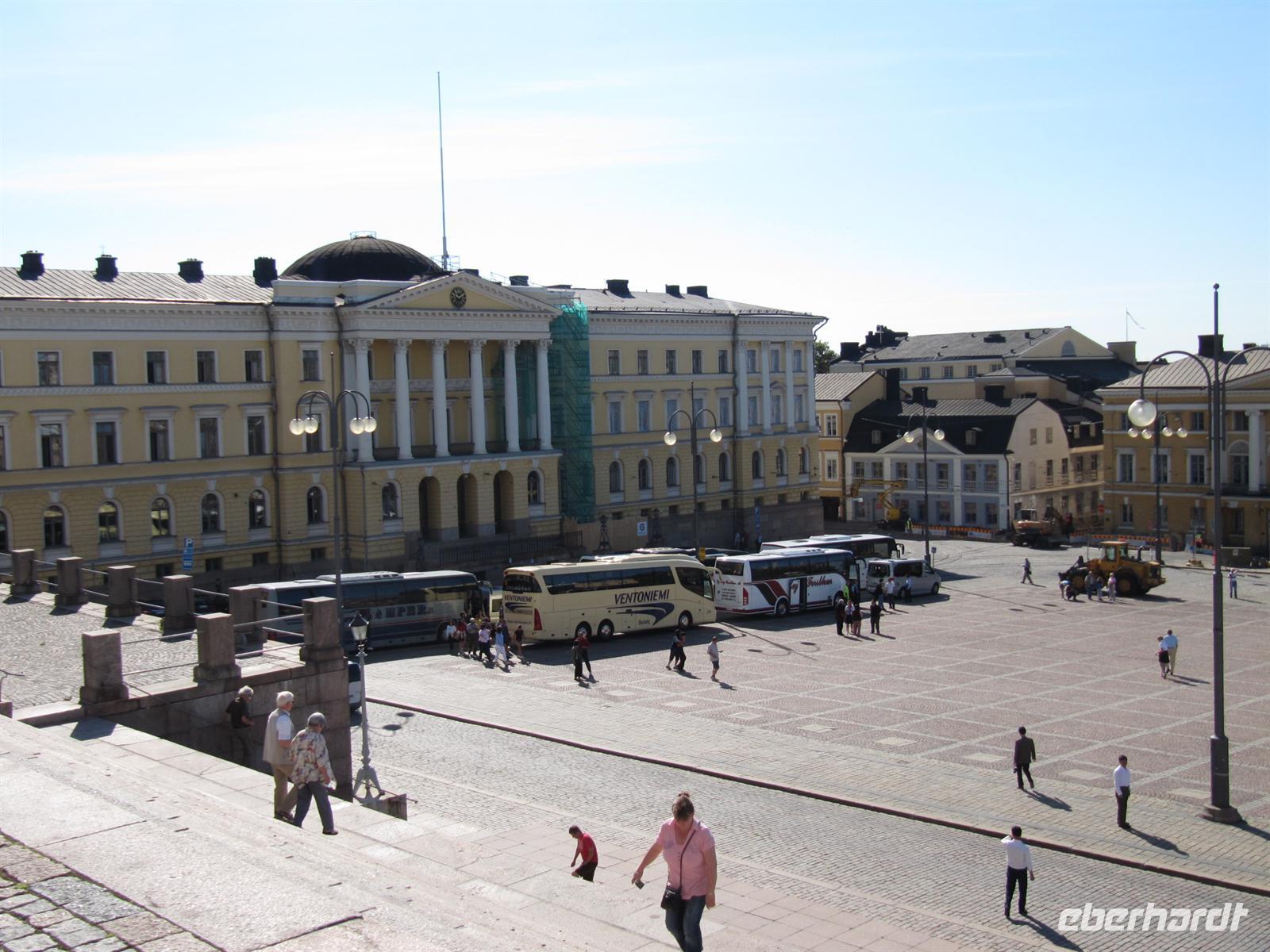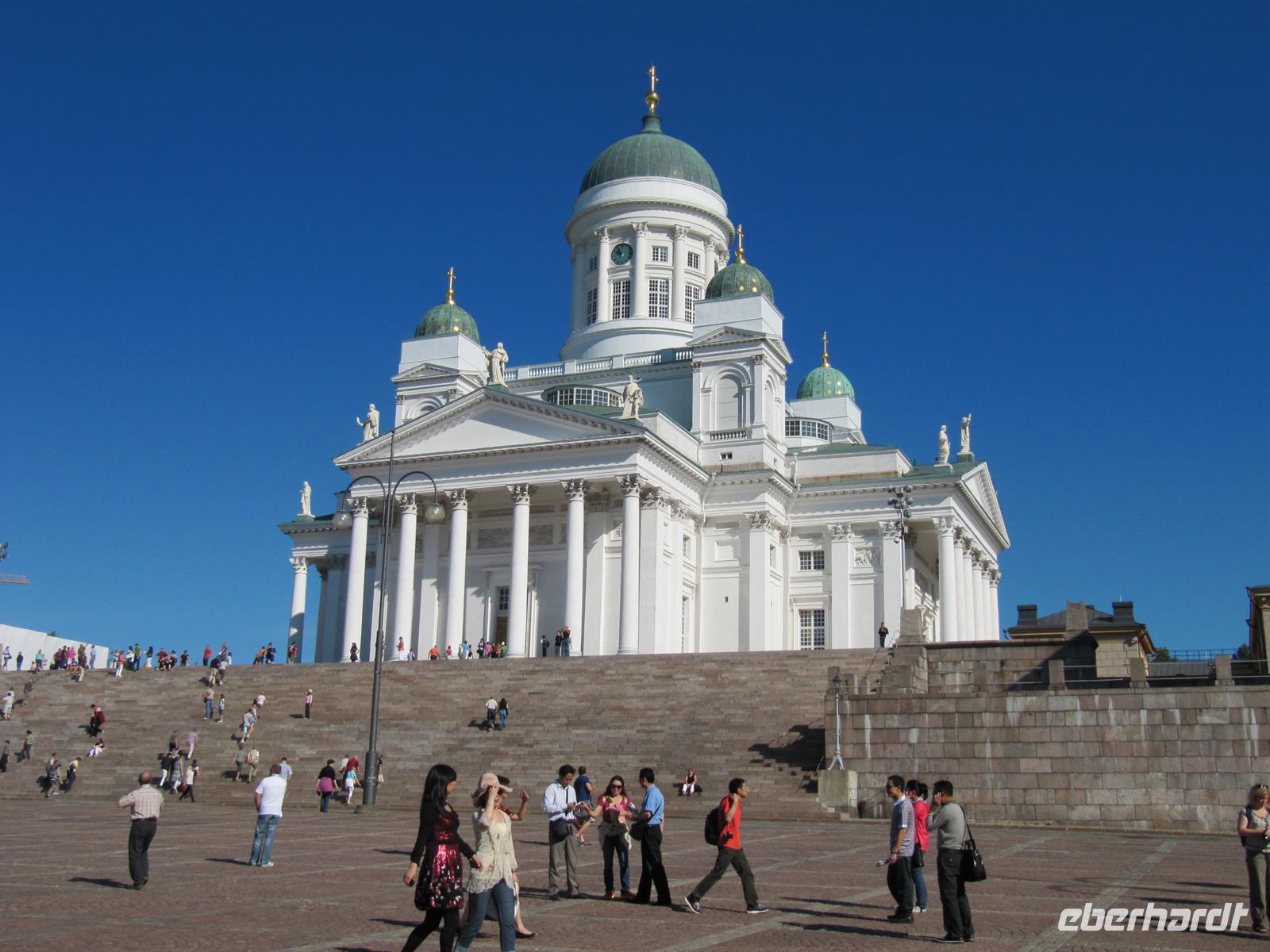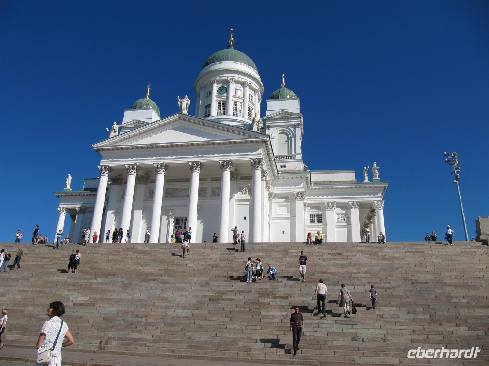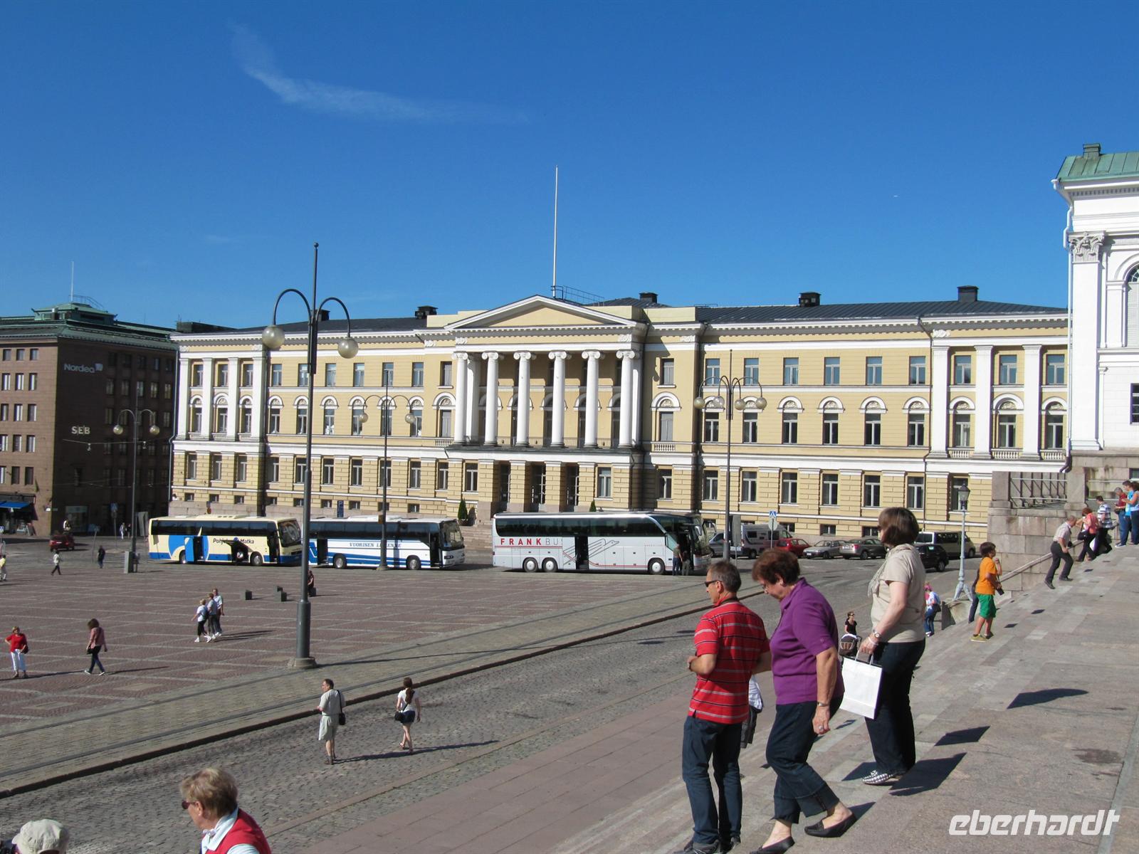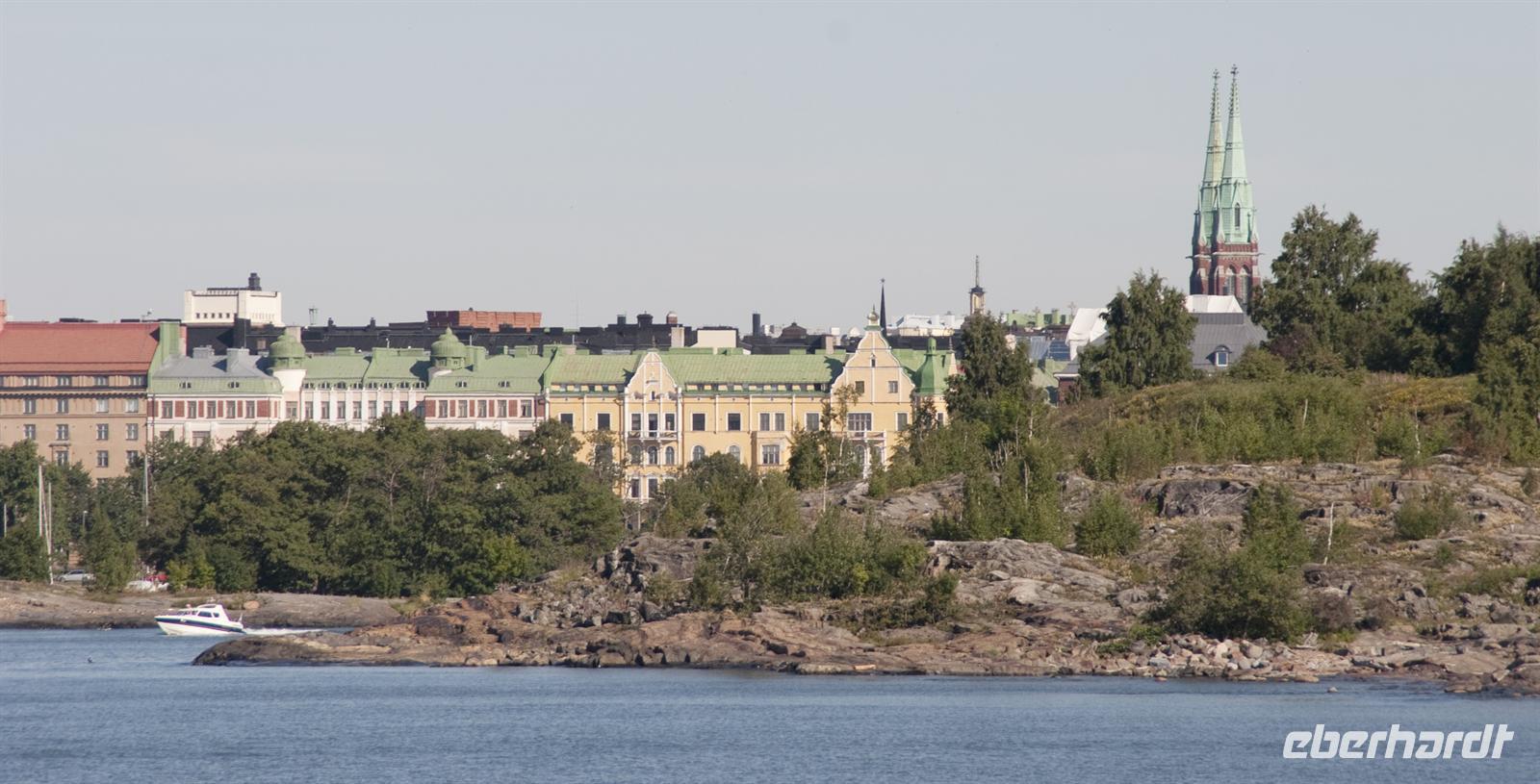 In der Nacht stellten wir die Uhr eine Stunde zurück. Pünktlich 08.00 Uhr erreichten wir den Hafen von Helsinki, der Hauptstadt Finnlands. Per Bus und Schiff erkundeten wir mit unseren Gästen die Stadt. Im Herzen bewunderten wir das prachtvolle Ensemble der Bauten am Senatsplatz. Hier, wo der Berliner Architekt Carl Ludwig Engel, ein Schüler von Friedrich Schinkel, sehenswerte Bauten im Stil des Klassizismus erbauen ließ. Der strahlend weiße Dom überragt nicht nur den Platz, sondern das gesamte Stadtbild. Über die gewaltige Freitreppe stiegen wir hinauf und besichtigten diesen im Inneren. Zudem zeugt die Statue des russischen Zaren Alexander I. von der engen Verbindung Helsinkis und Finnlands zu Russland. Während der Stadtrundfahrt sahen wir auch das alte Olympiastadion mit dem Denkmal des Finnischen Läufers Paavo Nurmi, bestaunten die modernen Gebäude wie die Finlandia-Halle, geschaffen von Alvar Alto, und den Sibelius-Park mit dem großen orgelförmigen Denkmal, das dem großen finnischen Komponisten Jean Sibelius gewidmet ist. Abschließend besuchten wir die berühmte Felsenkirche, die sich fast versteckt im Stadtteil Lutherinkatu befindet. Der Kircheninnenraum ist aus einem Felsen gesprengt, über diesem erhebt sich heute eine flache, rund Kupferkuppel. Die Akustik gilt als außergewöhnlich. Zum Beweis begann ganz sacht ein Klavier zu spielen. So bekammen wir einen kleinen Eindruck. Unsere Gäste, die mit dem Boot unterwegs waren, erblickten die Stadt vom Meer aus und fuhren rund um die Seefestung Suomenlinna.