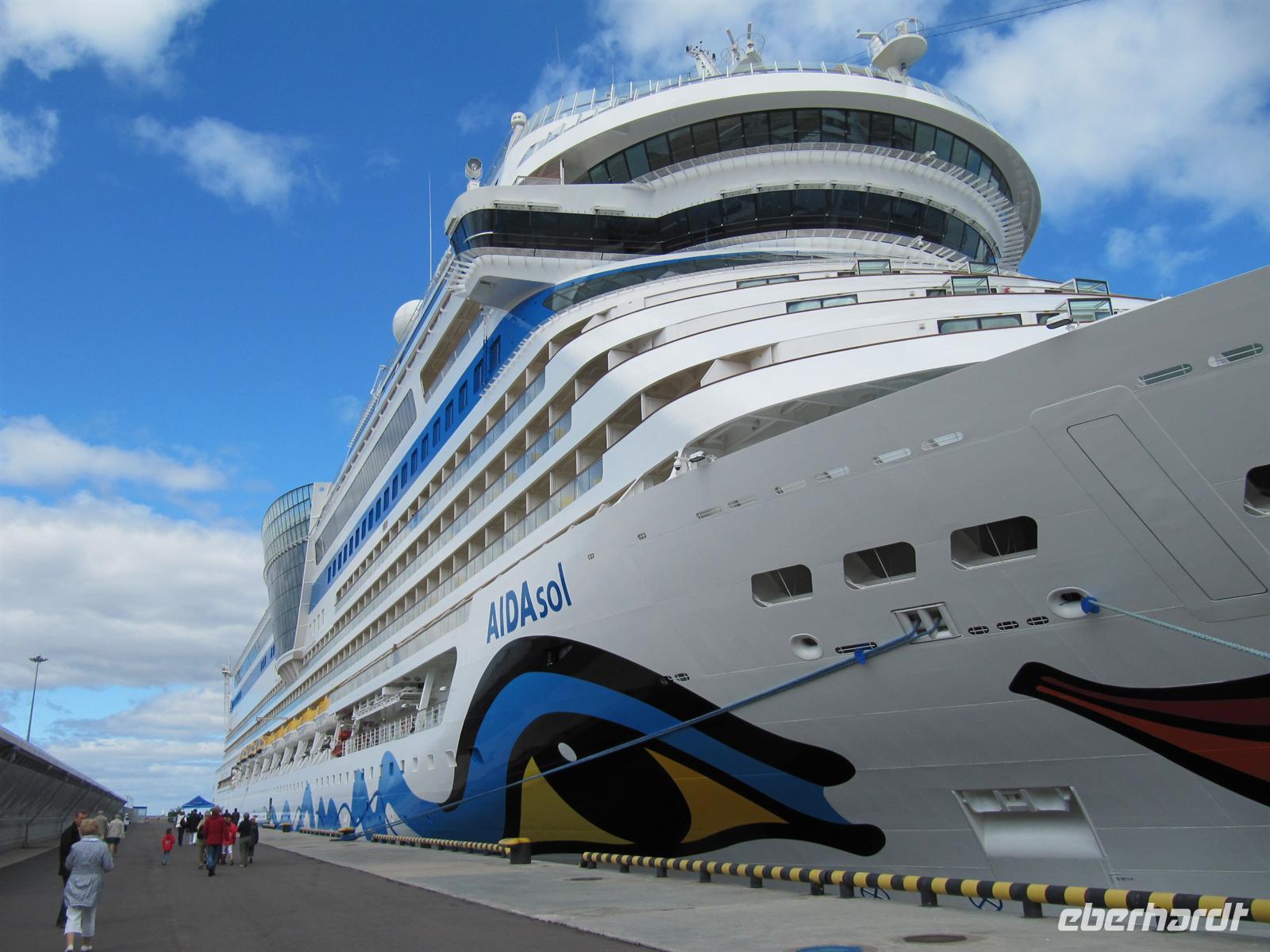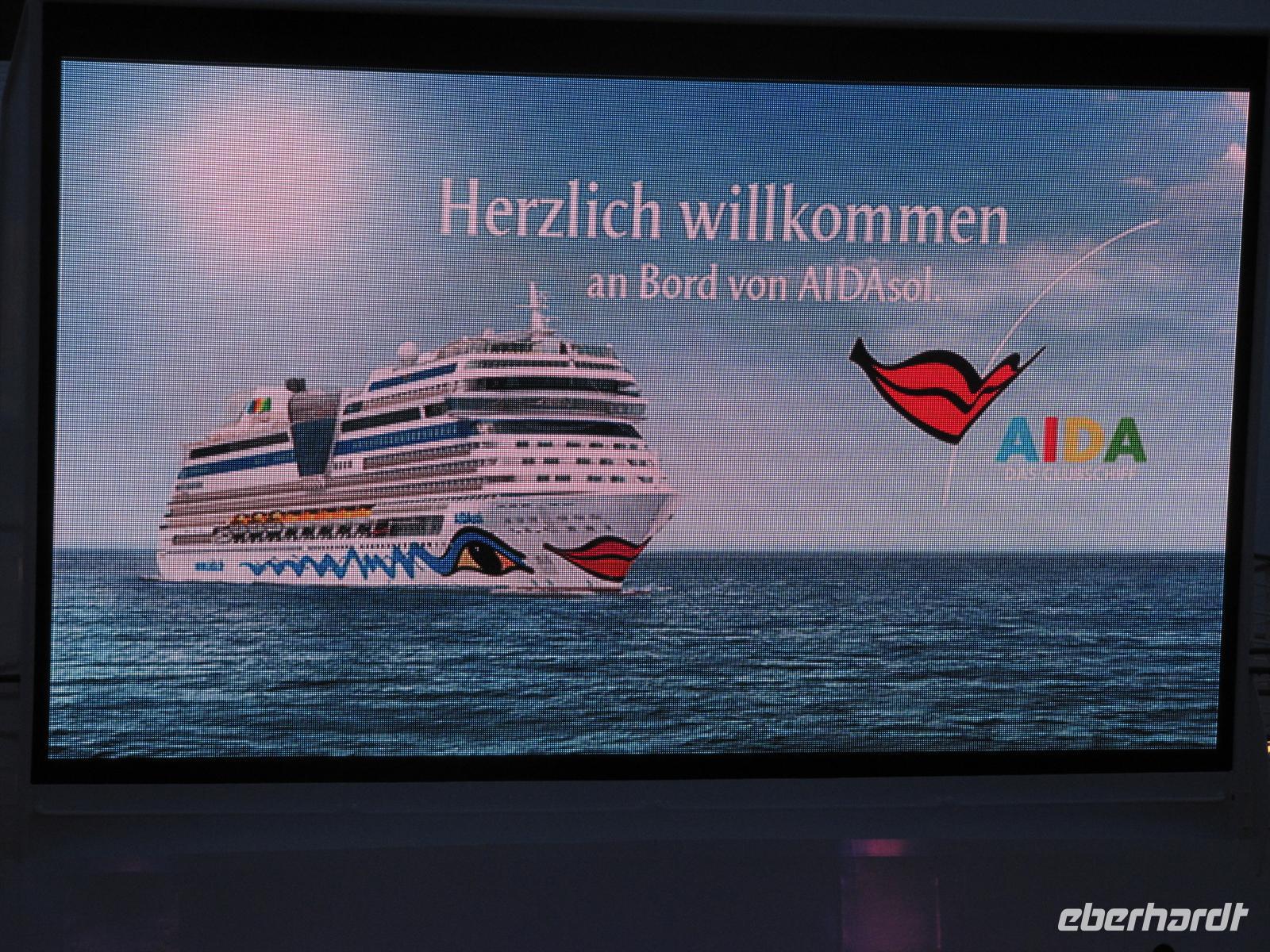 15.15 Uhr erreichten wir den Passagierkai und wurden durch einen Mitarbeiter der AIDA herzlich begrüßt. Recht reibungslos und zügig ging es beim Einschiffen zu. Alles war für unsere Ankunft bestens vorbereitet. Obwohl wir eine große Gruppe von 51 Reisegästen sind, ist alles in ca. 40 Minuten erledigt. Jeder hat seine Bordkarte, die uns in den nächsten Tagen die Welt zu AIDA auf vielfältige Art und Weise eröffnen wird ... 16.00 Uhr standen uns die Kabinen zur Verfügung. Sofort organisierten wir für den nächsten Tag den Bordrundgang und eine festliche Begrüßung mit Sekt in der AIDA-Bar auf Deck 10. So freundlich wie wir begrüßt wurden, so freundlich wurden auch alle unsere Anliegen behandelt. Für unsere Reisegäste waren wir anschließend sofort zur Stelle, um beim Buchen weitere Ausflüge behilflich zu sein. Und die Auswahl ist einfach riesig, es galt das Passende zu finden. Auch kleine technische Probleme mit Ausflugsbuchungen konnten wir mit den Crew-Mitgliedern schnell und kompetent lösen ... ein herzliches Dankeschön im Namen dieser Reisegäste. Da war es, das freundliche Lächeln, das nun auch die Skepsis unseres Reisegastes verschwinden ließ und auch ihm ein Lachen in das Gesicht zauberte. Zugleich luden wir alle Gäste persönlich zum Sektempfang und zum Bordrundgang am nächsten Mittag ein.