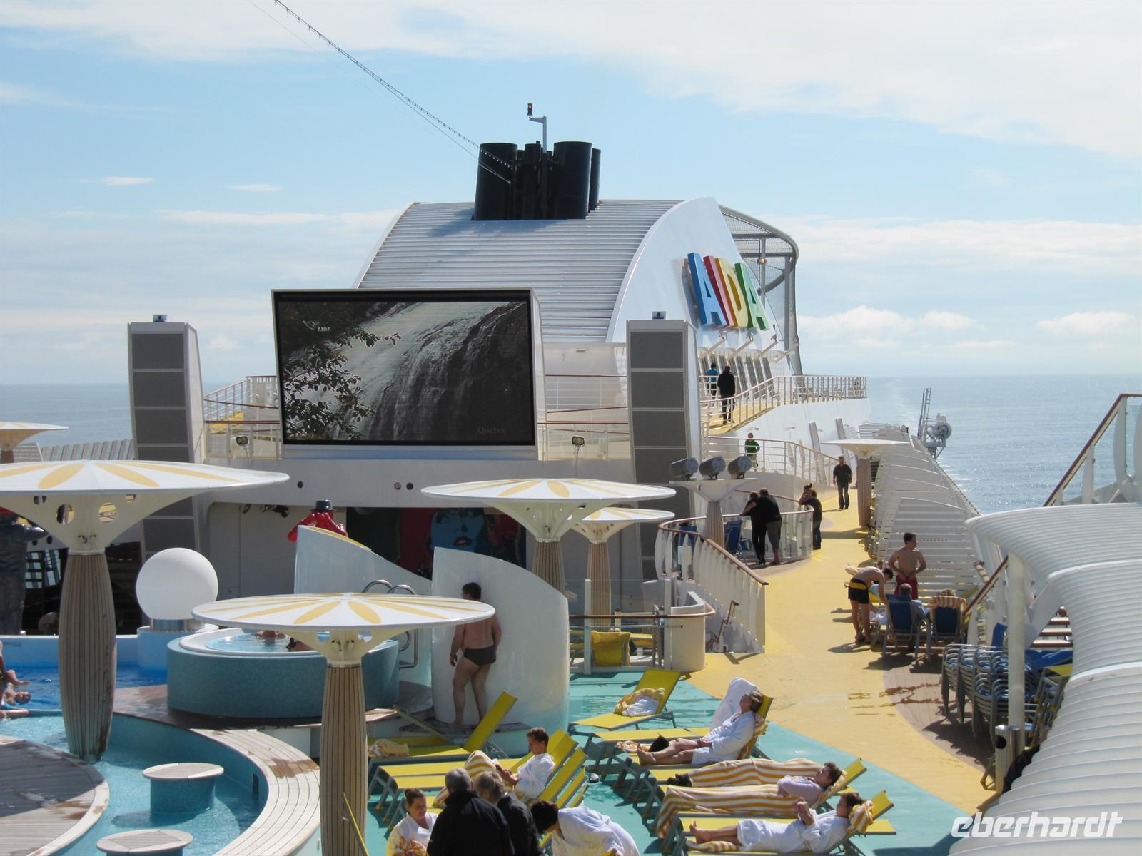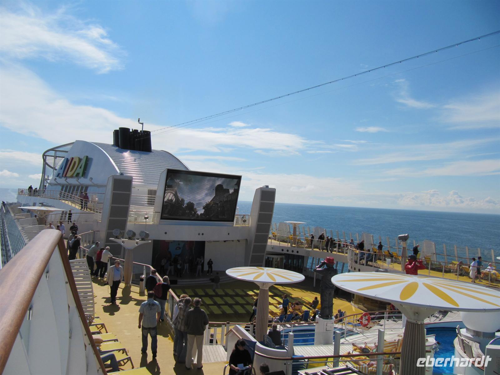Zurück an Bord erfreuten wir uns an der Abendsonne, stärkten uns von den Bordbuffets und nutzten die Vielzahl der Unterhaltungsmöglichkeiten der AIDAsol.