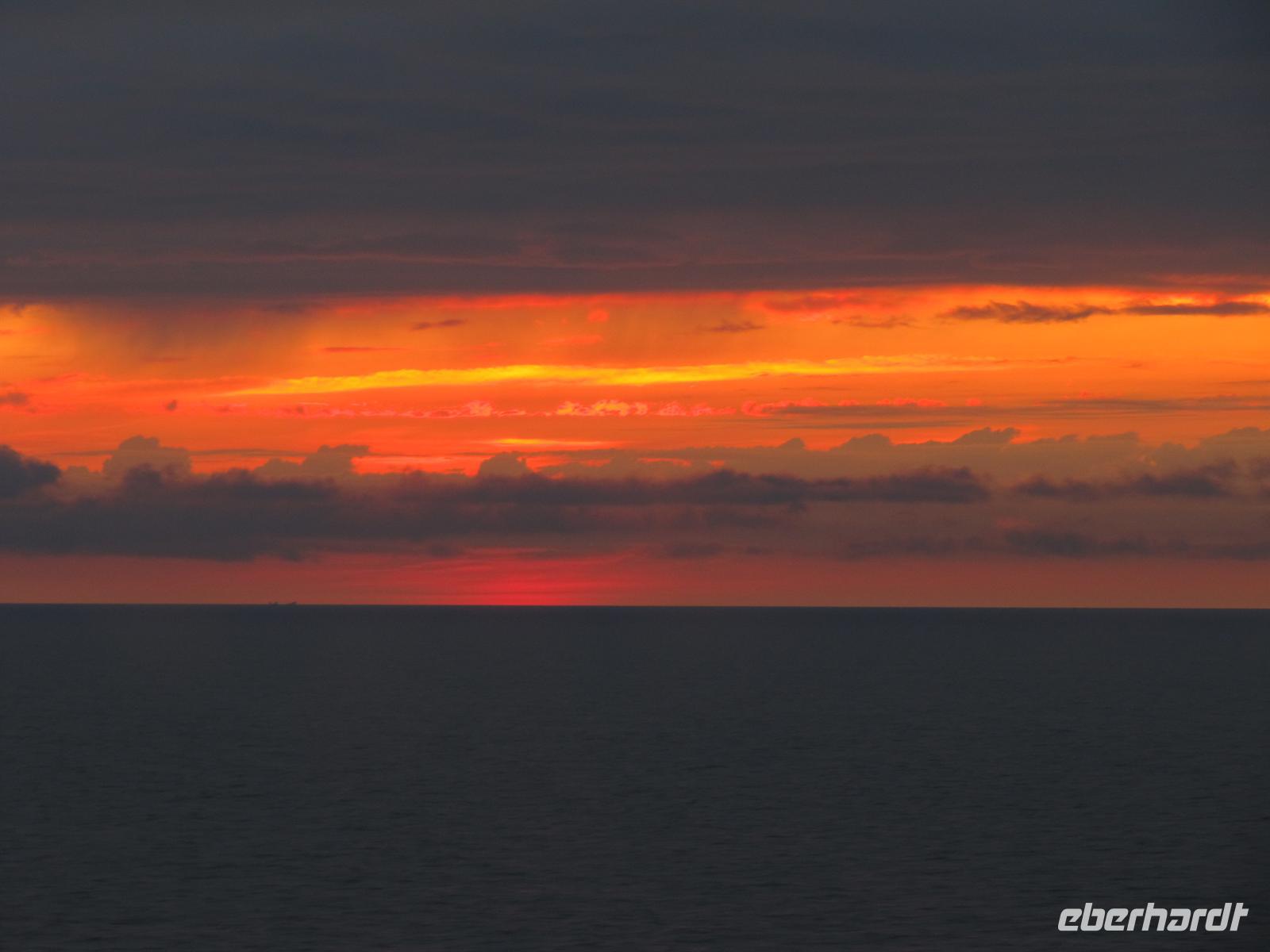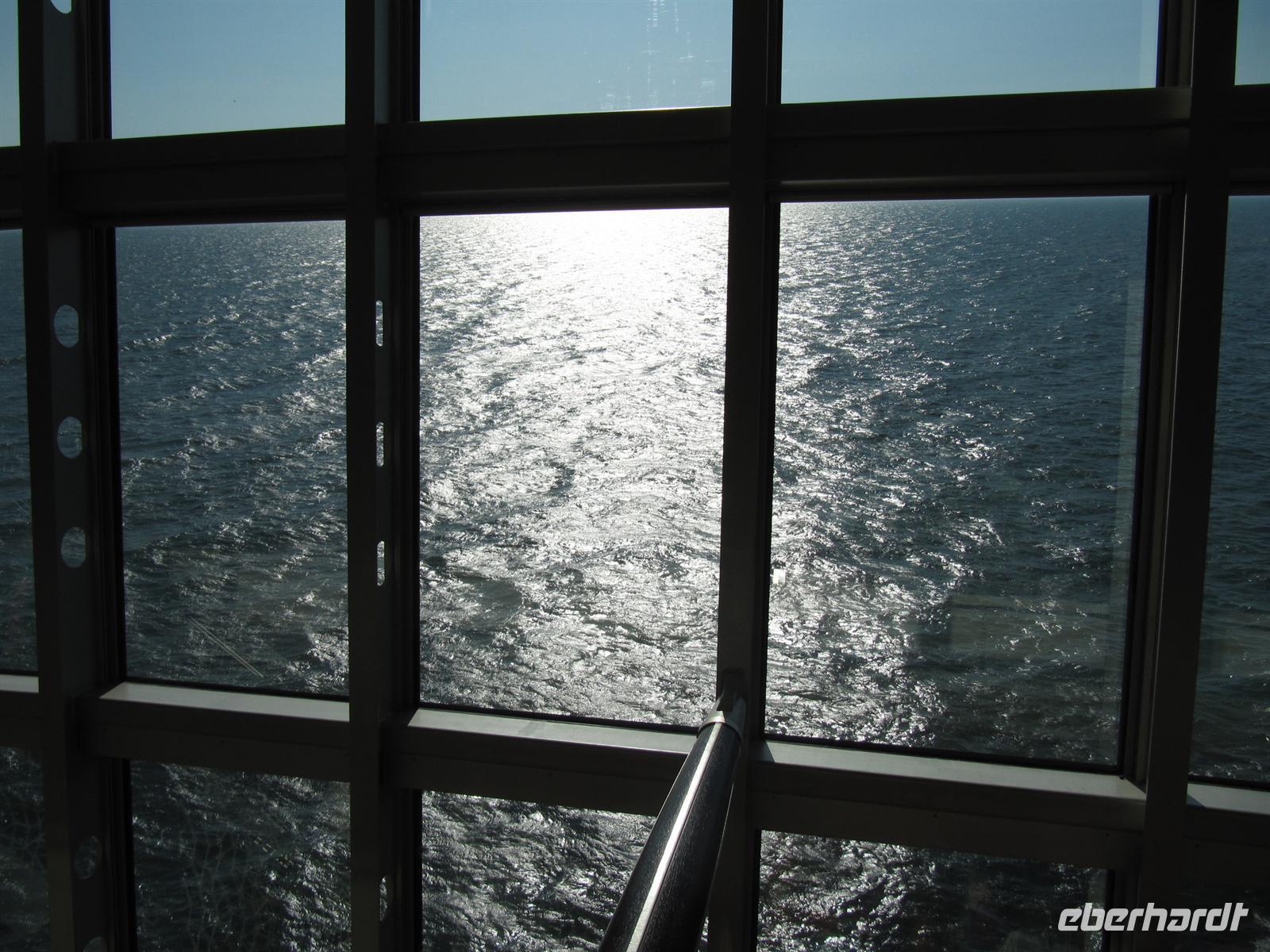 Die See war ganz ruhig, fast glatt gebügelt, und so fuhr unsere AIDAsol auch ganz sacht und langsam ... auch weil die Sicht nicht gut war. Unser Käptn beruhigte uns bei der morgendlichen Begrüßung und sagte uns am Nachmittag besseres Wetter, sogar Sonne, voraus ... wir wollten auch Optimisten bleiben und diese sollen ja bekanntlich auch länger Leben.