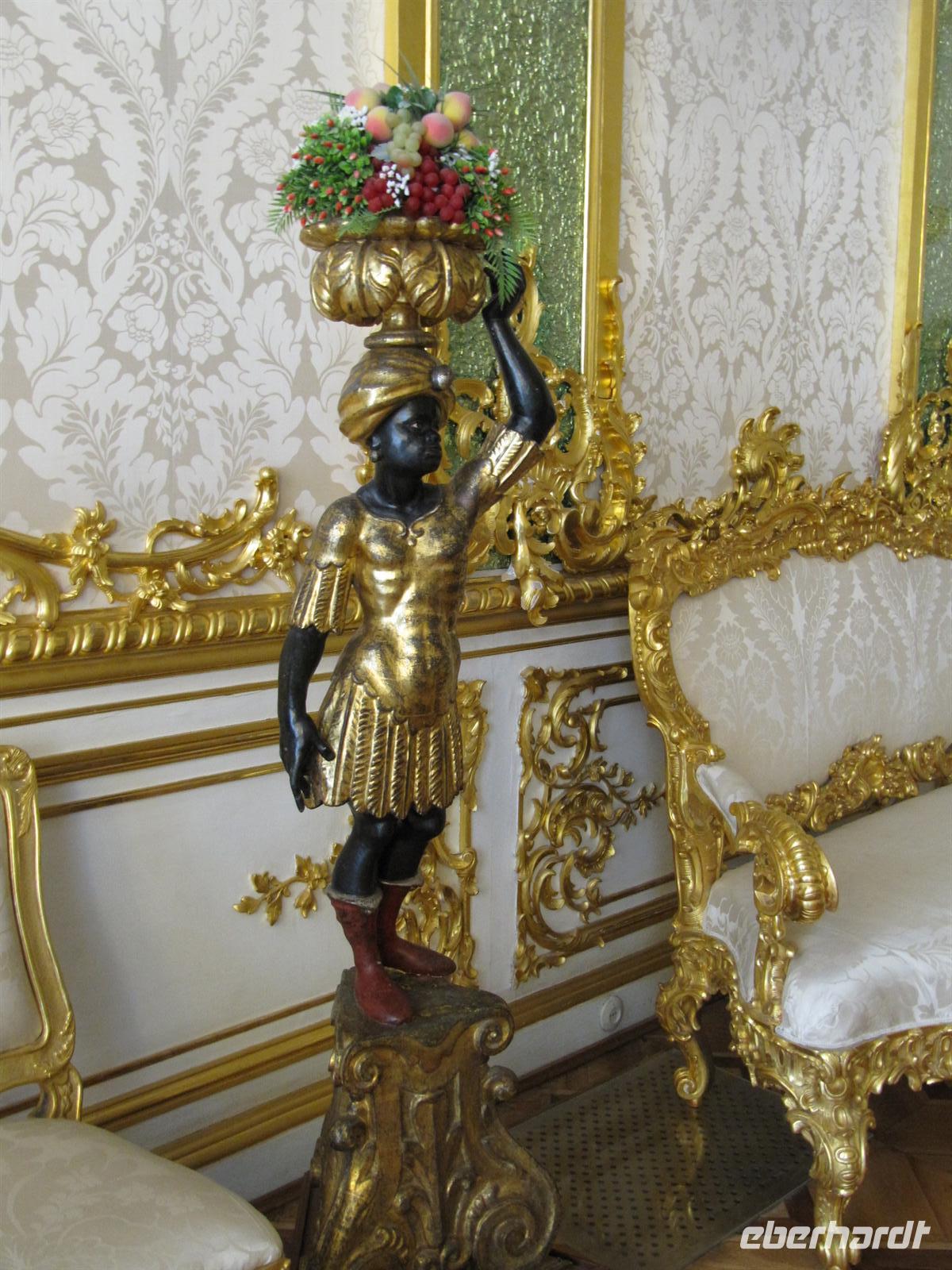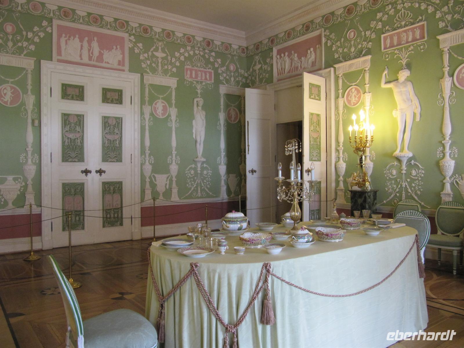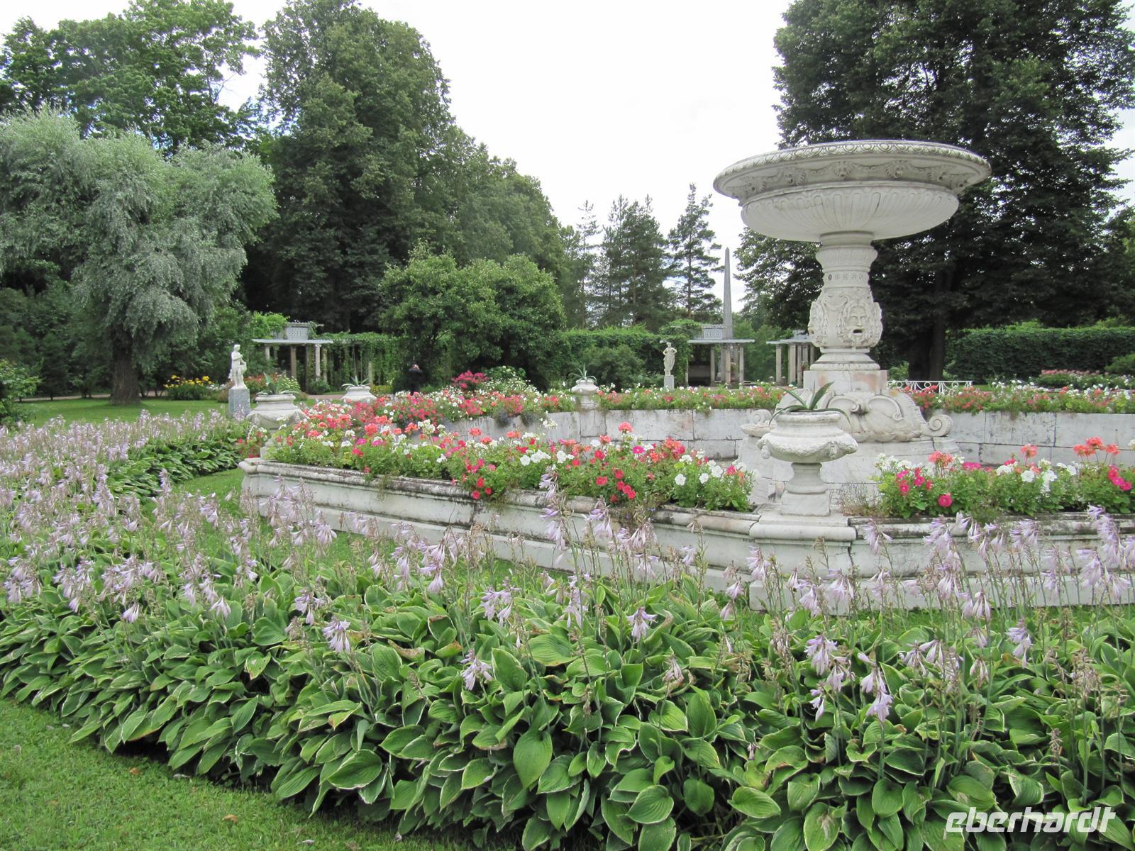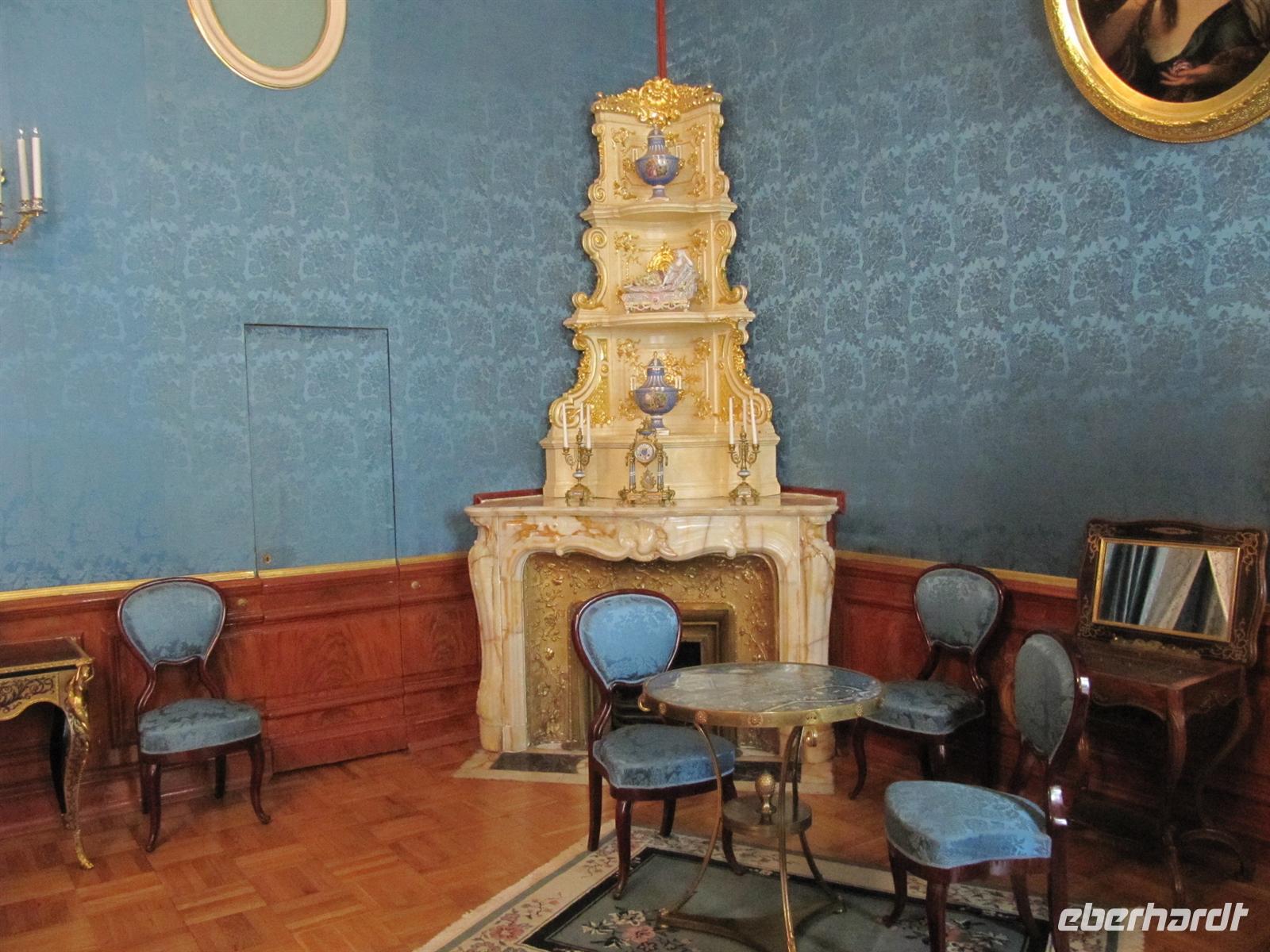 Wir spazierten nun durch den Katharinenpark zur Eremitage und zur Grotte, wo wir einem kleinen Konzert lauschten. Beim Mittagessen im Restaurant des Schlosses stärkten wir uns mit russischen Spezialitäten. Eine Folkloregruppe unterhielt uns stimmungsvoll. Gut gestärkt fuhren wir zurück nach St. Petersburg zu einem der alten Adelspalaste, dem Jussupow-Palast am Mojka-Kanal. Von außen sah der Palast eher wie ein größeres Bürgerhaus aus. Die Säulen am Eingang verliehen ihm jedoch ein besonders würdevolles Antlitz. Die Adelsfamilie zählte zu den reichsten St. Peterburger Familien. Niemand von uns ahnte, welche wundervolle Räume wir sehen würden und welche Geheimnisse das Haus hatte. Zuerst stiegen wir in den Rasputin-Keller hinab. Valentina erzählte uns sehr eindrucksvoll die interessante Geschichte um den Wunderheiler, der eng mit dem Leben der Zarenfamilie verbunden war. Als er neben seinen medizinischen Kenntnissen auch zunehmend als politischer Berater galt, wurde sein Einfluss selbst auf Staatsgeschäfte zu groß. So wurde seine Ermordung im Jussupow-Palast geplant und ausgeführt ... In der ersten Etage besichtigen wir später den großen Speisesaal, das Prunkstück des hauseigenen Theatersaales und die verschiedenen Räume mit Gemälden und Skulpturen. Die Adelsfamilie hatte eine immense Gemälde- und Skulpturensammlung zusammengetragen. Viele dieser Exponate sind heute in der Eremitage zu sehen. Abschließend bestaunten wir die privaten Gemächer der Jussupows: das kleine Musikzimmer, das Kabinett des Fürsten, die Bibliothek, die einst 55.000 Bände zählte, den orientalischen Saal und das Schlafzimmer ... Es war ein interessanter Einblick in das Leben und Wirken dieser Adelsfamilie. Kein Wunder, das dieser Palast nach dem Winterpalast der Zarenfamilie als luxuriösester St. Petersburgs gilt.