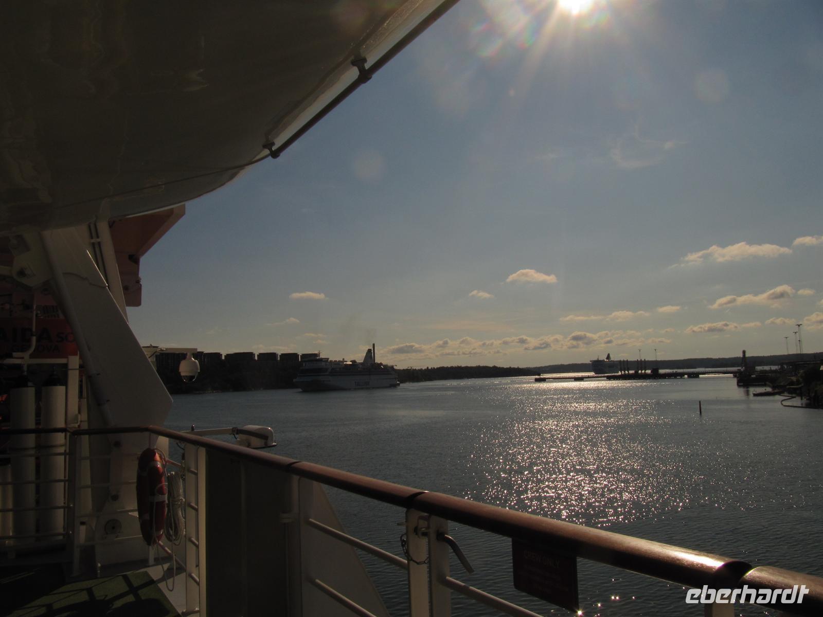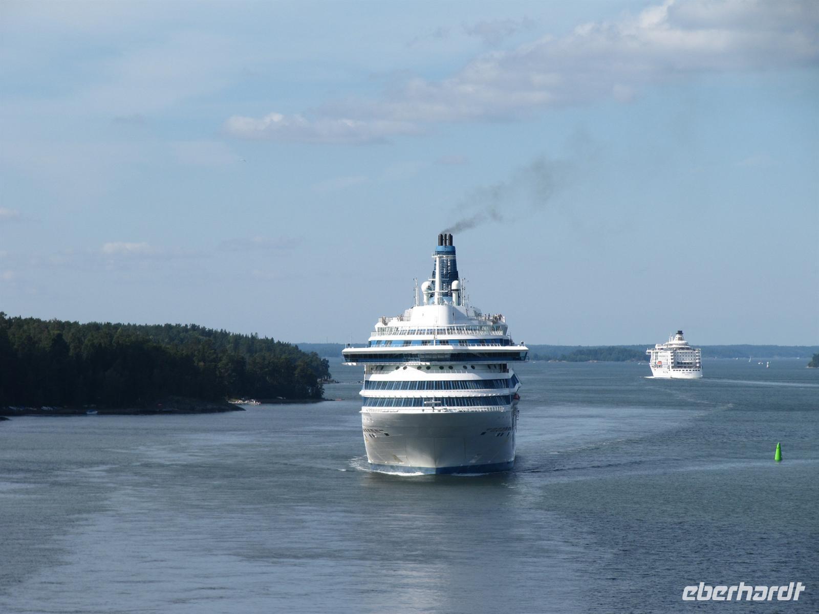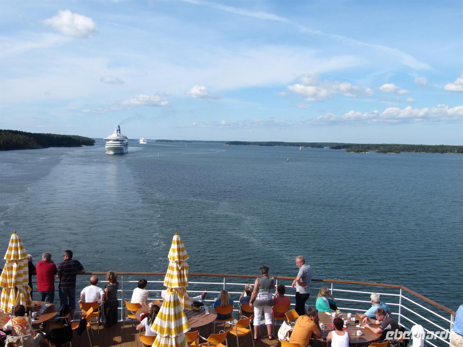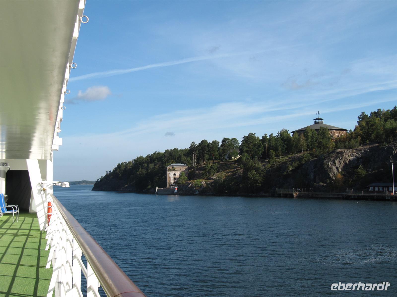 07.00 Uhr legte die AIDAsol in Stockholm ab und es erwartete uns eine faszinierende Route durch die Schärenwelt rund um Stockholm auf dem Weg in die offene See. Uns eröffneten sich immer wieder schöne, ja faszinierende Blicke Steuer- und Backbord. In der teils engen Fahrrinne hatten die Offiziere ihr ganzes Können aufzuweisen, denn es gab Gegenverkehr großer Fähr- und Kreuzfahrtschiffe und dazwischen kreuzten Fähren, Motor- und Segelboote unseren Weg. Ganz nah erblickten wir kleine Ortschaften, Häfen und schmucke Häuser. Manchmal auf einer kleinen Insel war auch nur ein einziges Haus zu sehen. Dann erreichten wir die Komoraninseln. Es war eine sehr interessante, vielfältige Fahrt entlang dieser Inselwelt des Schärengartens.