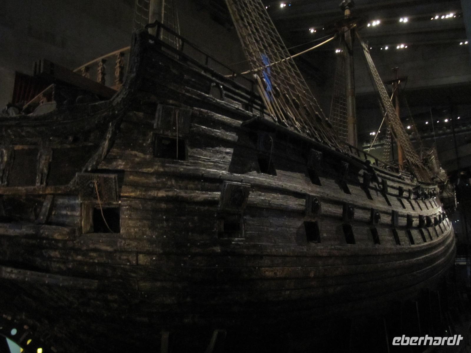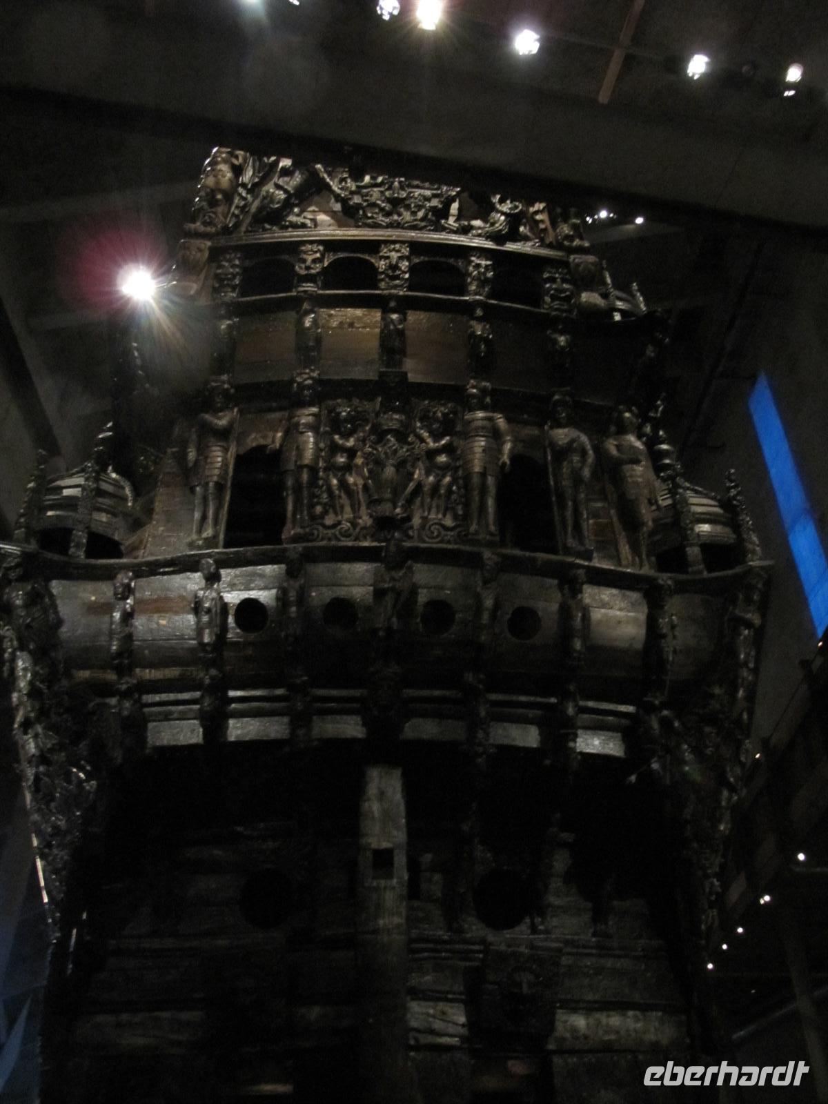 Erneut hatten wir eine sehr geruhsame Nacht an Bord unseres schwimmenden Hotels, die Ostsee ist weiter wie gebügelt. Nochmals stellten wir die Uhr eine Stunde zurück und hatten wieder mitteleuropäische Sommerzeit. Pünktlich 09.00 Uhr ankerte die AIDAsol im Frihamnen. Wir trafen uns nach dem Frühstück am Buffet 09.20 Uhr mit unseren Gästen an der Rezeption am Deck 5 und gingen über Deck 3 zum modernen Terminal des Hafens. Wir schauten nach unserem Bus und dem örtlichen Reiseleiter Matthias aus. Doch leider war er nicht, wie verabredet 09.30 Uhr am Hafen. Über Handy war schnell der Kontakt zu ihm hergestellt. Er hatte den falschen Hafen mitgeteilt bekommen. Schnell war das Missverständnis geklärt und mit Erika, der zweiten Reiseleiterin, und Roger, unserem Buschauffeur, waren sie sofort auf dem Weg zu uns. Nur Stockholm ist keine Kleinstadt, sondern Hauptstadt Schwedens und erstreckt sich auf insgesamt 14 Inseln. So vergingen einige, es sollten fünf sein, schwedische Minuten … Verspätet starteten wir zu unserer Stadtrundfahrt. Erstes Ziel war das Vasa-Museum auf der nahen Museumsinsel Djurgarden. Wir reihten uns genduldig in die lange Schlange vor dem Museum ein. Heute waren sehr viele Kreuzfahrtschiffe angekommen und viele Gäste wollten natürlich das legendäre Schiff bestaunen. Deshalb mußten wir leider etwas warten. Dann standen wir vor der „Vasa“, dem teuersten und prächtigsten Schiff des 17. Jahrhunderts. Am 10. August 1628 war sie auf Jungfernfahrt bereits im Hafen gesunken. Sie war buglastig und das war einer der Gründe, weshalb sie sank. Erst 333 Jahre später wurde sie geborgen und 17 Jahre sorgsam restauriert. So konnten wir ein authentisches Stück Seefahrtsgeschichte bestaunen und uns vorstellen, wie bunt und prachtvoll das Schiff einst gewesen ist.