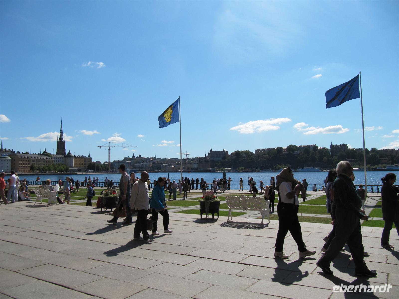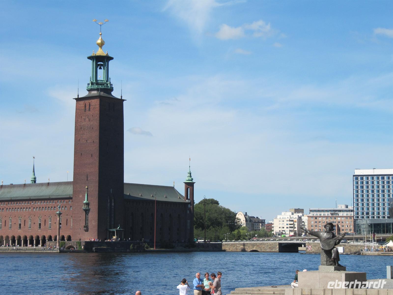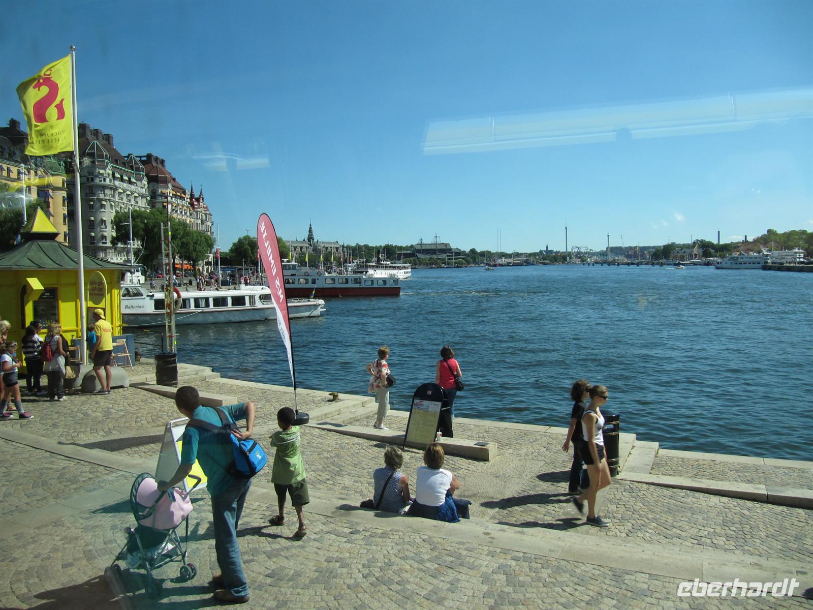Anschließend fuhren wir vorbei am Opernhaus, am Königlichen Schloss, an der Altstadt und der Tyska Kyrkan zum Malarsee. Hier eröffnete sich uns der Panoramablick zum Stadthaus. Einige Gäste blieben in der Altstadt, um zu bummeln. Die Mehrzahl reiste mit uns zum Schiff zurück. Hatten doch einige am Nachmittag oder Abend eine Schiffsrundfahrt oder den Besuch der Stockholmer Eisbar im „Nordic Sea Hotel“ gebucht. Es war genügend Zeit, denn die AIDAsol liegt bekanntlich bis zum nächsten Morgen 07.00 Uhr im Frihamnen und „Alle Mann an Bord“ ist erst 06.30 Uhr - bestens für abendliche Unternehmungen.