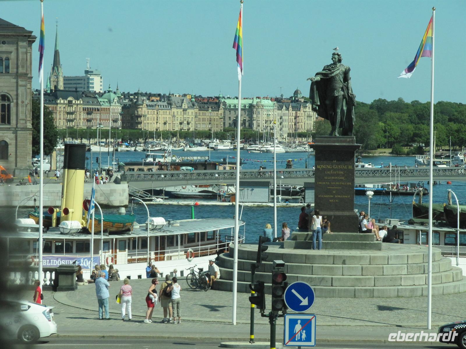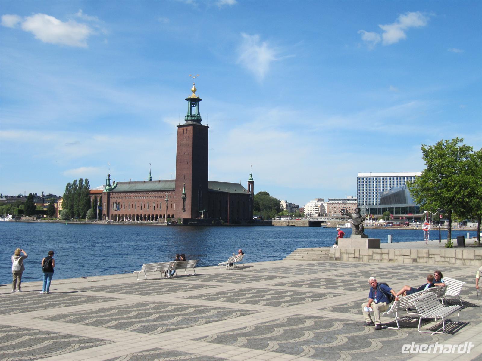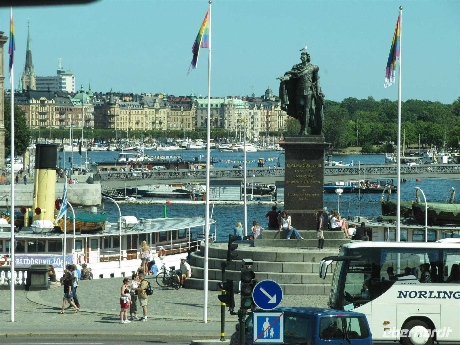 Anschließend fuhren wir vorbei am Opernhaus, am Königlichen Schloss, an der Altstadt und der Tyska Kyrkan zum Malarsee. Hier eröffnete sich uns der Panoramablick zum Stadthaus. Einige Gäste blieben in der Altstadt, um zu bummeln. Die Mehrzahl reiste mit uns zum Schiff zurück. Hatten doch einige am Nachmittag oder Abend eine Schiffsrundfahrt oder den Besuch der Stockholmer Eisbar im „Nordic Sea Hotel“ gebucht. Es war genügend Zeit, denn die AIDAsol liegt bekanntlich bis zum nächsten Morgen 07.00 Uhr im Frihamnen und „Alle Mann an Bord“ ist erst 06.30 Uhr - bestens für abendliche Unternehmungen.