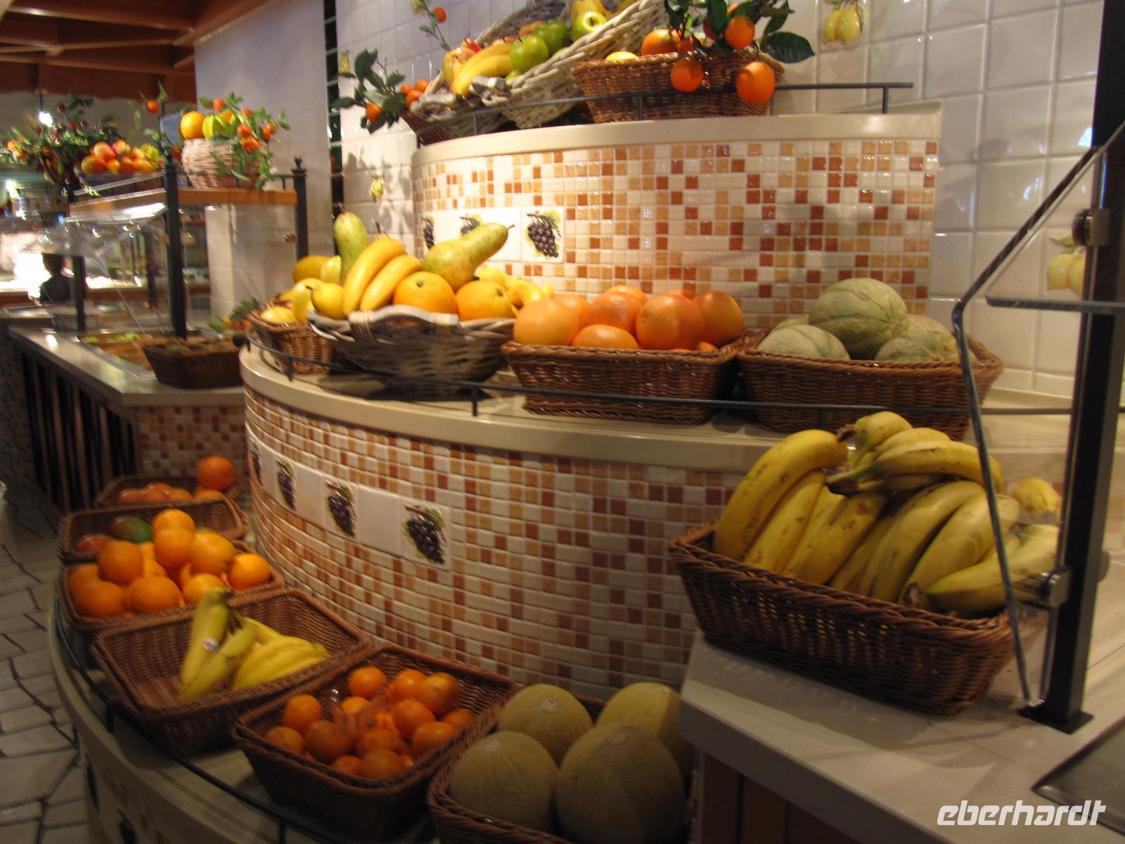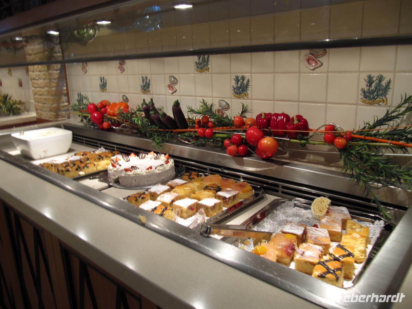 Ab 18.00 Uhr öffneten die sieben Restaurants der AIDAsol ihre Pforten und wir konnten die Buffets bestaunen und natürlich auch das gute Essen zum ersten Mal während unserer Reise genießen. Alle lehnten sich nun entspannt zurück. Kapitän Wieprecht begrüßte alle „Seefahrer auf Zeit“ über den Bordfunk auf seine persönliche und herzliche Art. Für mich war er schon ein alter Bekannter, den bereits auf meiner Kreuzfahrt mit AIDAbella auf den Kanarischen Inseln und zur Insel Madeira war er der erste Mann an Bord. Obwohl alle Schiffe der neueren AIDA-Flotte dem gleichen Bautyp entsprechen, so bietet die AIDAsol doch einige andere Restaurants mit dem Kalifornia Grill, dem East Restaurant, dem Bella Donna Restaurant und besonders dem Bierhaus, denn an Bord wird ein eigenes Bier gebraut ...