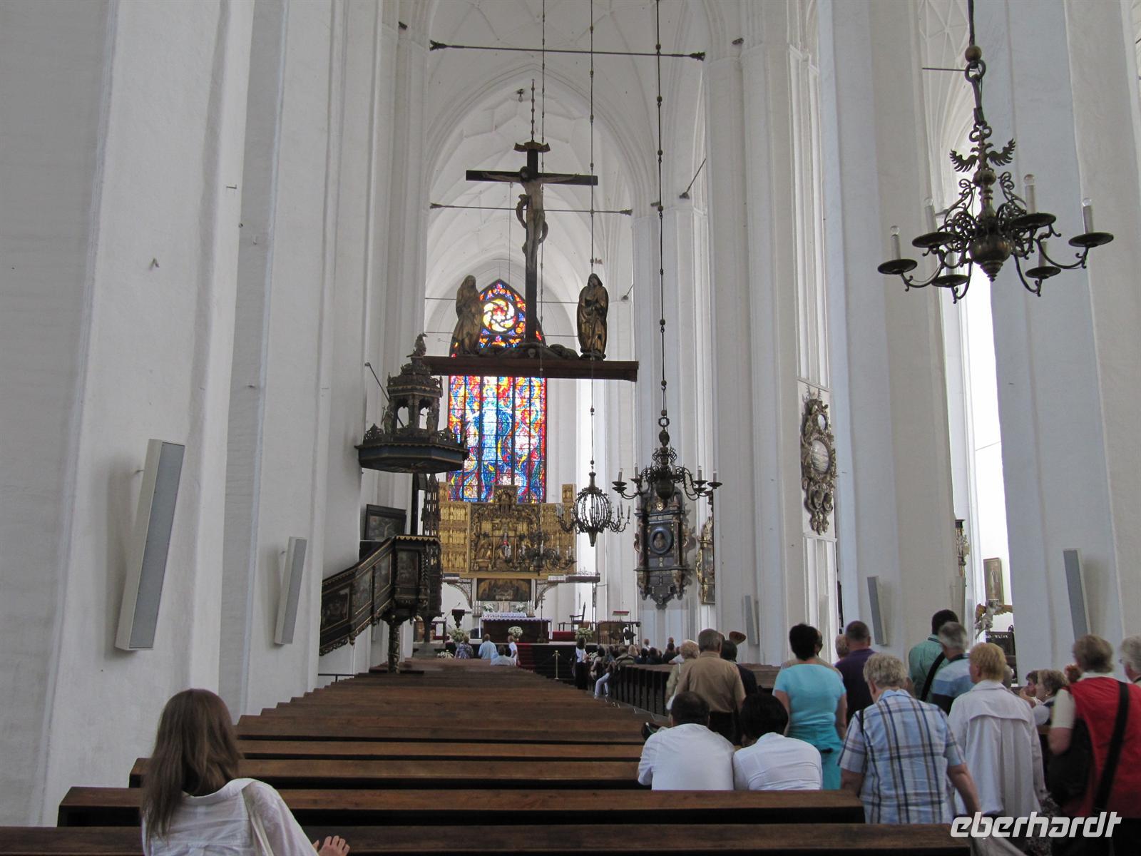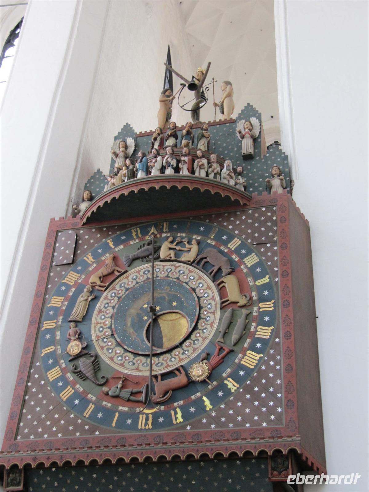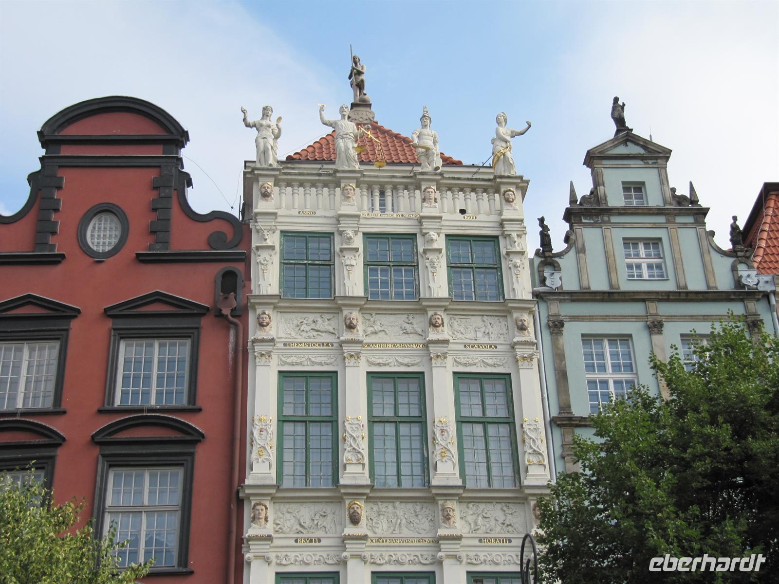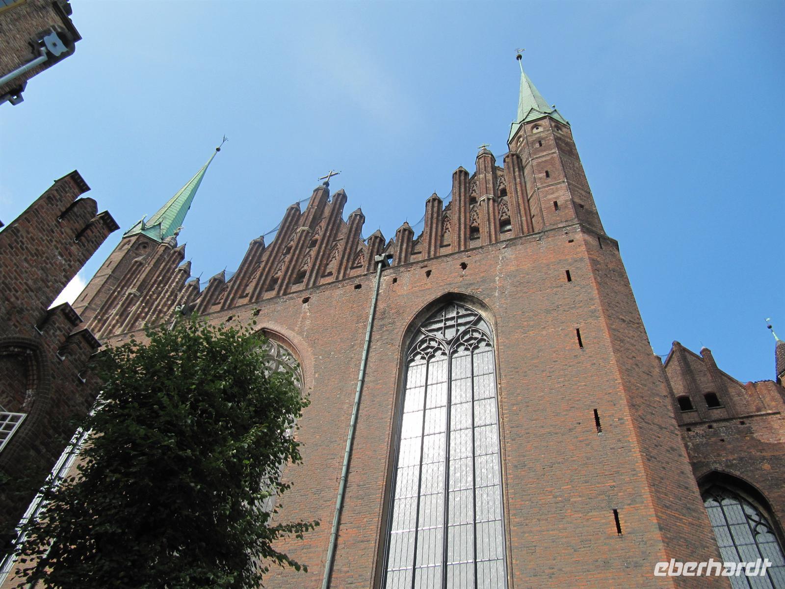 Am Morgen erreichten wir nach einer erneut sehr ruhigen Nacht den Hafen von Gdynia. Wir besuchten die Dreistadt: Gdingen - Sopot - Danzig. Bei unseren Rundgängen besichtigten wir die Altstadt von Danzig. Die polnischen Restauratoren haben mit viel Liebe und großer Detailtreue das Stadtzentrum der ehemaligen Hansestadt komplett nach historischem Vorbild wieder aufgebaut. Wir schlenderten über den sogenannten Königsweg und bestaunten das Goldene Tor, den Langen Markt, den Artushof und natürlich den Neptunbrunnen. Dann zwischen den wundervollen Bürgerhäusern sahen wir sie schon von Weitem, die imposante gotische Marienkirche, die größte Kirche Polens, in der mehr als 20.000 Menschen im Innenraum Platz finden. Wir bestaunten die berühmte astronomische Uhr, die leider im Moment nicht in voller Funktion ist. Unser Reiseleiter Konrad lud uns ein, zu einem späteren Zeitpunkt erneut Danzig zu besuchen, dann wird die Uhr sicher funktionieren. Simone und Marion weilten mit ihren Gruppen natürlich an der Motlau und bestaunten Danzigs „Schatzkammer", die Speicherinsel. In Fachwerk- und Backsteingebäuden warteten hier kostbare Handelsgüter wie Getreide, Holz, Bier und Gewürze darauf, auf Schiffe verladen zu werden. Am berühmten Krantor verweilten wir und Konrad erklärte, wie diese Technik funktionierte.