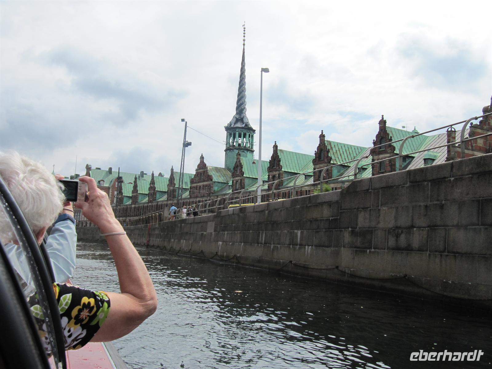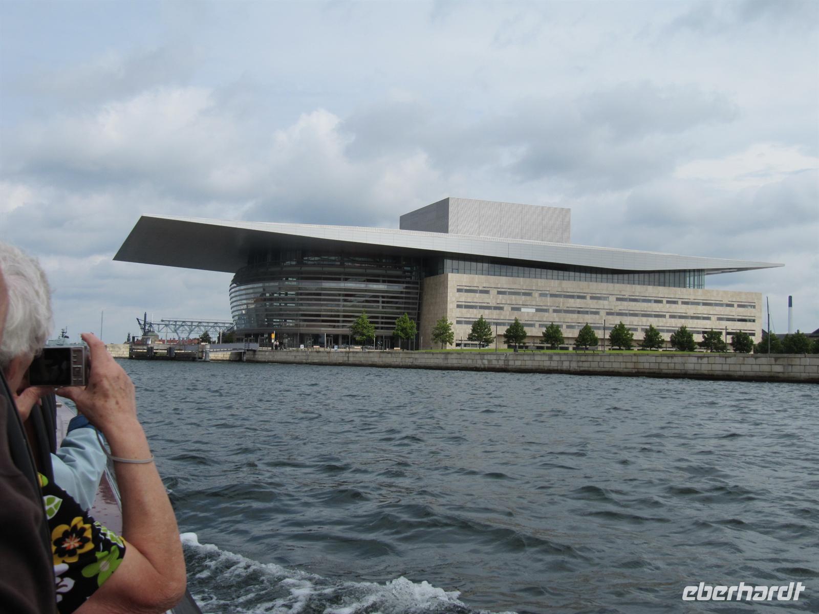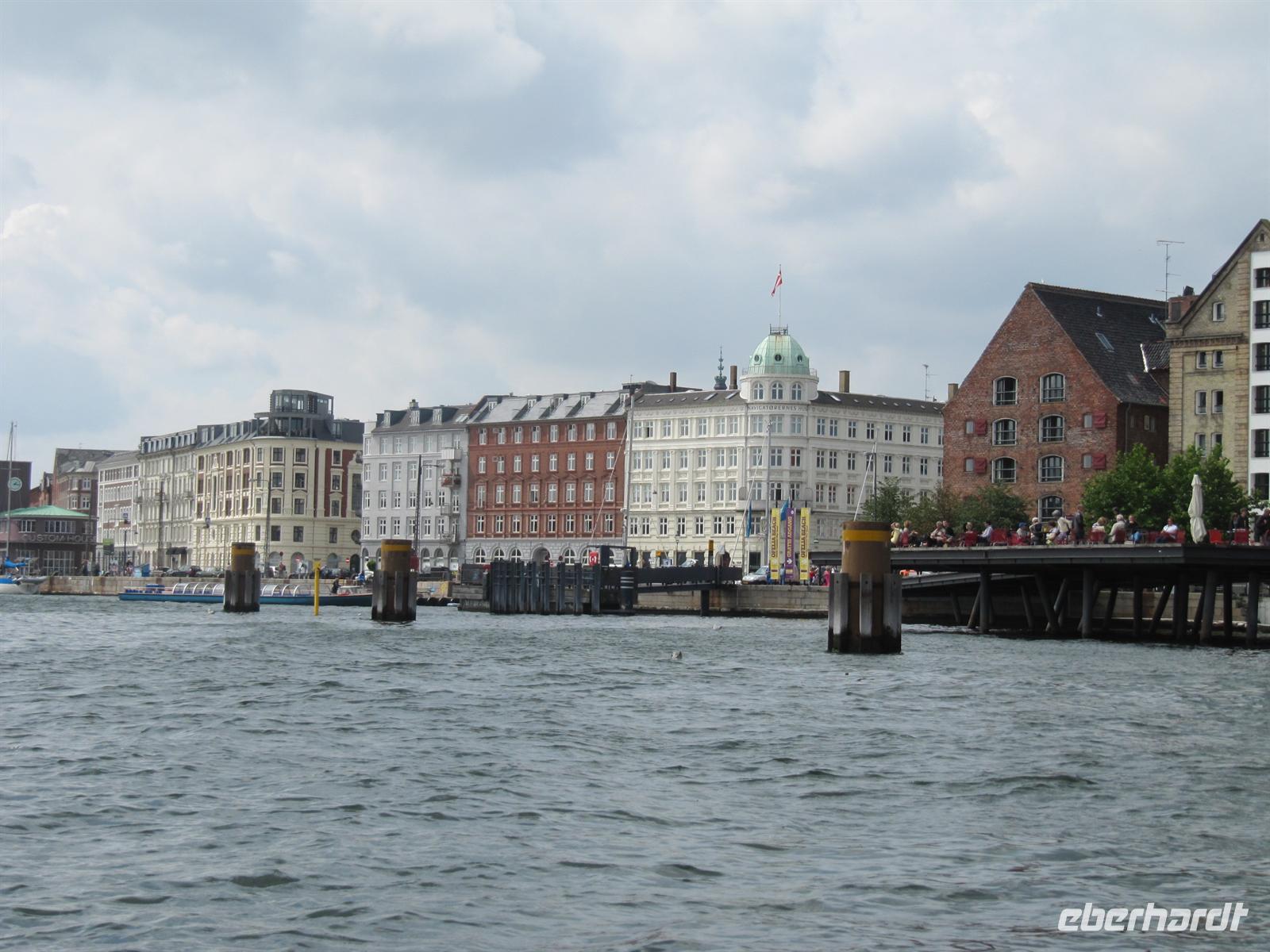 Das Frühstück nahmen wir etwas später ein, denn unser schwimmendes Hotel legte erst 11.00 Uhr an der Langelinie, unweit der Kleinen Meerjungfrau, an. Natürlich war diese bei unseren Erkundungstouren in Kopenhagen unser erster Besichtigungspunkt. Doch nun hatten wir zum ersten Mal während unserer Reise Regen ... leider. Aber zum Glück nur zu Beginn, so zeigten sich uns dann alle weiteren Sehenswürdigkeiten im Glanz der Sonne: der Nyhaven mit dem Geburtshaus von Hans Christian Andersen, die Gebäude der Carlsberg-Brauerei, das Königliche Theater, der Tivoli-Park, die Neue Oper, das Rathaus, die „schwarzen Diamanten" - wie die Gebäude der Nationalbibliothek auch genannt werden - und natürlich Schloss Amalienborg, der Sitz von Königin Margarethe II. Hier bestaunten wir auch eine Ablösung der königlichen Garde. Am Gammel Strand stiegen wir in die Ausflugsboote um und erlebten Kopenhagen nun aus einer völlig anderen Perspektive. Unterwegs bestaunten wir die königliche Jacht. Wir fuhren natürlich bis zur Langelinie, wo am Pier die AIDAsol fest verdaut lag.