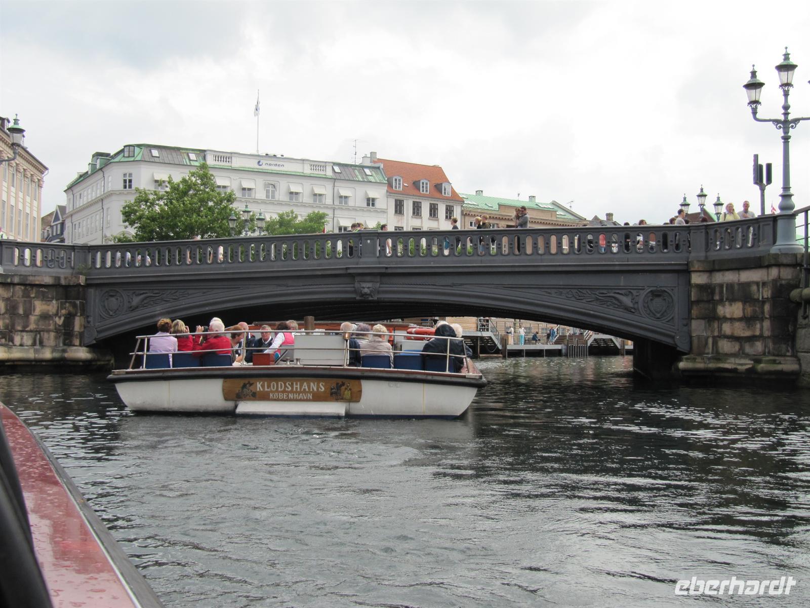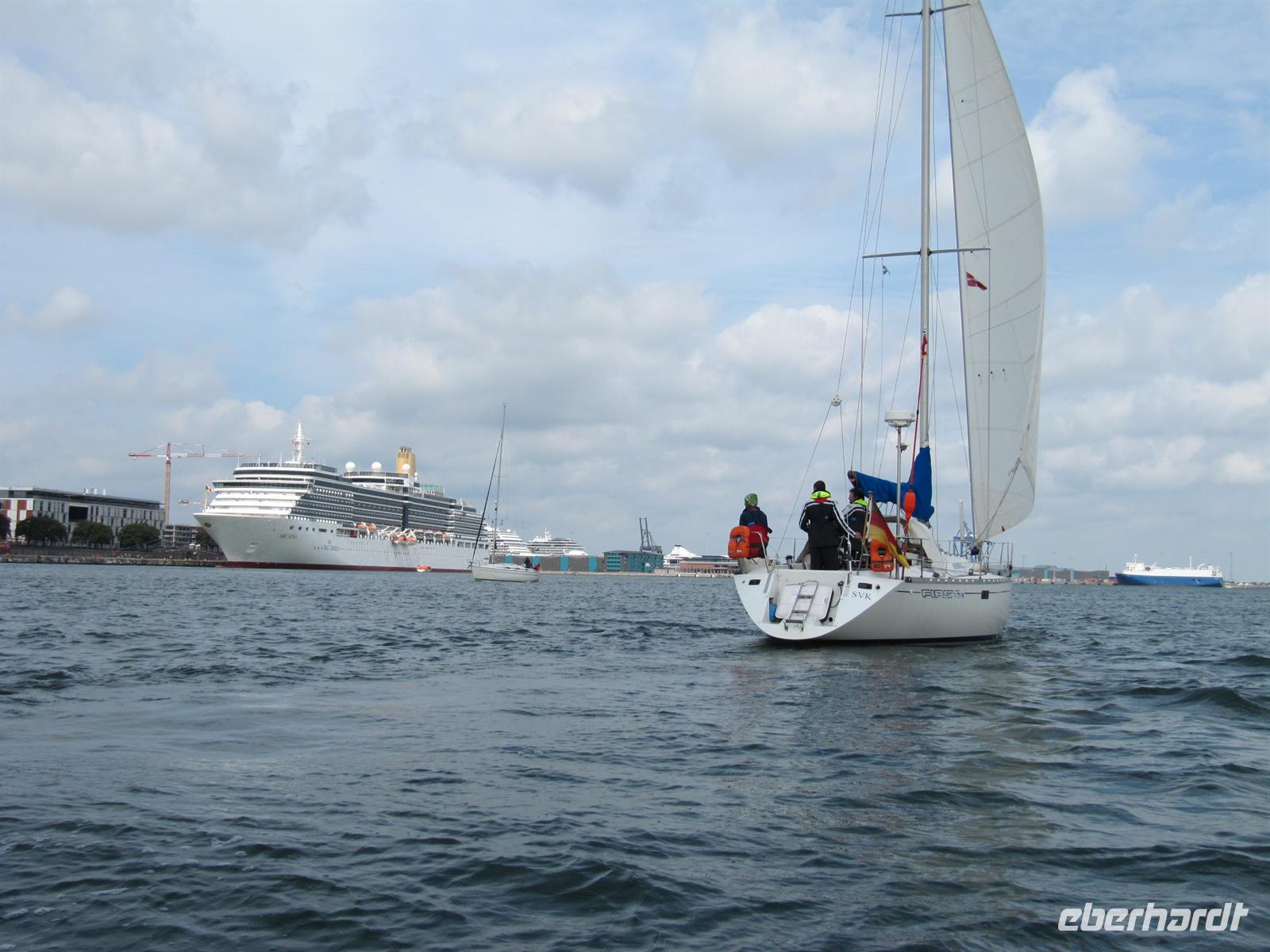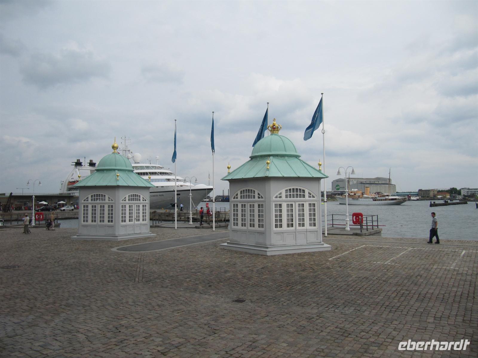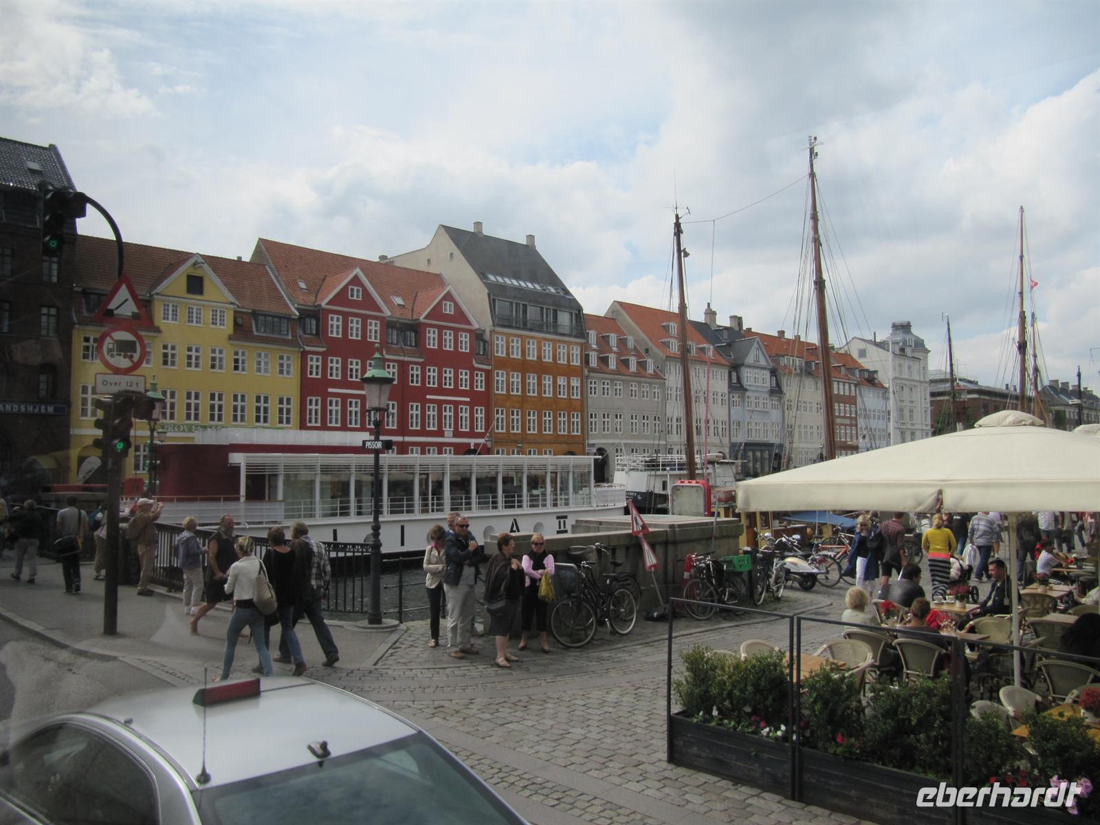 Das Frühstück nahmen wir etwas später ein, denn unser schwimmendes Hotel legte erst 11.00 Uhr an der Langelinie, unweit der Kleinen Meerjungfrau, an. Natürlich war diese bei unseren Erkundungstouren in Kopenhagen unser erster Besichtigungspunkt. Doch nun hatten wir zum ersten Mal während unserer Reise Regen ... leider. Aber zum Glück nur zu Beginn, so zeigten sich uns dann alle weiteren Sehenswürdigkeiten im Glanz der Sonne: der Nyhaven mit dem Geburtshaus von Hans Christian Andersen, die Gebäude der Carlsberg-Brauerei, das Königliche Theater, der Tivoli-Park, die Neue Oper, das Rathaus, die „schwarzen Diamanten" - wie die Gebäude der Nationalbibliothek auch genannt werden - und natürlich Schloss Amalienborg, der Sitz von Königin Margarethe II. Hier bestaunten wir auch eine Ablösung der königlichen Garde. Am Gammel Strand stiegen wir in die Ausflugsboote um und erlebten Kopenhagen nun aus einer völlig anderen Perspektive. Unterwegs bestaunten wir die königliche Jacht. Wir fuhren natürlich bis zur Langelinie, wo am Pier die AIDAsol fest verdaut lag.