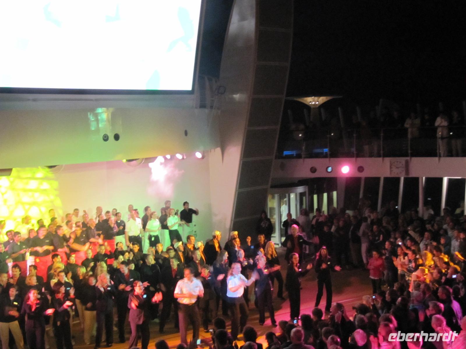 Einen stimmungsvollen Ausklang des Tages an Bord garantierte die „White Russian Party“ auf dem Pooldeck. Das AIDA-Show-Ensemble präsentierte einen bunten Reigen aus Liedern und Tänzen unseres Gastgeberlandes.