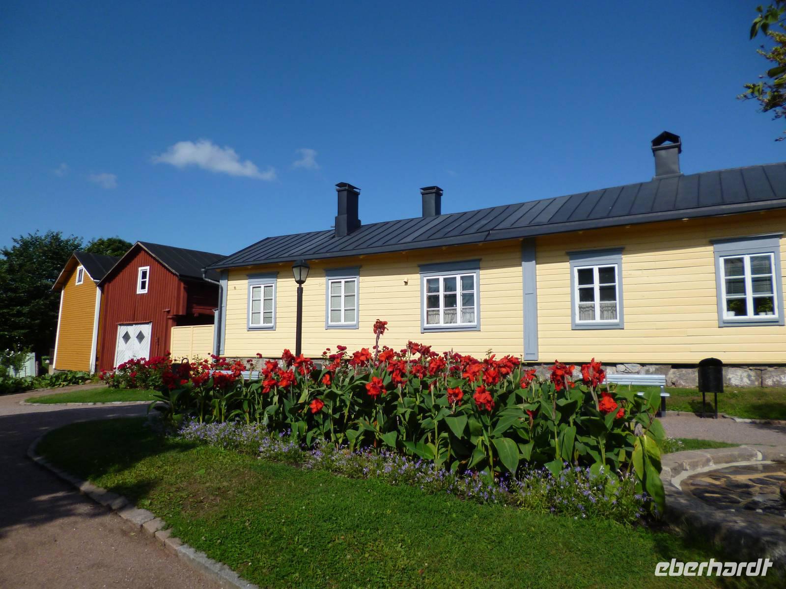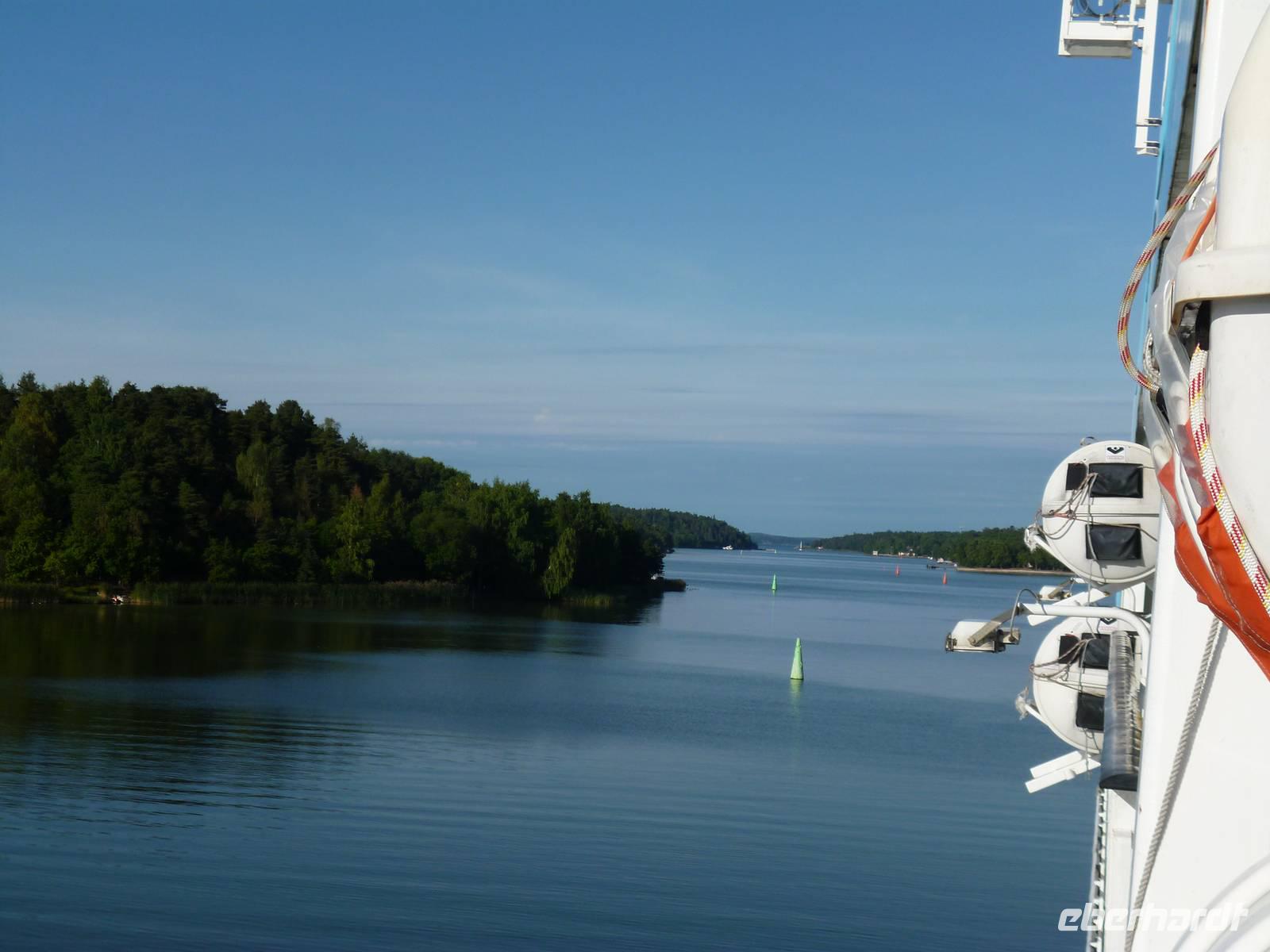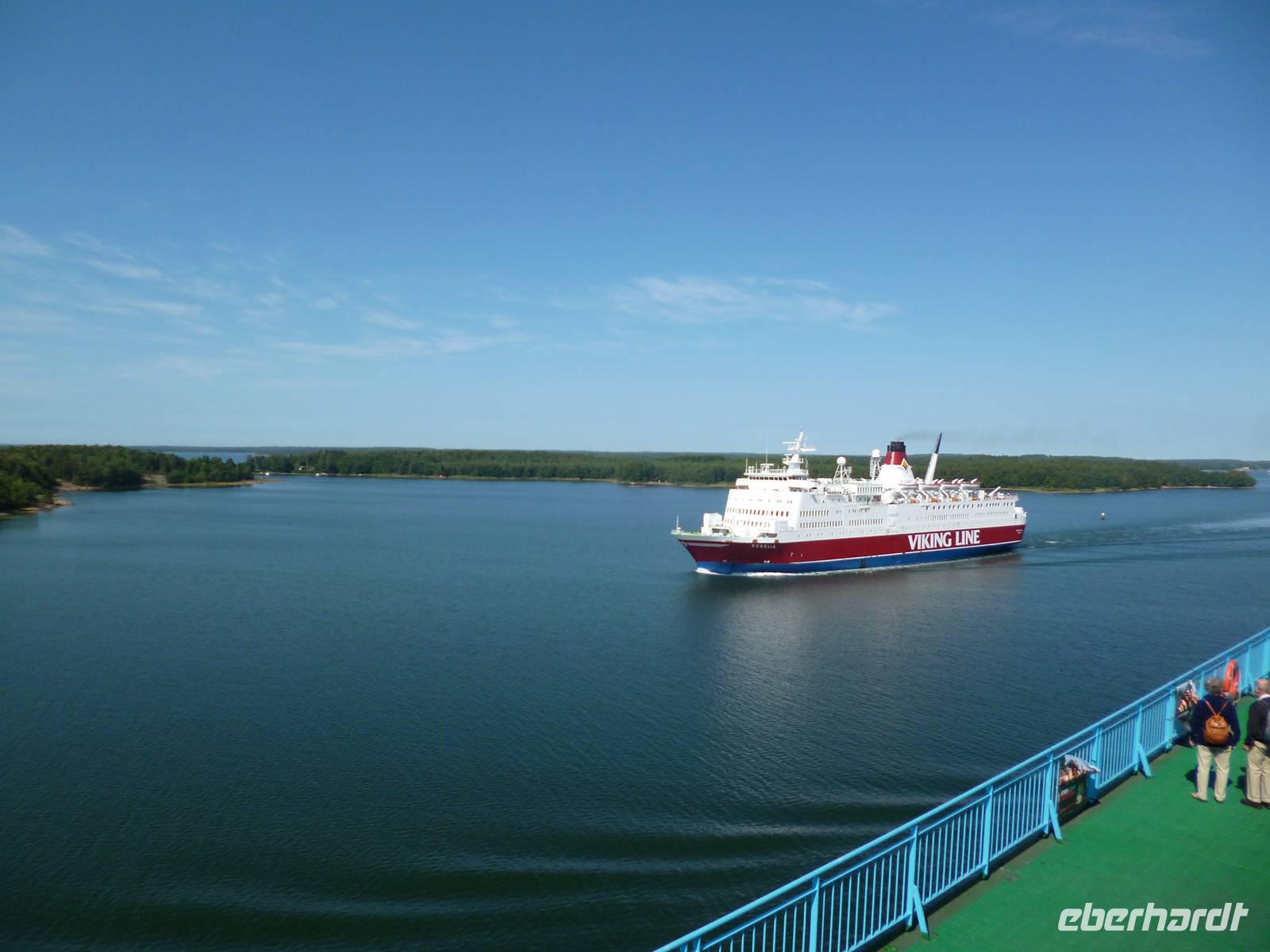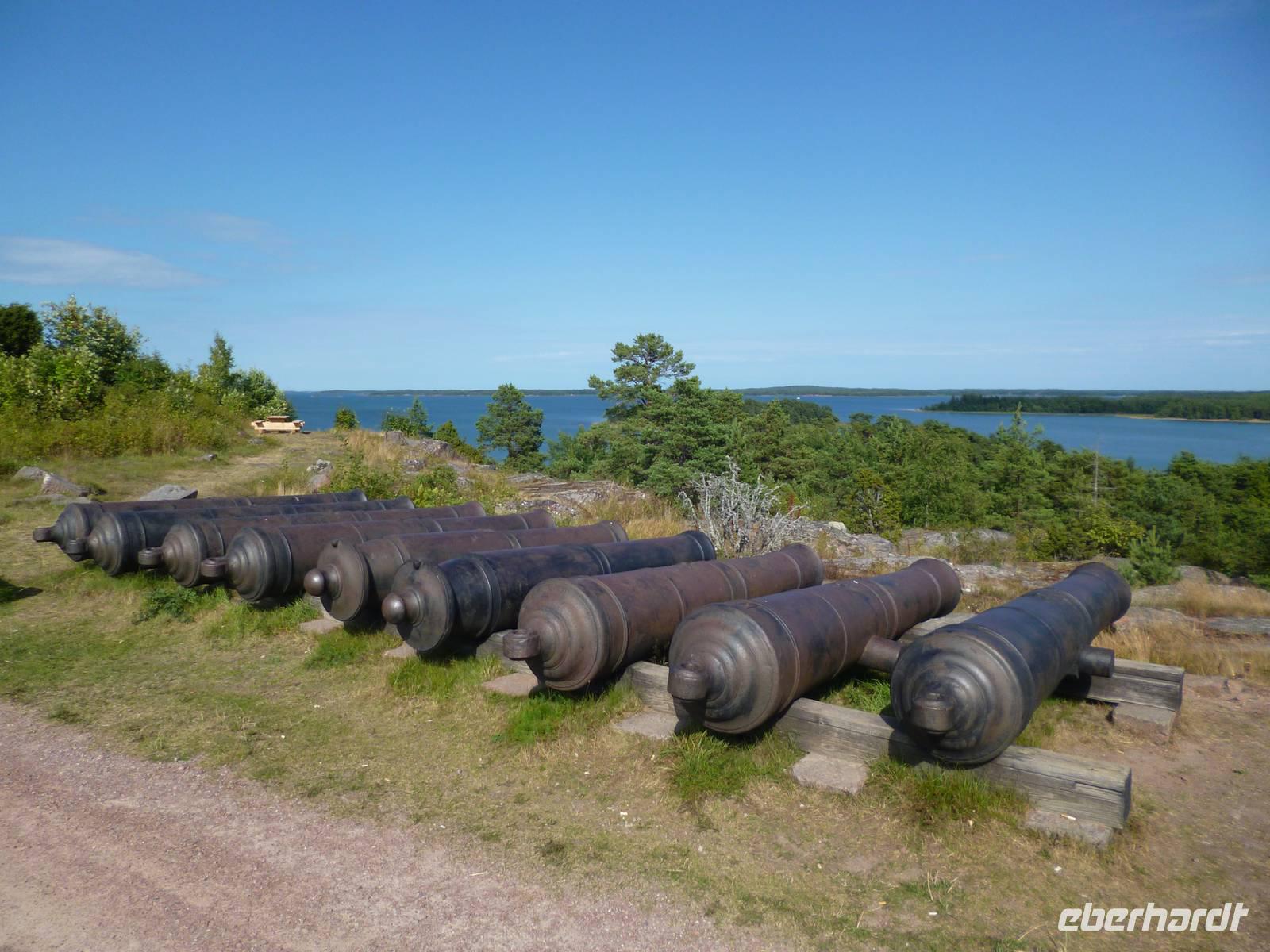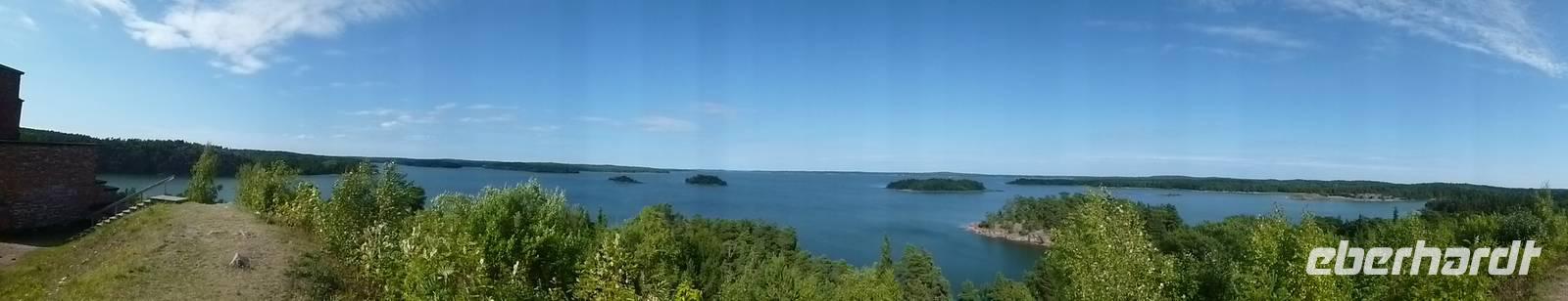Um 6 Uhr stand unser bestelltes Frühstück bereit, 07.10 Uhr Abfahrt zur Fähre. Weil am Sonntag Morgen kein Verkehr war, brauchten wir höchstens 10 Minuten und sahen im Vorbeifahren sogar nach das aus dem 14. Jahrhundert stammende Residenzschloss von Turku. Bei herrlichem Sommerwetter begann die Fahrt durch die Schären. Im Hafen von Mariehamn erwartete uns Gästeführerin Ann Christin und fuhr mit uns durch den Osten der Hauptinsel über Jomala zur Festung Kastelholm, die bis 1634 Sitz des Statthalters von Aland war. Beim Freilichtmuseum Jan Karlsgarden, wo wir einen recht idyllischen und schattigen Busparkplatz hatten, gab es im Namen von Eberhardt Travel den sonntäglichen Sektempfang, der natürlich allgemeinen Beifall fand. Nächste Station war die russische Festung Bomarsund, die 1854 im Krimkrieg zerstört wurde. Nach dem Abendessen im Hotel Savoy in Mariehamn schlenderten viele Gäste zum Hafen, wo eine Dixieband spielte. Das Hotel ist nicht ganz neu, aber ruhig gelegen und ordentlich.