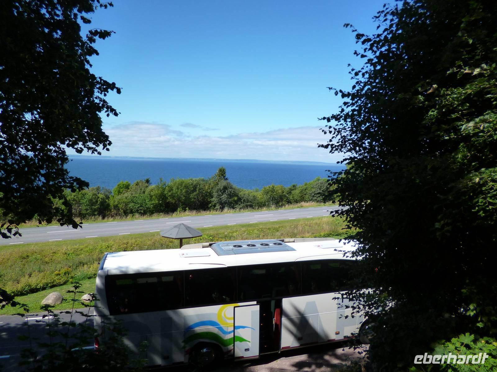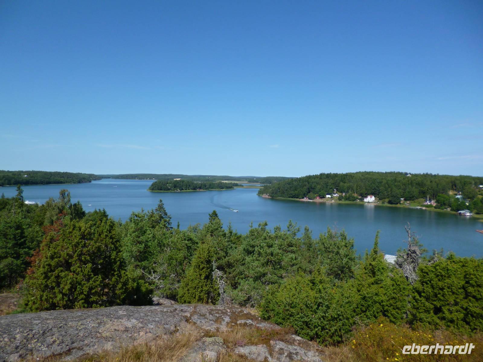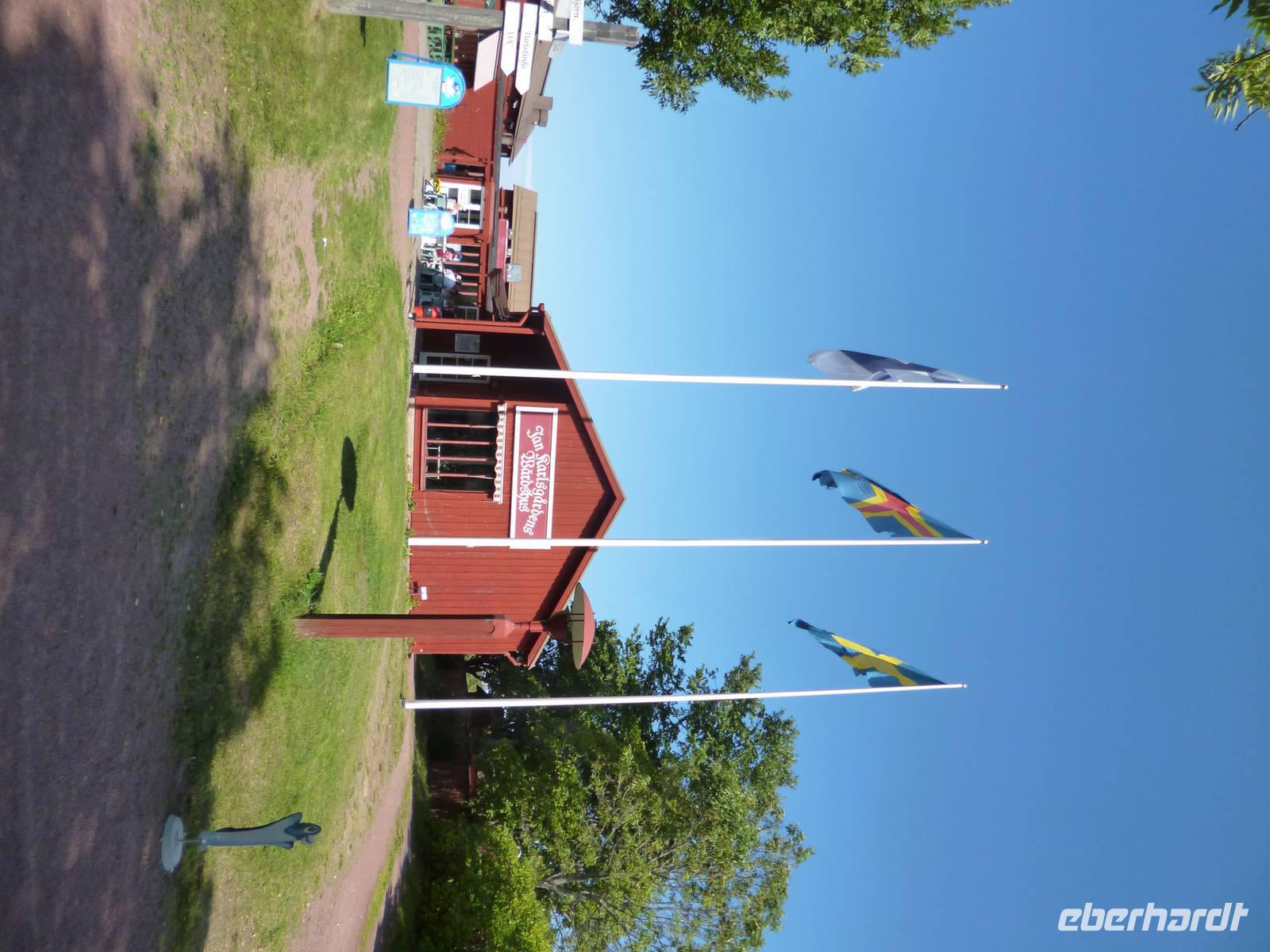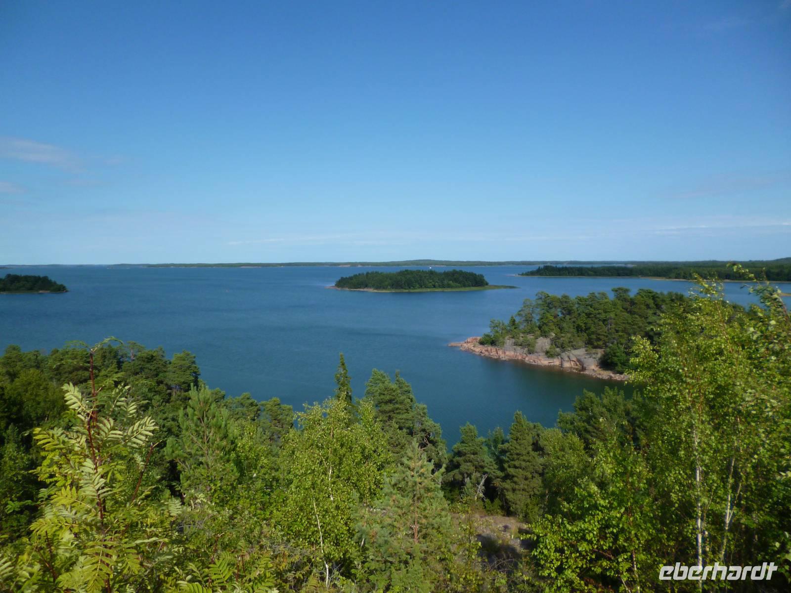 Um 6 Uhr stand unser bestelltes Frühstück bereit, 07.10 Uhr Abfahrt zur Fähre. Weil am Sonntag Morgen kein Verkehr war, brauchten wir höchstens 10 Minuten und sahen im Vorbeifahren sogar nach das aus dem 14. Jahrhundert stammende Residenzschloss von Turku. Bei herrlichem Sommerwetter begann die Fahrt durch die Schären. Im Hafen von Mariehamn erwartete uns Gästeführerin Ann Christin und fuhr mit uns durch den Osten der Hauptinsel über Jomala zur Festung Kastelholm, die bis 1634 Sitz des Statthalters von Aland war. Beim Freilichtmuseum Jan Karlsgarden, wo wir einen recht idyllischen und schattigen Busparkplatz hatten, gab es im Namen von Eberhardt Travel den sonntäglichen Sektempfang, der natürlich allgemeinen Beifall fand. Nächste Station war die russische Festung Bomarsund, die 1854 im Krimkrieg zerstört wurde. Nach dem Abendessen im Hotel Savoy in Mariehamn schlenderten viele Gäste zum Hafen, wo eine Dixieband spielte. Das Hotel ist nicht ganz neu, aber ruhig gelegen und ordentlich.