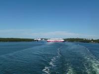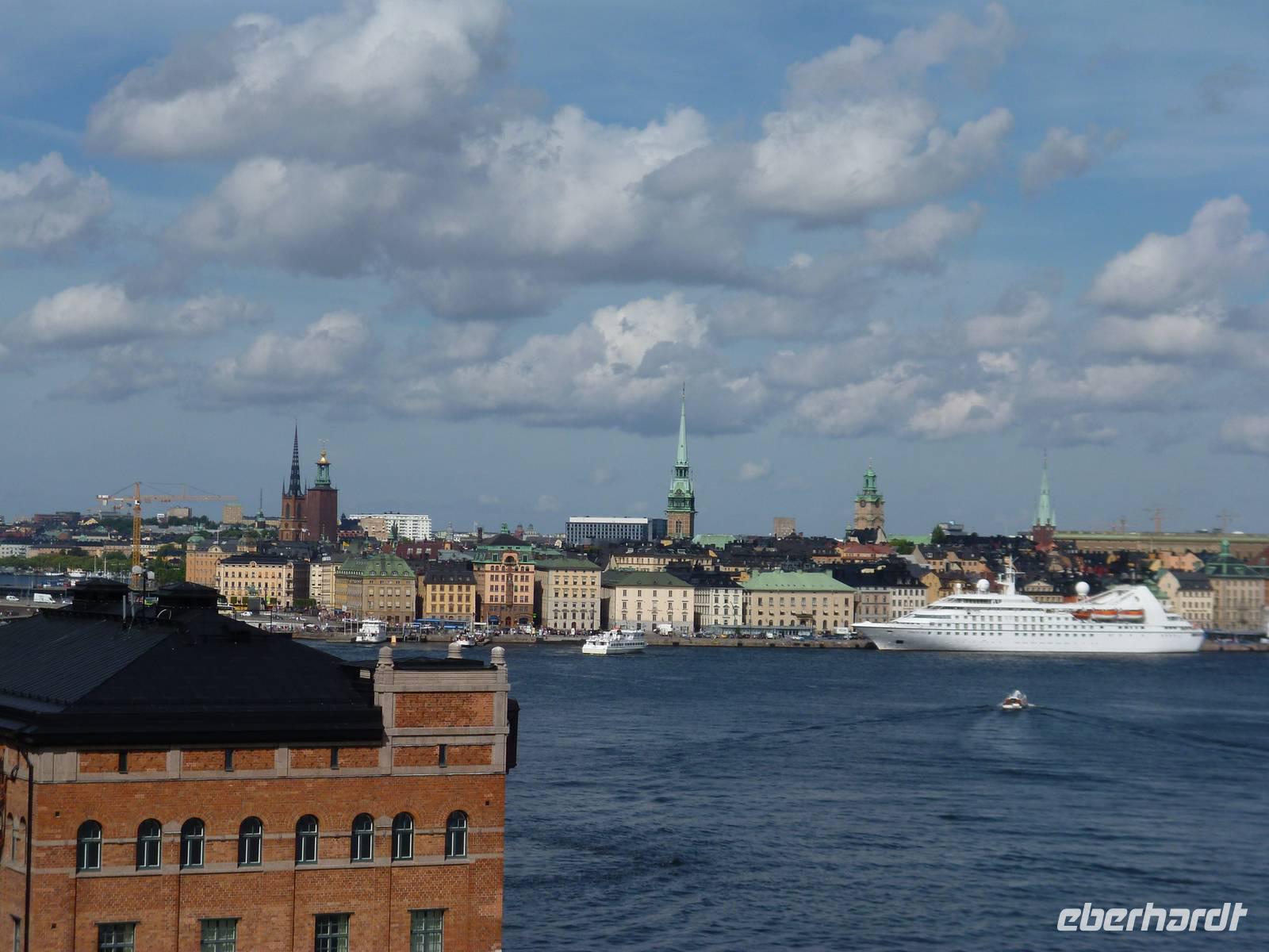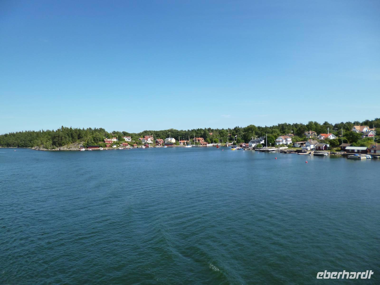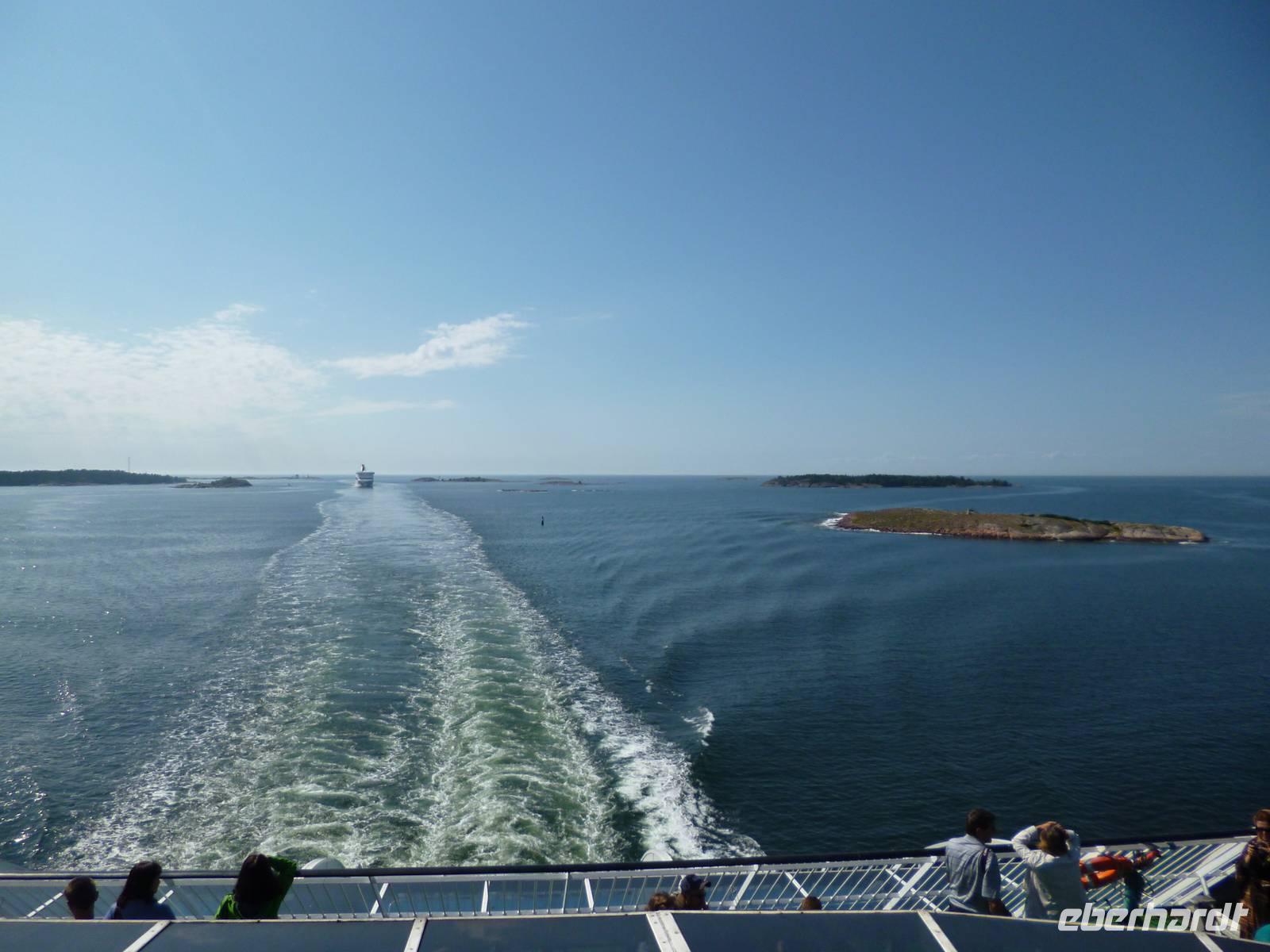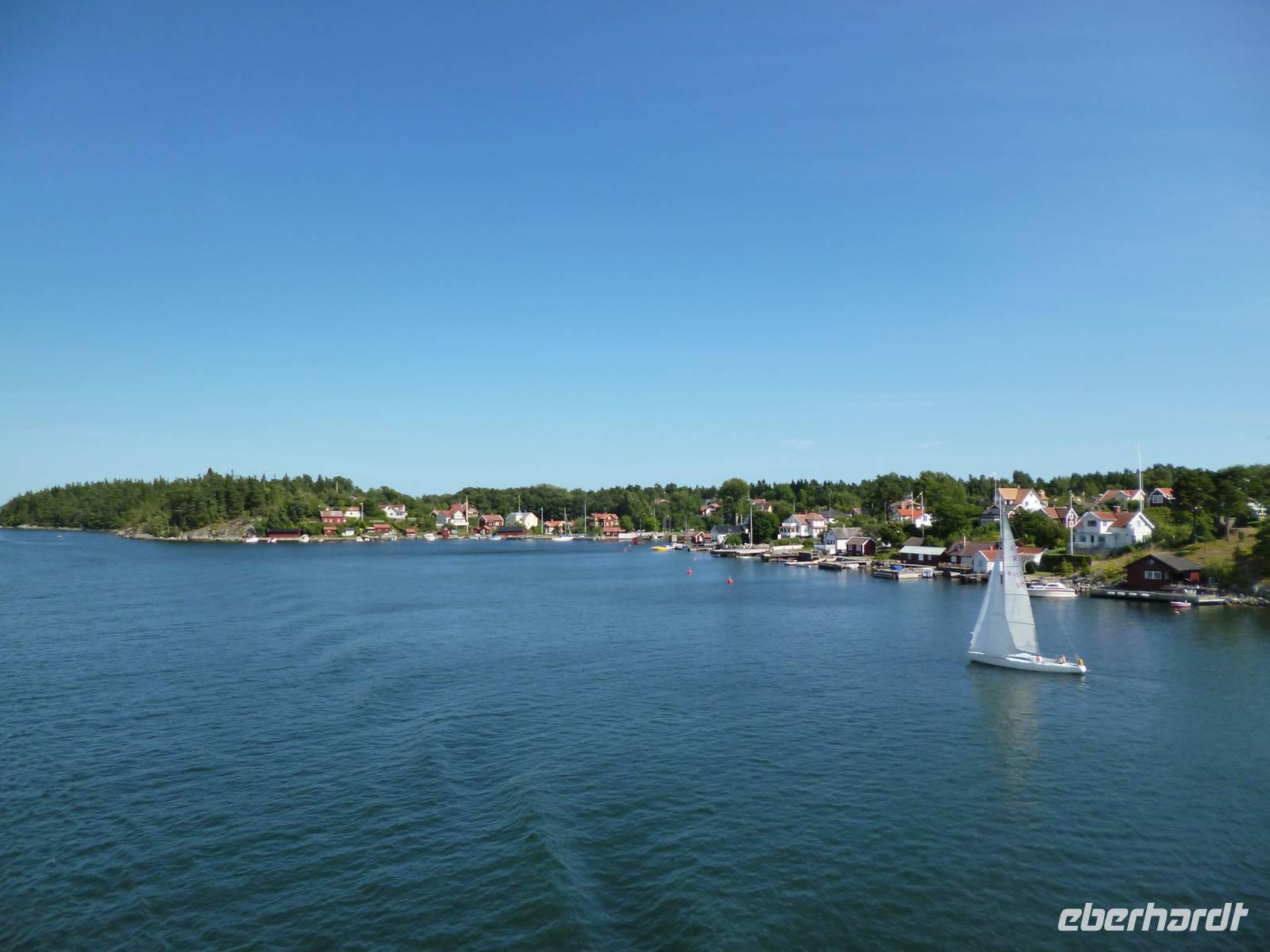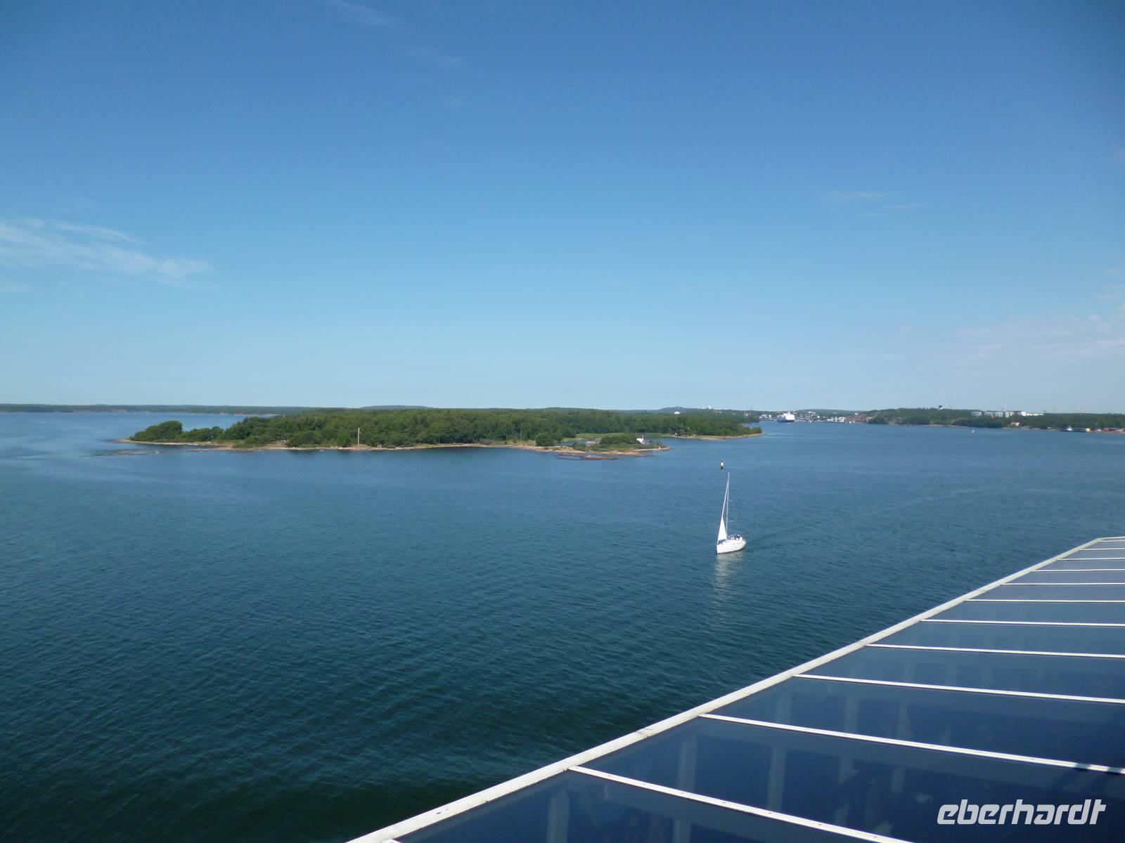 Um 08.30 Uhr fuhren wir samt Gepäck mit Ann Christin über den Westen der Insel nach Finström zur ältesten Kirche der Inselgruppe. In dem romanischen Bau aus dem 12. Jahrhundert beeindrucken die teils naiven, teils künstlerisch hochwertigen Fresken, die das gesamte Kirchenschiff samt Gewölbe überdecken. Endpunkt der Tour war die alte Posthalterei in Eckerö, gebaut von Carl Ludwig Engel, dessen Bauten wir aus Helsinki kannten. Ein kleiner Unfall, der letztlich schnell behandelt werden konnte, trübte die Stimmung, doch erleichtert genossen alle die Fährüberfahrt nach Stockholm, die fast noch schöner und abwechslungsreicher war, als die nach Aland. Viele Schären mit Landhäusern, unzählige Boote und ein Postkartenhimmel über der See.
