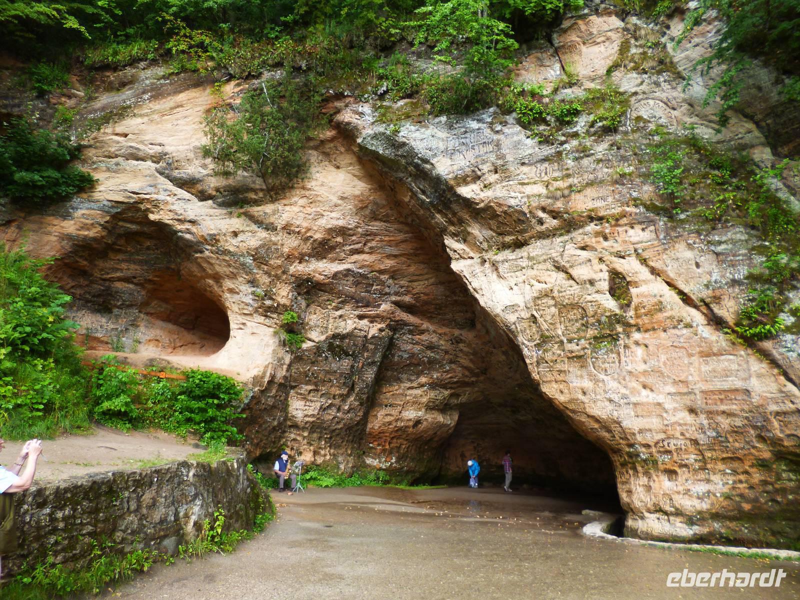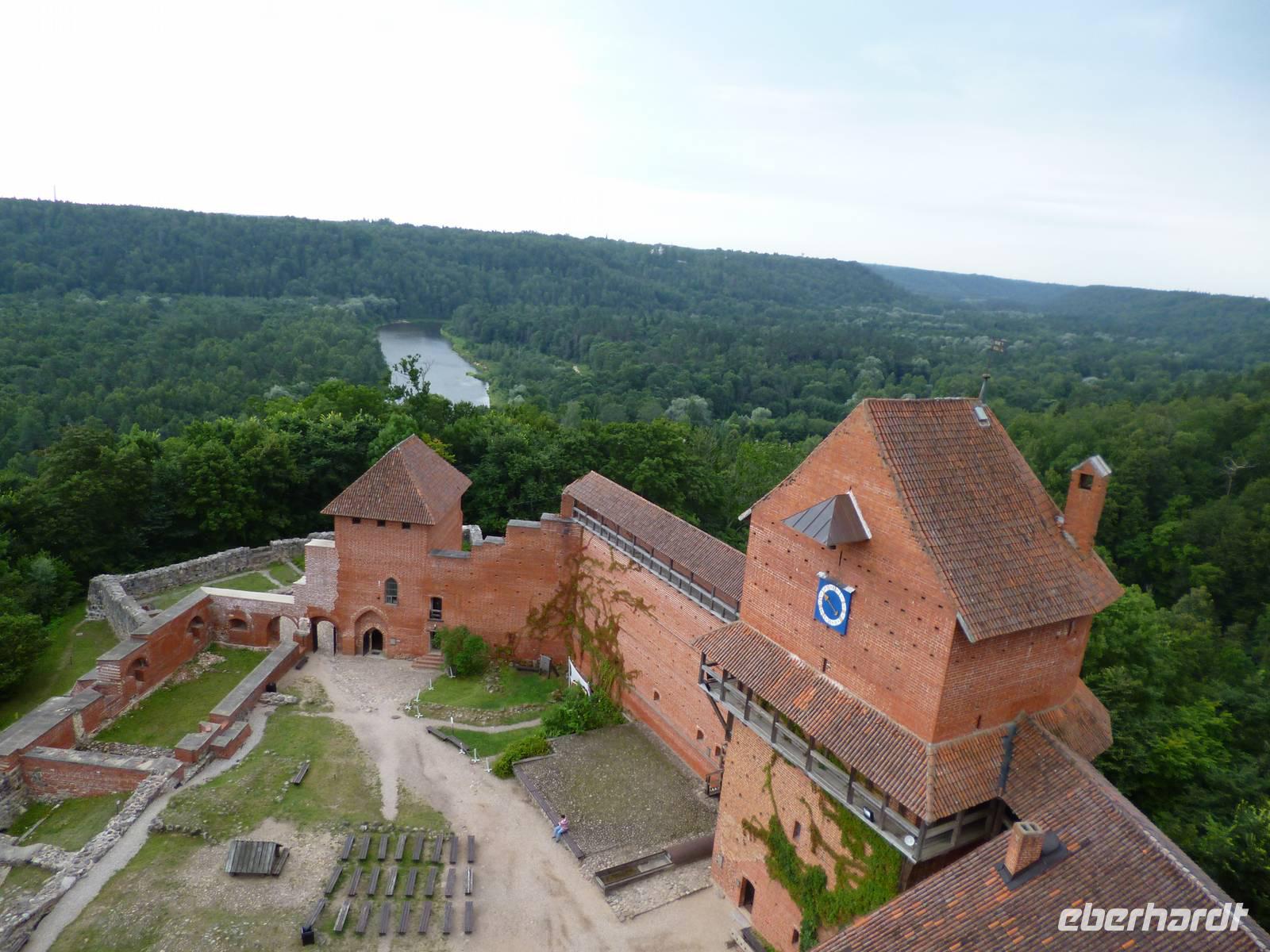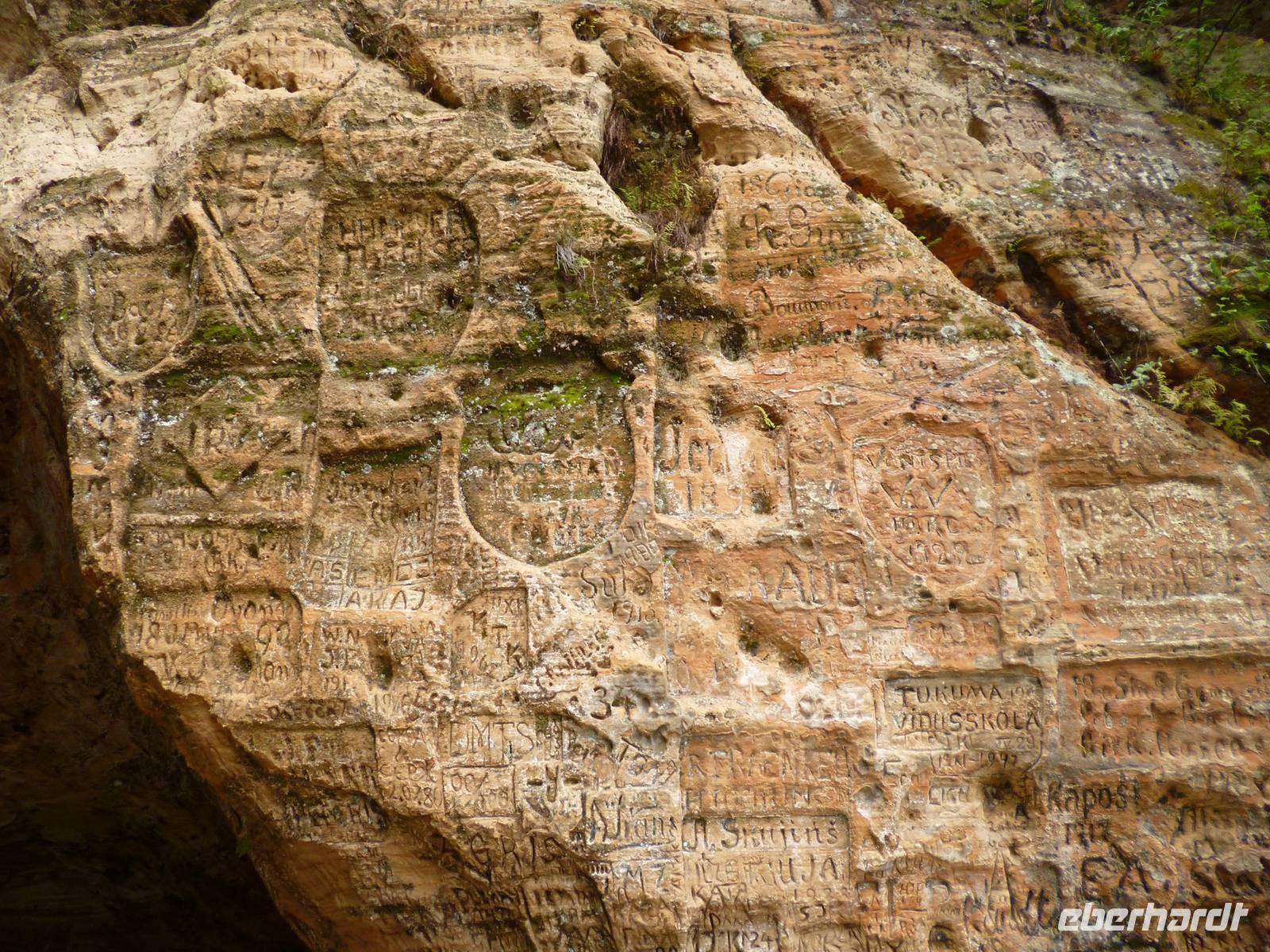 Um 9 Uhr Abfahrt ins 60 Kilometer entfernte Gaujatal, dem lettischen Naturparadies schlechthin. Seit nachts Regen. Als wir an der Burg Turajda eintrafen, kam die Sonne heraus. Nach knapp 2 Stunden Burgbesichtigung kam Gewitter, daher zelebrierten wir die Mittagspause im Bus. Anschließend zur Gutmannshöhle, die trotz Erzählung der Geschichte von der Rose von Turajda allen recht klein vorkam, vor allem den vielen Gästen aus dem Dresdener Raum. Rast rund 30 Kilometer vor Tartu.