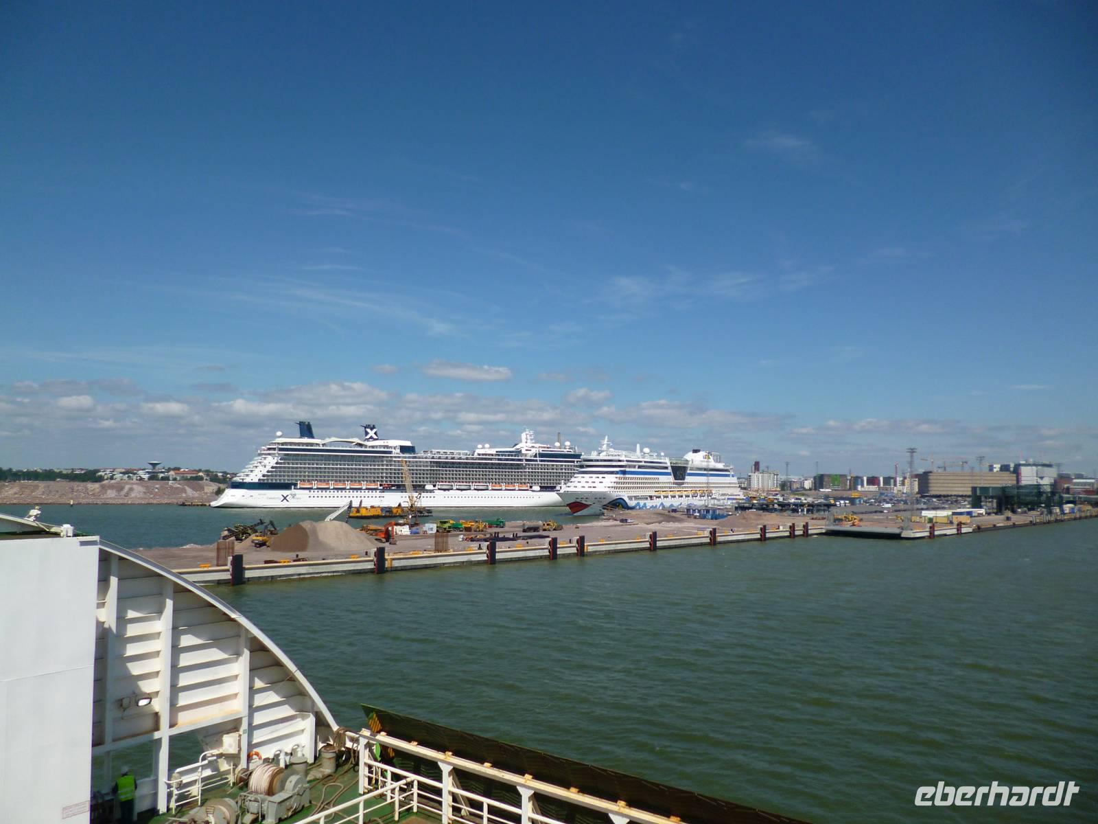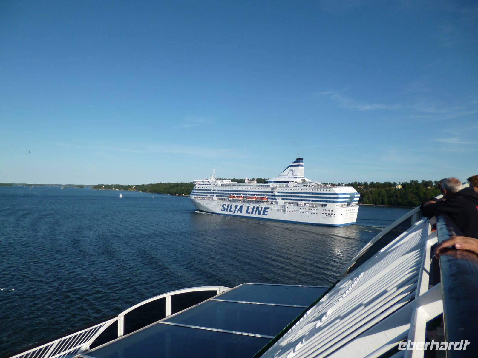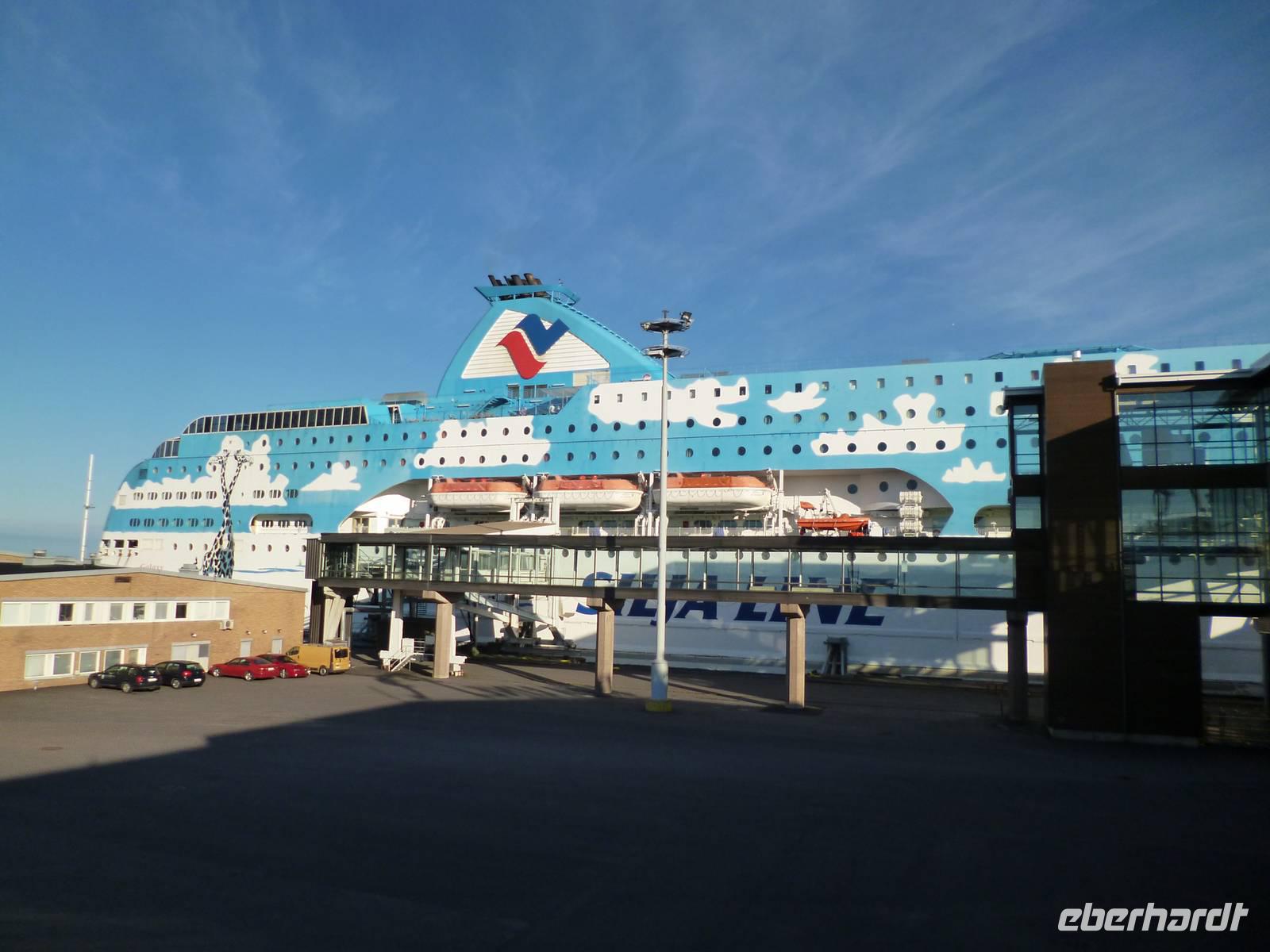 Wir konnten pünktlich um 09.00 Uhr mit den ersten 9 Gästen vom Dresdener Flughafen losfahren. Erste Rast mit Verzehr der Sachen aus den Frühstücksbeuteln auf der Raststätte Köckern. Auf der A9 bis zum Berliner Ring A10, dann Westring und auf die A24 Richtung Hamburg. Große Pause auf dem Rasthof Walsleben. Wir waren gegen halbneun auf der Fähre, wo wir sofort die Zimmer bekamen. Abendessen war ab 21 Uhr finnischer Zeit möglich.