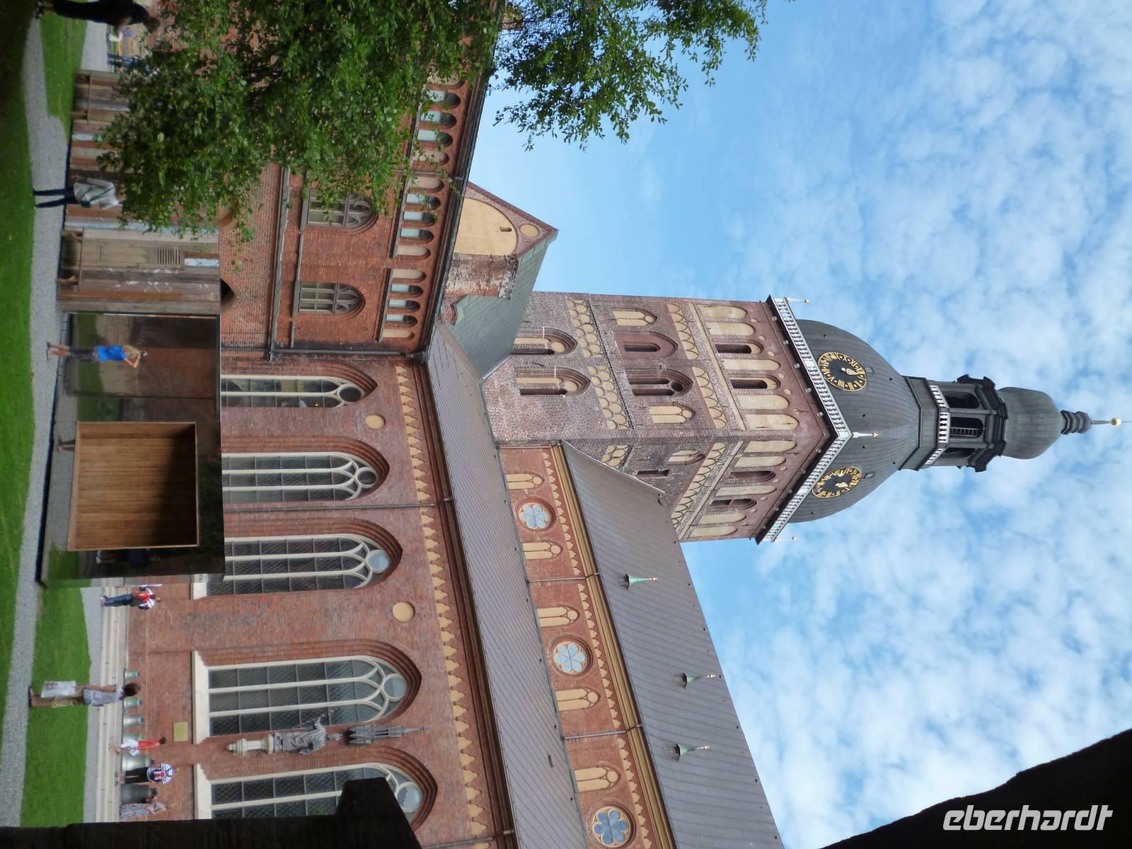 Nach einem sehr guten Frühstück erwartete uns um 9 Uhr Stadtführerin Barbara. Zuerst ging es per Bus ins Jugendstilquartier, anschließend Stadtrundgang per pedes. Der Ausstieg und der Gang zum Schwarzhäupterhaus waren erschwert, weil dort gerade der israelische Ministerpräsident empfangen worden war. Die überaus kompetent uns sprachgewandt vorgetragene Stadtführung endete am Dom. Da um 12 Uhr das tägliche Domkonzert stattfindet, ist er für normale Besucher von etwa 11 Uhr bis 12.30 Uhr nicht zugänglich. Weil alle Gäste am Orgelkonzert großes Interesse zeigten, habe ich dies im Namen von Eberhardt Travel bezahlt, was großen Beifall fand. Anschließend war Freizeit. Leider waren am Montag alle Museen geschlossen, auch die als Museum geltende Peterskirche, deren Turm man sonst besteigen kann, aber Riga bietet genug Möglichkeiten zum Bummeln.