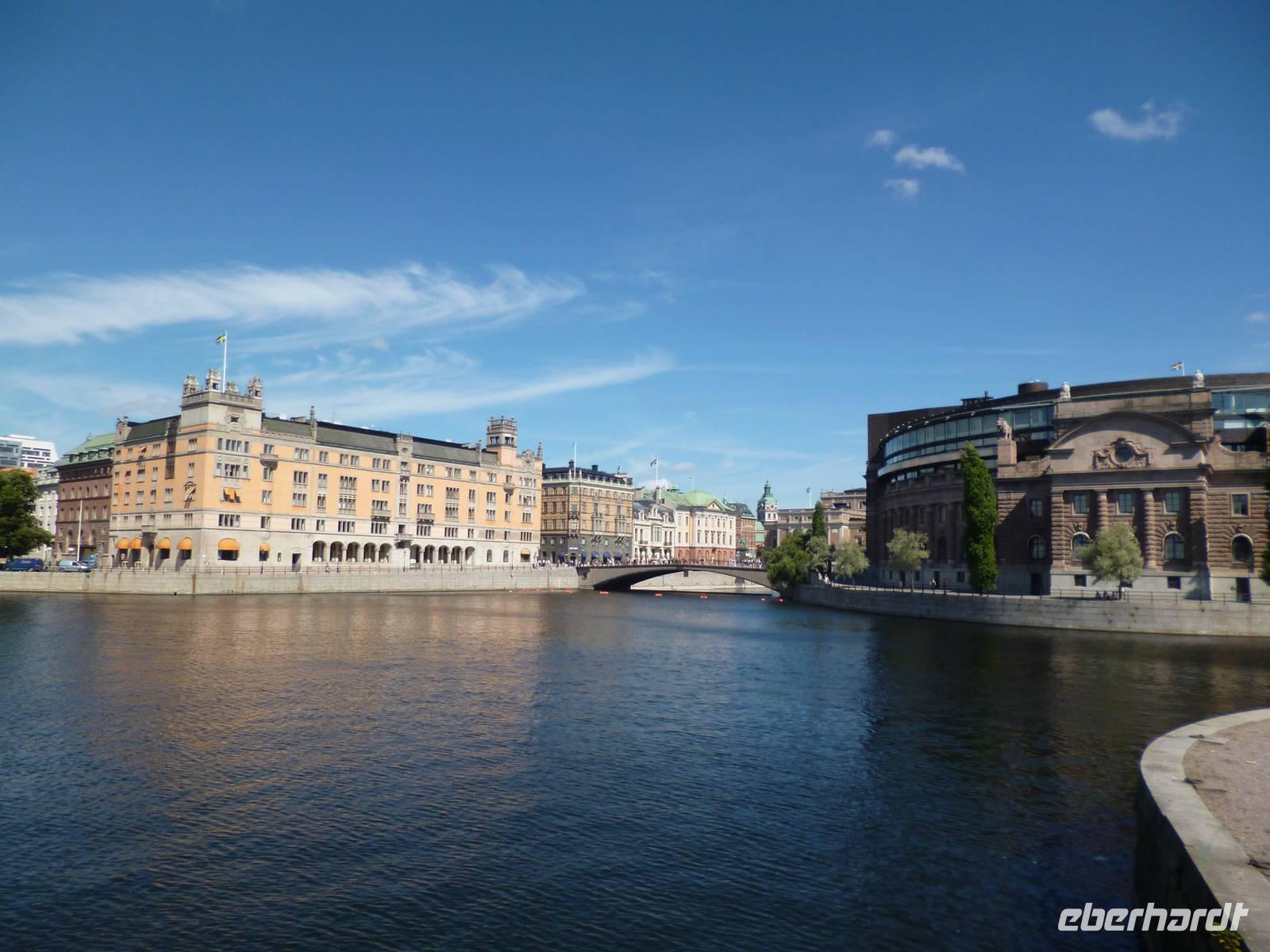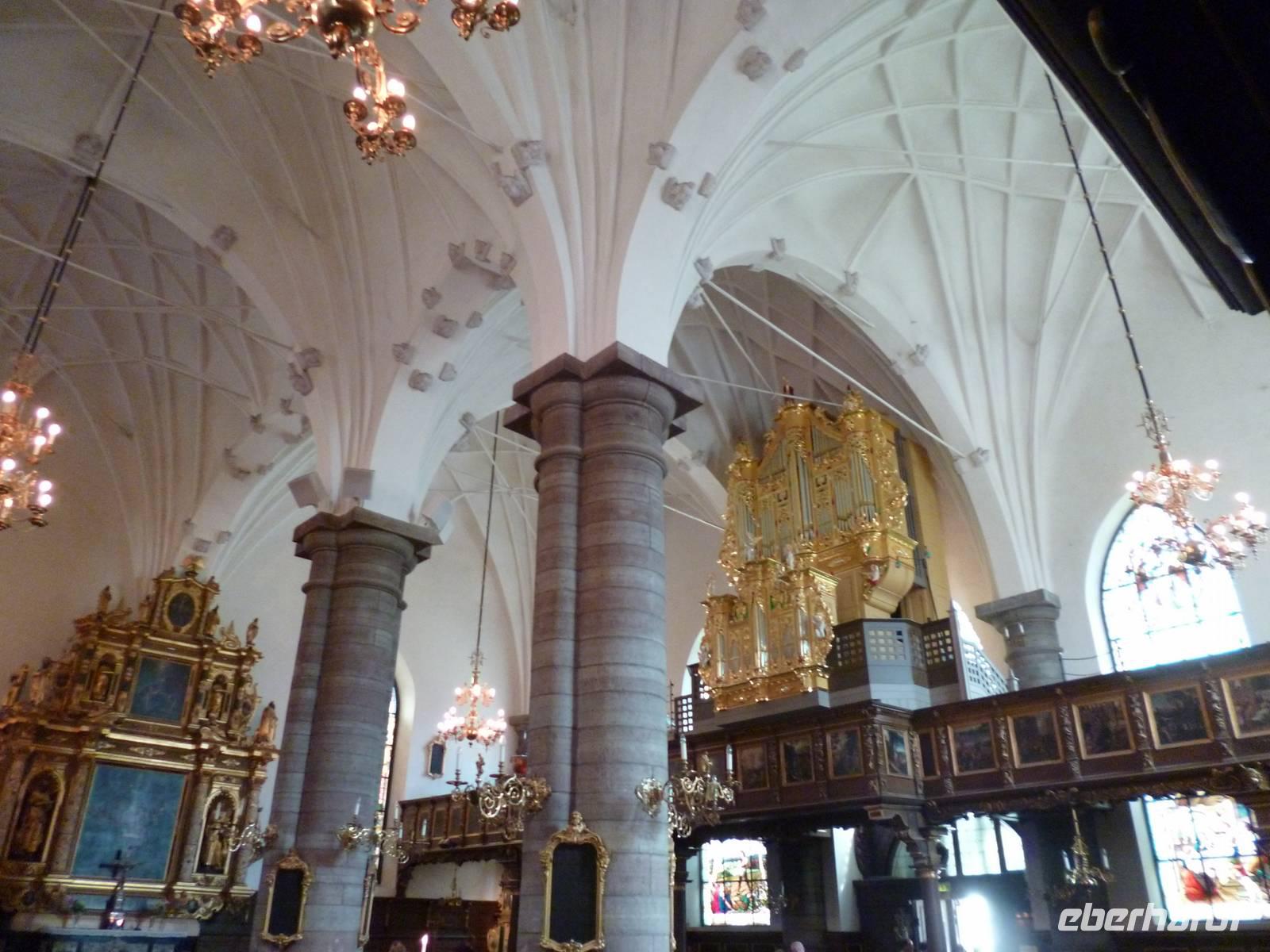 Nach dem Frühstück um 08.30 Uhr Abfahrt nach Göteborg. Das Hotel liegt günstig an der Ausfahrtsrichtung. Die erste große Pause legten wir am insgesamt 560 Kilometer langen Götakanal ein, der Stockholm mit Göteborg, die Ostsee mit dem Kattegatt verbindet. Einige Gäste spazierten von der belebten Schleuse zum Zisterzienserinnenkloster Vresta mit einer für Skandinavien seltener rein romanischen Klosterkirche. Weil wir vor Göteborg merkten, dass wir noch reichlich Zeit hatten, besichtigten wir noch in Hedared, gelegen an der Straße zwischen Boras und Alingsas, die einzige mittelalterliche Stabkirche Schwedens mit anrührend naiven Bauernmalereien. Gegen 17 Uhr konnten wir auf der Fähre einchecken, um 18 Uhr gab es Abendessen, pünktlich 18.35 Uhr legte die Fähre ab. Gegen 20 Uhr wurden die Gäste höflich gebeten, langsam den Speisesaal für die nächsten Gäste zu räumen. Viele saßen noch in der Pianobar beisammen und ließen die Reise Revue passieren.