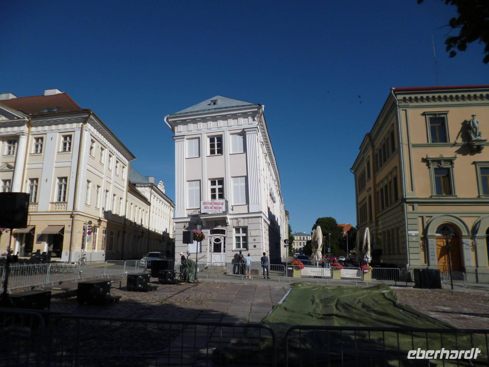Nach einem guten Frühstück holte uns die Stadtführerin Märt pünktlich um 9 ab und über den Markt und den Domberg ging es zur Universität mit ihren vielen Gebäuden. Märd hatte selber hier studiert und ein schier unerschöpfliches Wissen über die Geschichte der Universität und über Biographien bedeutender Studenten und Professoren parat, das sie mit interessanten Geschichten bereichern konnte. Danach war noch etwas Freizeit und dann wartete der Bus, mit dem wir nach Estland losfuhren. Im Grenzort Valga legten wir noch eine Pause ein und dann gin es zügig weiter nach Tallinn oder Reval. Weil für den nächsten Tag die Stadtführung fußläufig geplant war, sind wir gleich noch zu einigen außerhalb liegenden Sehenswürdigkeiten gefahren. Von der großzügig angelegten Sängerbühne und dem dem unweit gegenüber liegenden Olympiastützpunkt von 1980 und verschiedenen Denkmälern fuhren wir zum Hotel. In Tallin absolvierten wir wieder vor dem Essen einen kleinen Stadtspaziergang zum Markt mit dem gotischen Rathaus und der alten Apotheke. Im Hotel erwartete uns dann ein leckeres Abendessen.