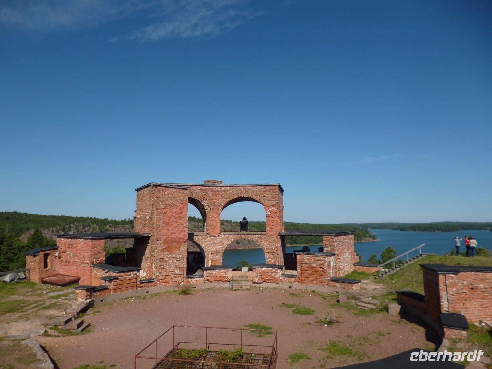 Unter russischer Herrschaft wurden die Inseln weiter bebaut und zeitweilig mit über 13.000 Soldaten besetzt. Erst mit der Russischen Revolution konnten die Finnen die Festung endgültig selbst übernehmen, nachdem sie die Unabhängigkeit erreicht hatten. Im finnischen Bürgerkrieg 1918 richteten die „Weißen" auf einer der Inseln ein Gefängnis ein, in dem 3.000 Sympathisanten der „Roten" starben. Im Zweiten Weltkrieg dienten die Inseln den Finnen als Stützpunkt von Küstenartillerie, Luftabwehr und U-Booten. Noch heute gilt Suomenlinna als ein Musterbeispiel für Militär- und Festungsarchitektur, die bei der Errichtung stark an die Ideen des französischen Baumeisters Vauban angelehnt war. Nach einer 25 Minuten langen Bootsfahrt erwartete uns mit Margaretha eine sehr kompetente aus Deutschland stammende Führerin, die uns mit den komplizierten Festungsbauten vertraut machte. Mit dem Panorama Helsinkis vor Augen ging es per Boot zurück.