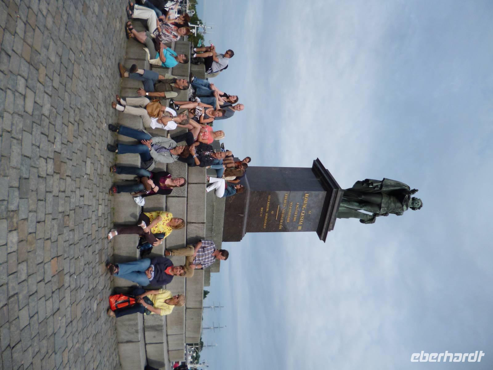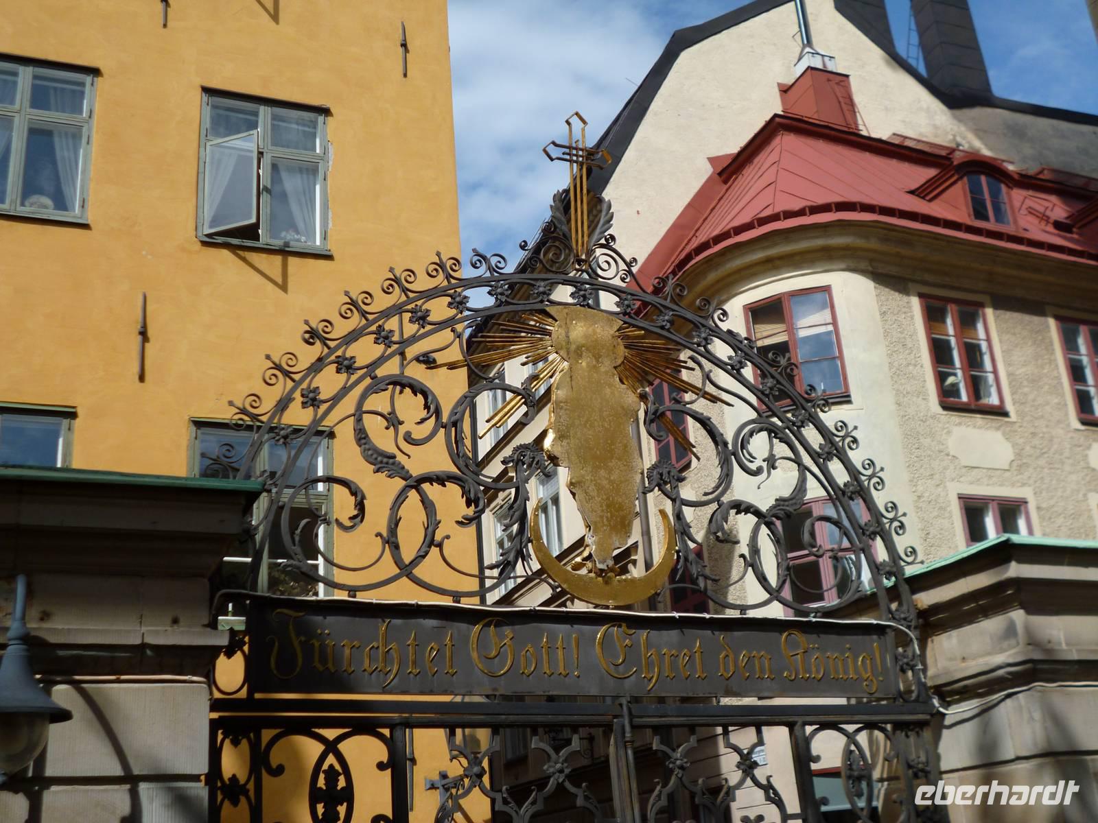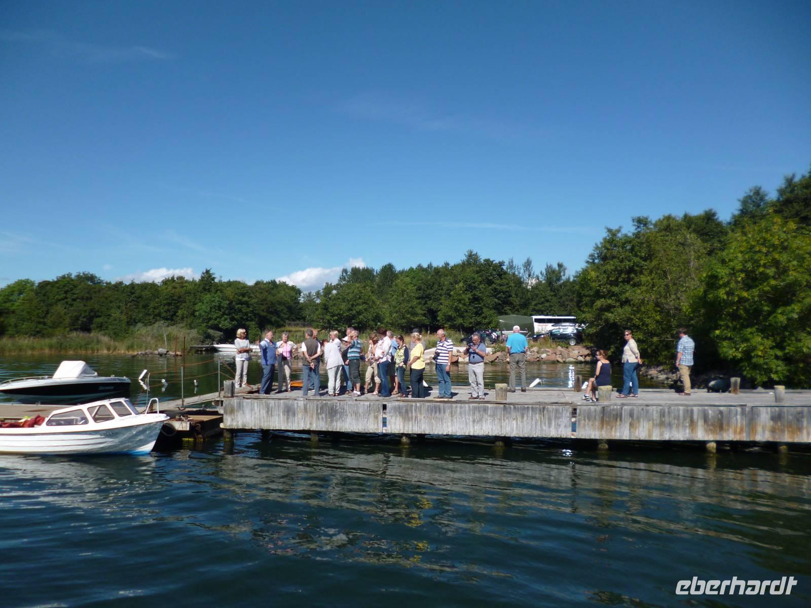 Nach dem Frühstück trafen wir Uwe um halbneun vom Hotel ab und fuhr mit uns zur alten Wehrkirche von Sund, die ein gutes Beispiel für die im 13. Jahrhundert auf den Inseln entstandenen romanischen Kirchen ist. Gebaut aus wuchtigen Feldsteinen beeindruckt der massige Westturm. Berühmt sind die Kirchen für ihre wieder entdeckten Seccomalereien im Inneren. Die in Sund besitzt noch ein hervorragend erhaltenes frühgotisches Kruzifix und einen qualitätvollen böhmischen Flügelaltar. Weiter dann durch den Osten der Hauptinsel zur Festung Kastelholm, die bis 1634 Sitz des Statthalters von Aland war. Beim Freilichtmuseum Jan Karlsgarden, wo wir einen recht idyllischen Busparkplatz hatten, legten wir eine kleine Pause ein. Nach der Besichtigung der Zarenfestung Bomarsund, die 1854 im Krimkrieg zerstört wurde, schafften wir noch, in Jomala den überhaupt ältesten finnischen Steinbau, die größte mittelalterliche Feldsteinkirche des Landes zu besichtigen. Ihr 45 Meter hoher Turm gilt als Superlativ und auch hier finden sich bedeutende Wandmalereien. Auf einem herrlich gelegenen Aussichtshügel in Marienhamn gab es dann das Mittagsmahl. Anschließend genossen alle die Fährüberfahrt nach Stockholm, die fast noch schöner und deutlich abwechslungsreicher war, als die nach Aland. Viele Schären mit Landhäusern, unzählige Boote und ein Postkartenhimmel über der See.Dienstag, der elfte August 2015 - Stockholm und ein gesunkenes SchiffUm 08.30 Uhr Abfahrt vom Hotel. Unsere Führerin Alexa von Blücher, eine Urgroßnichte des bekannten Feldherrn aus den Napoleonischen Kriegen, trafen wir am Rathaus, dem riesigen Backsteinbau mit dem 104 Meter hohen Turm. Die Rundfahrt mit Ausstiegen führte vorbei am Botschaftsviertel und zur Insel Djurgarden, auf dem viele Museen und einige Prominentenvillen sind. Hier ist Skaagen, das größte Freilichtmuseum Europas, in das man historische Gebäude aus ganz Schweden verpflanzt hat. Höhepunkt war eindeutig das Vasamuseum mit der wieder geborgenen Staatskogge des Schwedenkönigs, die 333 Jahre bis 1961 in der Stockholmer Hafeneinfahrt gelegen hatte. Das geborgene Flaggschiff der schwedischen Marine und seine tolle Präsentation fanden alle sehr eindrucksvoll. Letzter Ausstieg mit anschließendem Spaziergang durch die Altstadt war am Königsschloss, wo wir noch die Wachablösung sehen konnten. Dann Freizeit bis 17.30 Uhr. Der Bus mit neuem fuhr uns zum Hotel und zum leckeren Abendessen.