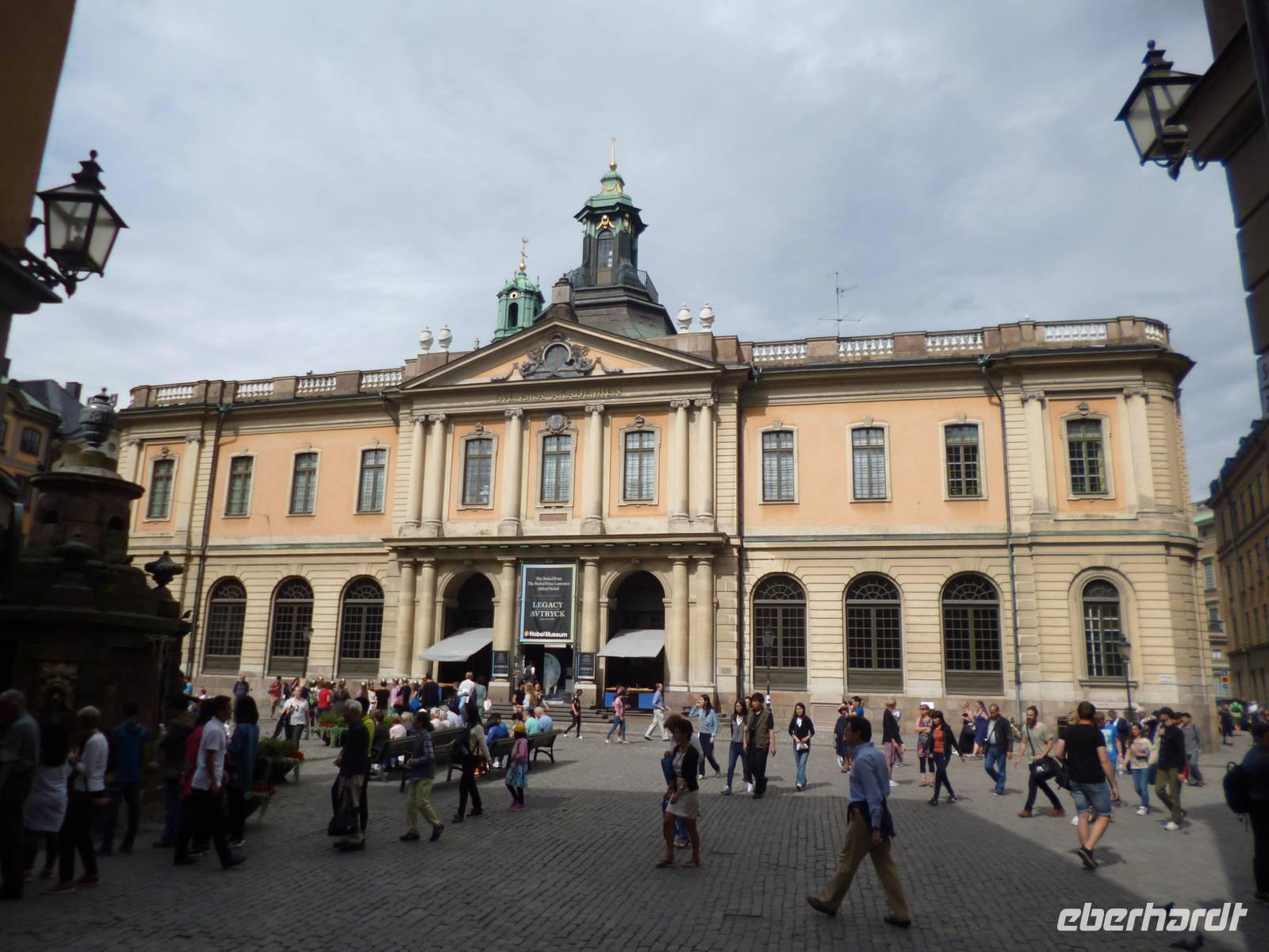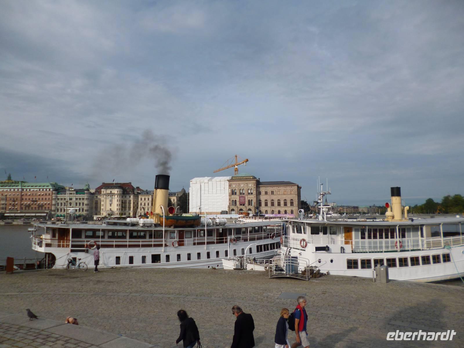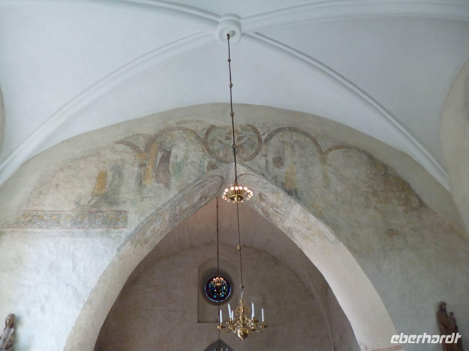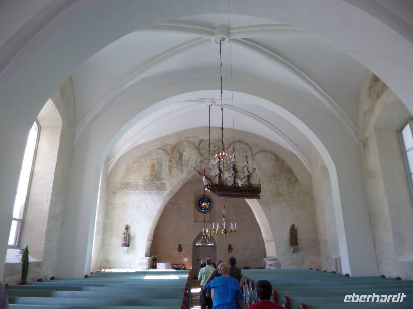 Nach dem Frühstück trafen wir Uwe um halbneun vom Hotel ab und fuhr mit uns zur alten Wehrkirche von Sund, die ein gutes Beispiel für die im 13. Jahrhundert auf den Inseln entstandenen romanischen Kirchen ist. Gebaut aus wuchtigen Feldsteinen beeindruckt der massige Westturm. Berühmt sind die Kirchen für ihre wieder entdeckten Seccomalereien im Inneren. Die in Sund besitzt noch ein hervorragend erhaltenes frühgotisches Kruzifix und einen qualitätvollen böhmischen Flügelaltar. Weiter dann durch den Osten der Hauptinsel zur Festung Kastelholm, die bis 1634 Sitz des Statthalters von Aland war. Beim Freilichtmuseum Jan Karlsgarden, wo wir einen recht idyllischen Busparkplatz hatten, legten wir eine kleine Pause ein. Nach der Besichtigung der Zarenfestung Bomarsund, die 1854 im Krimkrieg zerstört wurde, schafften wir noch, in Jomala den überhaupt ältesten finnischen Steinbau, die größte mittelalterliche Feldsteinkirche des Landes zu besichtigen. Ihr 45 Meter hoher Turm gilt als Superlativ und auch hier finden sich bedeutende Wandmalereien. Auf einem herrlich gelegenen Aussichtshügel in Marienhamn gab es dann das Mittagsmahl. Anschließend genossen alle die Fährüberfahrt nach Stockholm, die fast noch schöner und deutlich abwechslungsreicher war, als die nach Aland. Viele Schären mit Landhäusern, unzählige Boote und ein Postkartenhimmel über der See.Dienstag, der elfte August 2015 - Stockholm und ein gesunkenes SchiffUm 08.30 Uhr Abfahrt vom Hotel. Unsere Führerin Alexa von Blücher, eine Urgroßnichte des bekannten Feldherrn aus den Napoleonischen Kriegen, trafen wir am Rathaus, dem riesigen Backsteinbau mit dem 104 Meter hohen Turm. Die Rundfahrt mit Ausstiegen führte vorbei am Botschaftsviertel und zur Insel Djurgarden, auf dem viele Museen und einige Prominentenvillen sind. Hier ist Skaagen, das größte Freilichtmuseum Europas, in das man historische Gebäude aus ganz Schweden verpflanzt hat. Höhepunkt war eindeutig das Vasamuseum mit der wieder geborgenen Staatskogge des Schwedenkönigs, die 333 Jahre bis 1961 in der Stockholmer Hafeneinfahrt gelegen hatte. Das geborgene Flaggschiff der schwedischen Marine und seine tolle Präsentation fanden alle sehr eindrucksvoll. Letzter Ausstieg mit anschließendem Spaziergang durch die Altstadt war am Königsschloss, wo wir noch die Wachablösung sehen konnten. Dann Freizeit bis 17.30 Uhr. Der Bus mit neuem fuhr uns zum Hotel und zum leckeren Abendessen.