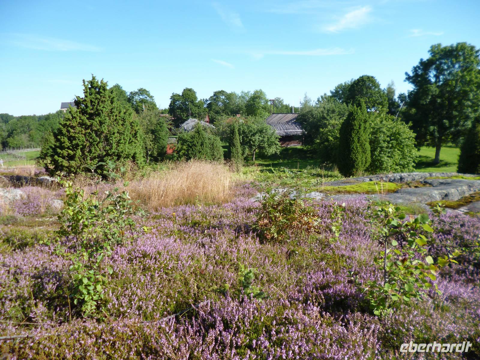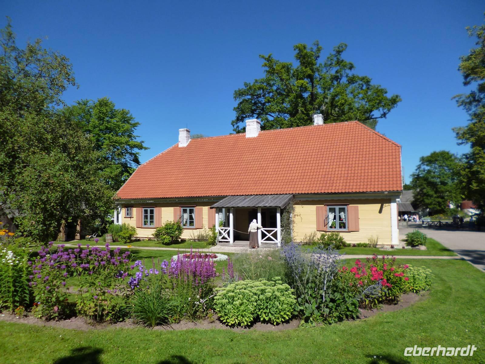 Um sechs Uhr früh stand unser Frühstück bereit und danach ging es zur Fähre. Weil am Sonntag Morgen kein Verkehr war, brauchten wir höchstens 10 Minuten und sahen im Vorbeifahren sogar nach das aus dem 14. Jahrhundert stammende Residenzschloss von Turku. Bei herrlichem Sommerwetter begann die Fahrt durch die Schären. Im Hafen von Mariehamn erwartete uns Gästeführer Uwe Koslowski. Der gebürtige Schlesier ist auf Aland aufgewachsen und arbeitet in sozialen Berufen, ist aber auch in historischen Dingen sehr kundig. Er fuhr mit uns durch Mariehamn zu einem schönen Picknickplatz an der Südspitze dieser Insel, wo wir dann das Mittagessen an einem Bootssteg genießen konnten. Weiter ging es zur alten Posthalterei in Eckerö, gebaut von Carl Ludwig Engel, dessen Bauten wir aus Helsinki kannten. Nach dem leckeren Abendessen im Hotel Savoy in Mariehamn schlenderten viele Gäste noch zum Hafen oder zur Ostseepromenade.
