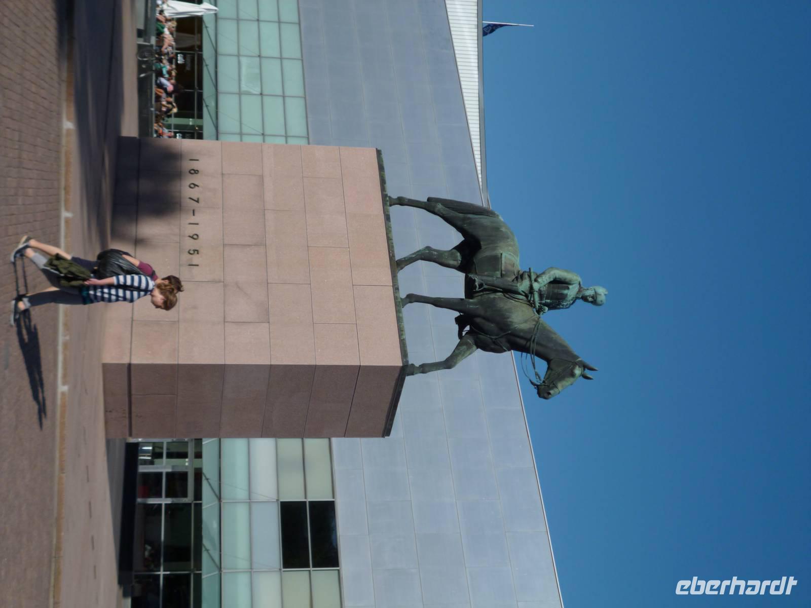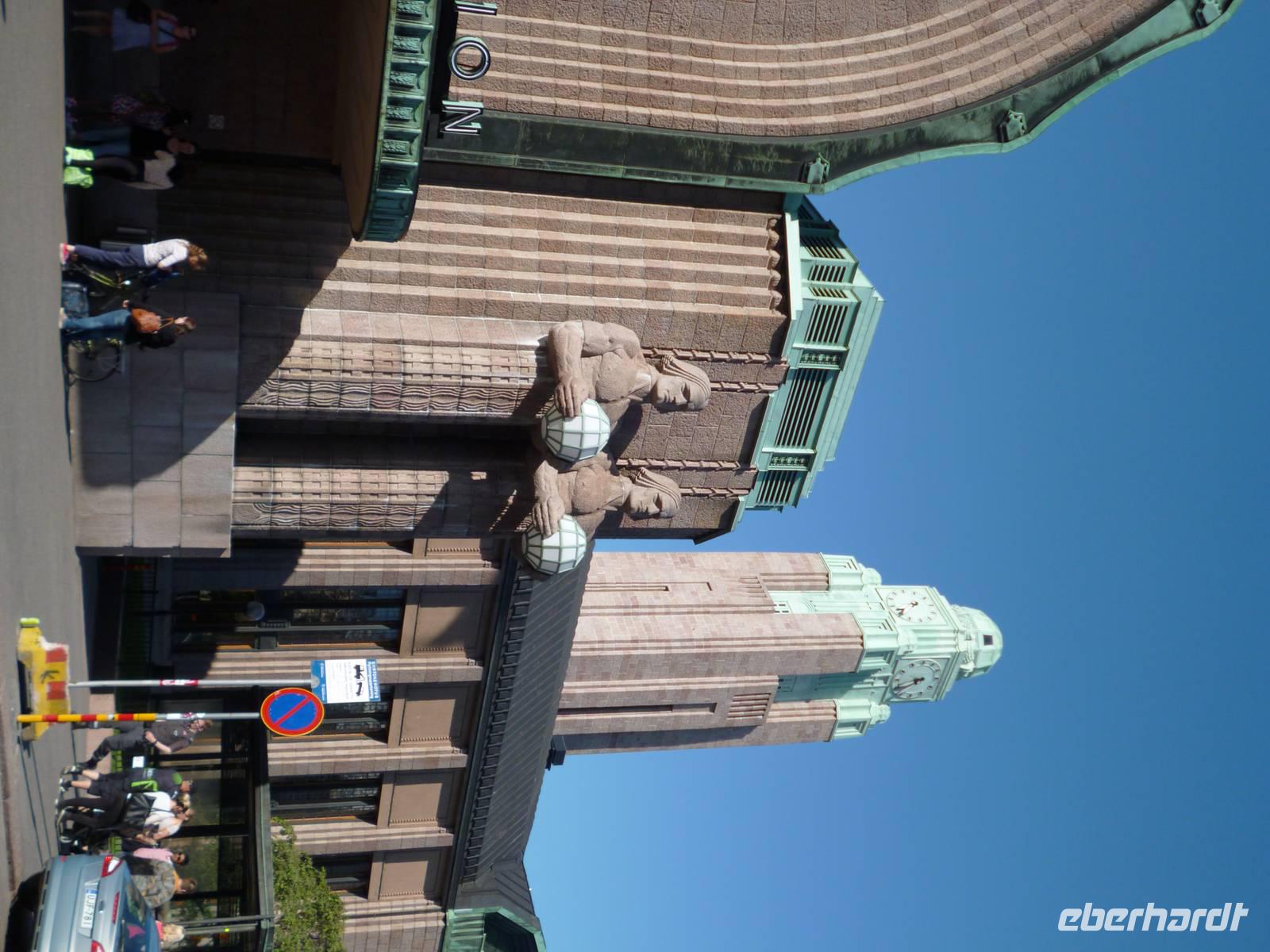 Am Hafen bei der Uspenskikathedrale trafen wir die deutschstämmige Stadtführerin Petra, die gleich mit einer kleinem Rundfahrt begann. Der erste Ausstieg galt der berühmten Felsenkirche, die wohl alle sehr beeindruckte. Weiter ging es zum Denkmal des finnischen Nationalkomponisten Jean Sibelius und zum Olympiastadion. Gebaut für die 1940 geplante Olympiade, die nicht stattfand, stellt es einen besonderen Beitrag zur Architekturgeschichte dieser Zeit dar. Architekt war der berühmte Finne Alvar Aalto (1898-1976), einer der Vorreiter des Funktionalismus. Viele seiner Entwürfe wie die Finlandia-Halle, ein 1971 fertiggestelltes Konzert- und Kongressgebäude, oder das Hauptquartier des Papierkonzerns Stora Enso sind von der Bevölkerung teilweise kontrovers aufgenommen worden. Entlang der Hauptstraße Mannerheimintie befinden sich mit dem Kulturzentrum Lasipalatsi und dem Posthaus weitere funktionalistische Bauten.