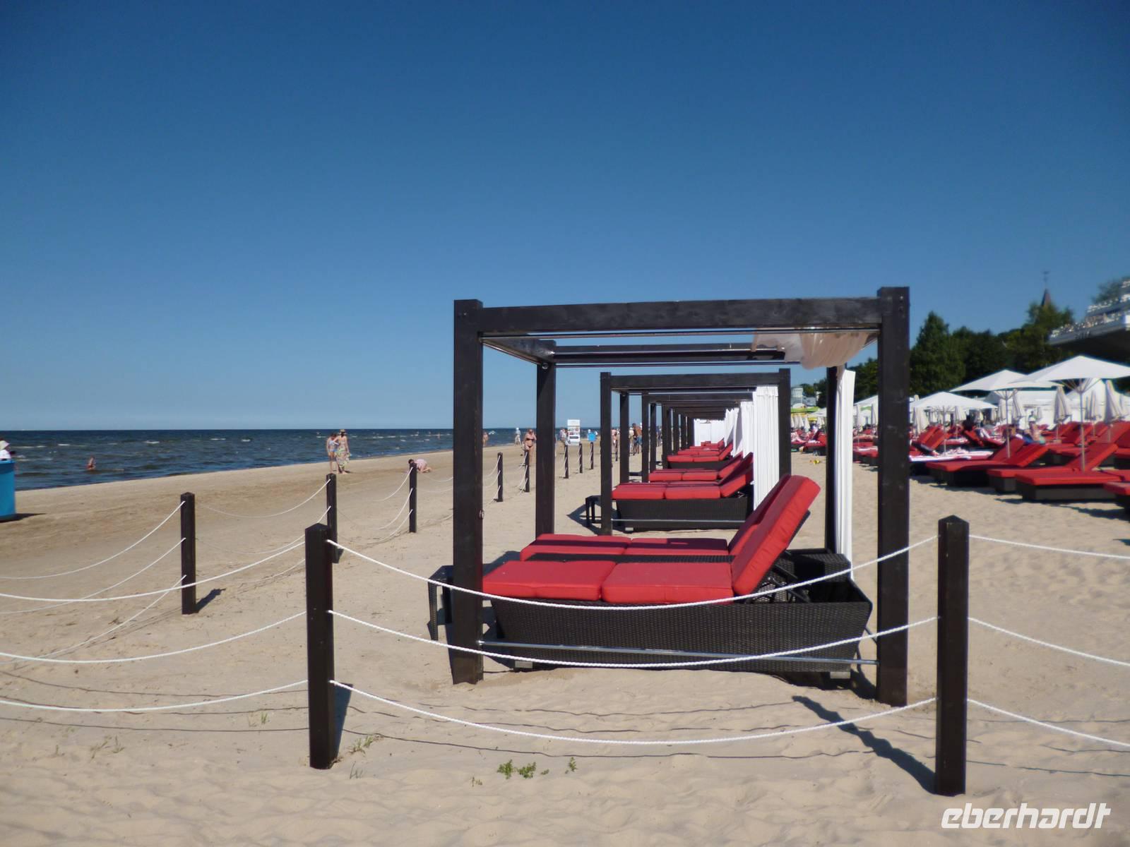 Nach einem sehr guten Frühstück erwartete uns um 9 Uhr Stadtführerin Bieruta. Zuerst ging es per Bus ins Jugendstilquartier, wo uns Bieruta in der Albertstraße die mittlerweile sehr gut sanierten Bauten von Michael Eisenstein zeigte. Der Vater des weltbekannten Filmregisseurs hatte in Riga eine ganz spezielle, mit traditionellen Anspielungen durchsetzte Variante des Jugendstils kreiert. Daneben gefielen die etwas später entstandenen Bauten der Nationalromantik. Anschließend begann der zweite Teil des Stadtrundgangs per Bus und pedes. Aus dem Bus fuhren wir die Sehenswürdigkeiten am Ring ab, vorbei am Bahnhof mit den alten Markthallen, dem Grüngürtel mit altem Schloss und Oper und hin zum Rathausplatz. Schwarzhäupterhaus, Petrikirche und die vier von Bremen gespendeten bronzenen Stadtmusikanten gehörten ebenso zum Programm, wie die Gildehäuser, die so genannten drei Brüder und die wichtigsten Kirchen der einst mächtigen Hansestadt. Die kompetent uns sprachgewandt vorgetragene Stadtführung endete am Dom. Erstmals war für alle ein kleines Domkonzert auf der Walckerorgel und eine kleine Domführung durch den Reiseleiter im Programm. Die in Ludwigsburg gebaute Orgel war seinerzeit die größte der Welt und eine der klangreinsten. Anschließend war Freizeit und dann nutzten fast alle Gäste das Angebot, mit unserem Bus in den traditionsreichen Badeort Jurmala zu fahren, der wegen seiner schönen Strände und den alten, aus Holz gebauten Sommervillen sehr beliebt ist. Die Hitze war auch am Strand viel besser zu ertragen und man konnte sich im klaren Wasser gut abkühlen. Nach dem Bad schmeckte das Abendessen im Hotel doppelt gut. Nach dem Abendessen fuhren wiederum mehrere Gäste mit dem Reiseleiter noch in die Altstadt.
