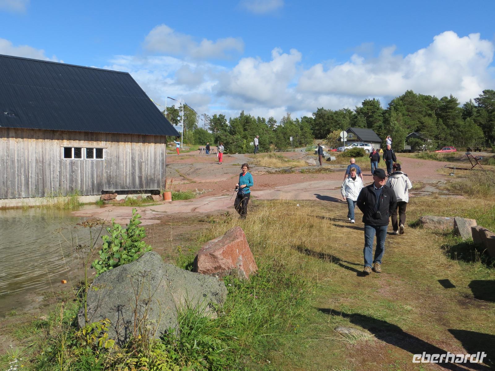 Einen ersten Stopp machten wir am Sibelus-Denkmal: symbolisierte Baumstämme - typisch für den Wald Finnlands; nicht Orgelpfeifen - ergeben einen schwebenden Klangraum in der Natur. Gute Konzerte kann man in der Felsenkirche hören; Grund für uns, dieses baulich interessante Werk einer in den Felsen gesprengten und mit einer Glaspylone und Kupferdrahtschirm abgedachten Kirche zu besichtigen. Dritter Halt dann auf dem Senatsplatz am Denkmal des Zaren Alexander II unterhalb des mächtigen weißen Doms. Noch vor sechszehn Uhr erreichten wir unser Hotel Scandic Grand Marina in einem alten Lagerhaus am Stadthafen. So war noch drei Stunden Zeit für individuelles Erkunden von Helsinki: nochmals zum Dom, die Esplanade hinauf und hinab, zum Markt und zur Uspenskikathedrale, die einst Zar Alexander der III. einweihte. Die Hälfte der Reisegäste hatte sich jedoch für einen individuellen Ausflug zur Festungsinsel Suomenlinna entschieden, und so starteten sie mit der Stadtfähre zur Insel, die heute unter Welterbeschutz steht.