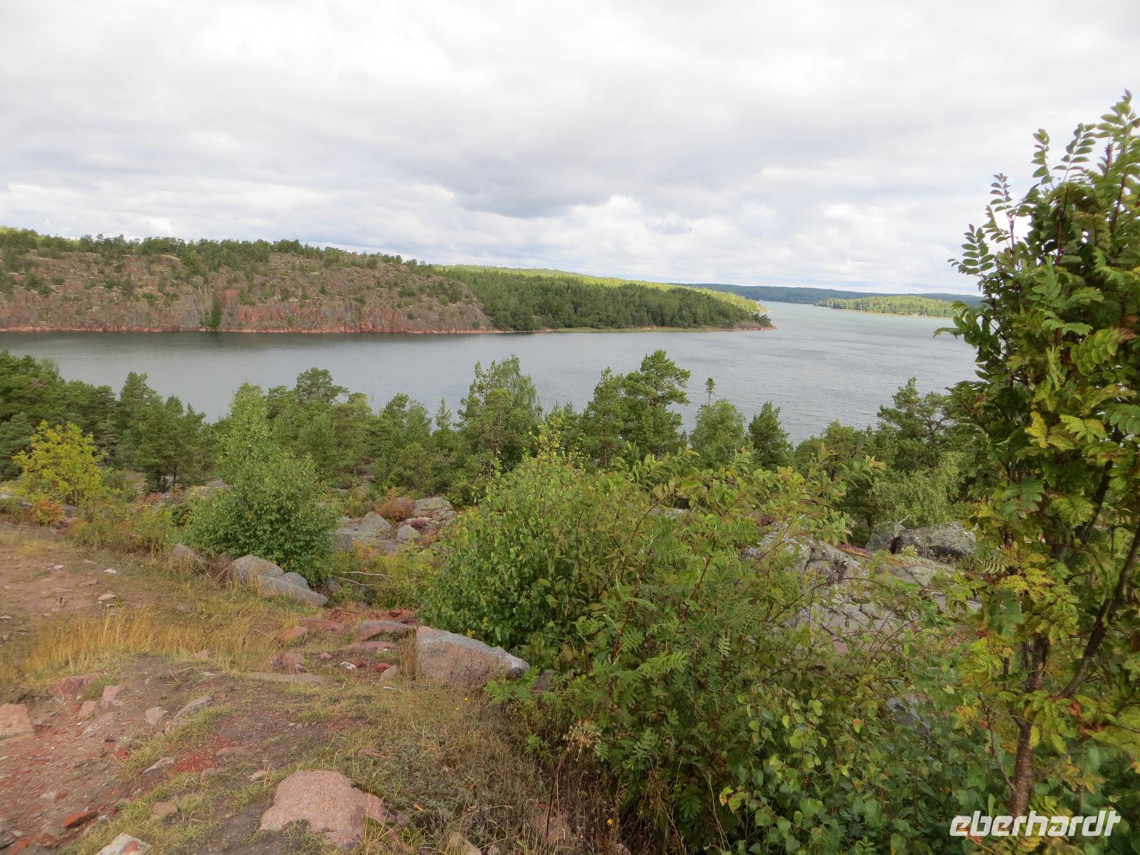 Der Tag begann sechs Uhr mit einem kleinen Frühstück in der Hotel-Lobby; bereits wenige Minuten nach Sieben erreichten wir den Silja-Hafen unterhalb der Burg von Turku, die wir am Vortage kurz visitierten. An diesem Sonntagmorgen waren wir die einzige Busgesellschaft und kurz nach acht Uhr stachen wir in See. Mit einer Fahrt durch die Hafeneinfahrt voller kleiner Inselchen begann unsere vormittägliche Schiffstour durch die finnischen Schären bei zumeist grauem Himmel aber trocken. Nach über fünf Stunden Fahrt zumeist ganz nahe an den Schäreninseln vorbei erreichten wir Mariehamn auf den Aland-Inseln. Mit Beatrice ging es durch die Straßen voller Holzhäuschen der einzigen Inselstadt und weiter über neu gebaute Straßen zwischen Inselchen auf die südliche Landzunge Jorsö. Von hier kreuzten wir an den westlichsten Inselpunkt mit dem Dorf Eckerö. Mit Fotostopps an der Post- und Zollstation aus zaristischer Zeit, alten Fischerhütten und einem Middsommerfest-Baum lernten wir Typisches der Insel kennen und erfuhren, dass bereits im 17. Jahrhundert eine schwedische Poststraße über die Insel führte. Am 4000-Tonnen- Segel-Frachter „Pommern" erfuhren wir, auf welchen langen Weizen-Routen sich die Alander Seeleute noch im 20. Jahrhundert ihren Lebensunterhalt verdienten. Stadtgewimmel und Regenfahrten war dieser Nachmittag ein Tag bei bestem Nachmittagslicht mit Landschaftsgrün, rotem Granitgestein und kräuselndem Wellengang.