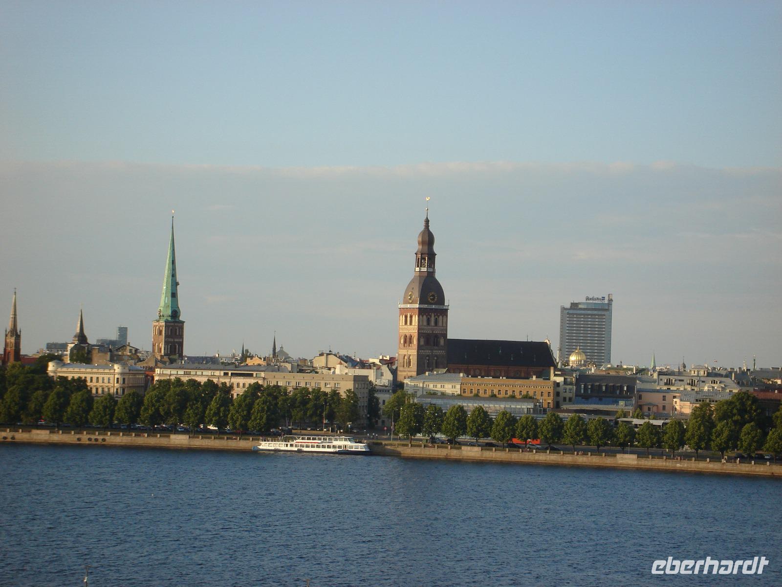 Nach einer Mittagspause fanden sich alle wieder am Bus ein, denn wir wollten ja weiter. Unser heutiges Etappenziel war die lettische Hauptstadt Riga. So fuhren wir über die Nehrung, auf der wir noch lange hätten bleiben können, zurück durch die Fischerdörfer und herrliche Landschaft zum Fährhafen von Smiltyne, von wo wir mit der Fähre in wenigen Minuten Klaipeda erreichten. Ein kurzer Halt an einer Raststätte in Kleipeda, und auf gings nach Riga, der Stadt an der Daugava [deutsch: Düna], die in die Ostsee mündet. Mit über 700.000 Einwohnern ist Riga die größte Stadt des Baltikums. Unser Hotel Radisson blu Daugava liegt direkt an der Daugava und gegenüber dem Stadtzentrum, das wir somit zu Fuß gut erreichen konnten. Wir waren mehr als zufrieden und schmiedeten gleich Pläne für einen abendlichen Bummel. Einige gingen sogar noch vor dem Abendessen auf eine kurze Entdeckungstour.