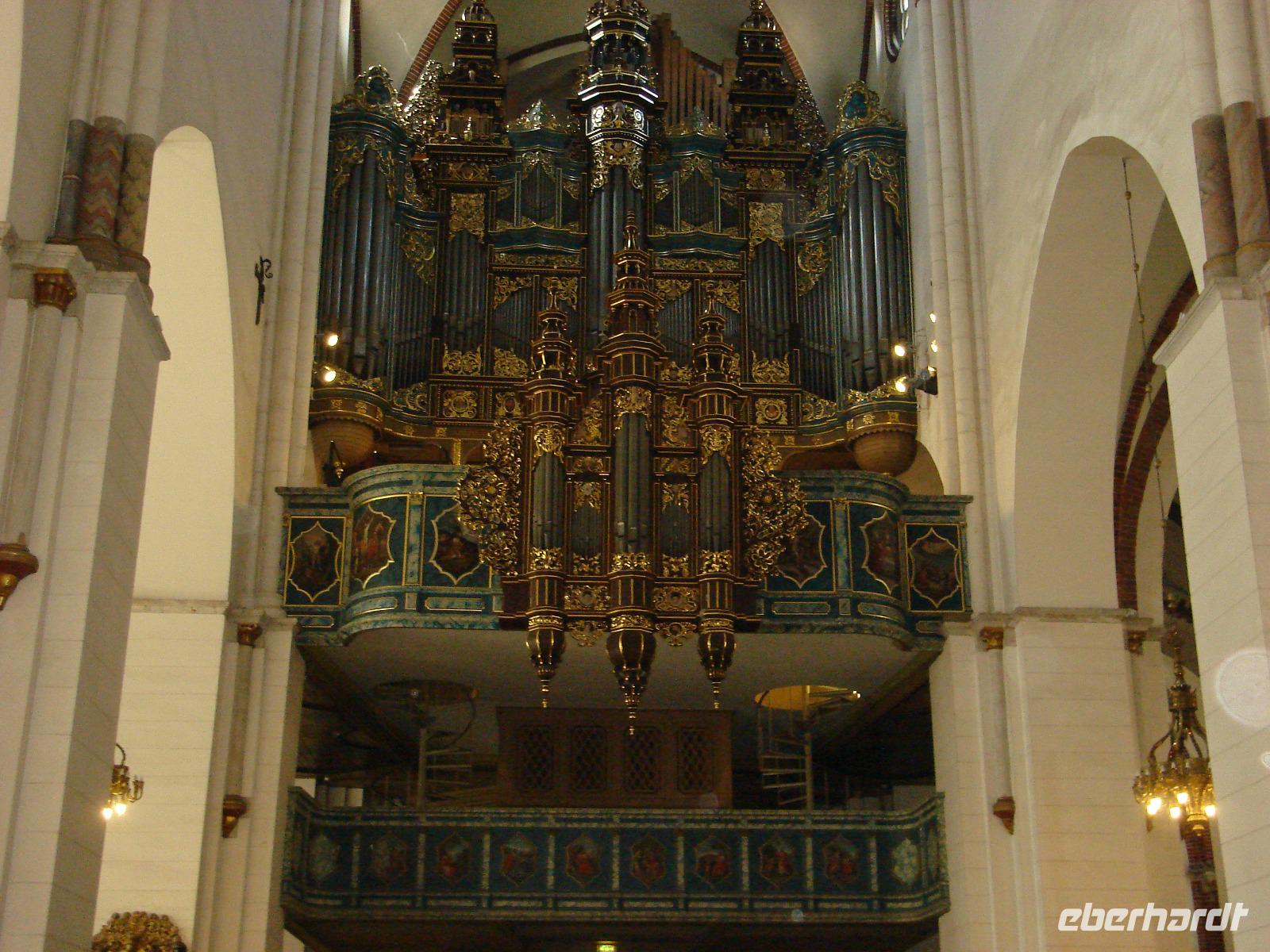 Roberto setzte uns dann in der Oberstadt ab, und weiter ging es zu Fuß. Wir bewunderten die russisch-orthodoxe Alexander-Newskij-Kathedrale, das Schloss aus der Übergangsphase vom Spätbarock zum Klassizismus, kamen vorbei am Dom und genossen immer wieder großartige Ausblicke auf die Unterstadt und die Ostsee. Kurzes Bein und Langes Bein heißen die Gassen auf dem Weg hinunter bis zum Rathaus. Hier beendeten wir unseren Rundgang. Anregungen für die individuelle Gestaltung der Freizeit am Nachmittag hatte es während des Rundgangs ausreichend gegeben: so u.a. Bernd Notkes Altäre in Nikolai- und Heiliggeistkirche, ein Rundgang auf der Stadtmauer, diverse Museen, unendliche viele Geschäfte mit Souvenirs und geschmackvollen Textilien, und nicht zu vergessen die guten Kuchen, die überall angeboten wurden. Auf dem Rathausplatz fand außerdem gerade ein großer Markt statt. Da hatte man die Qual der Wahl.