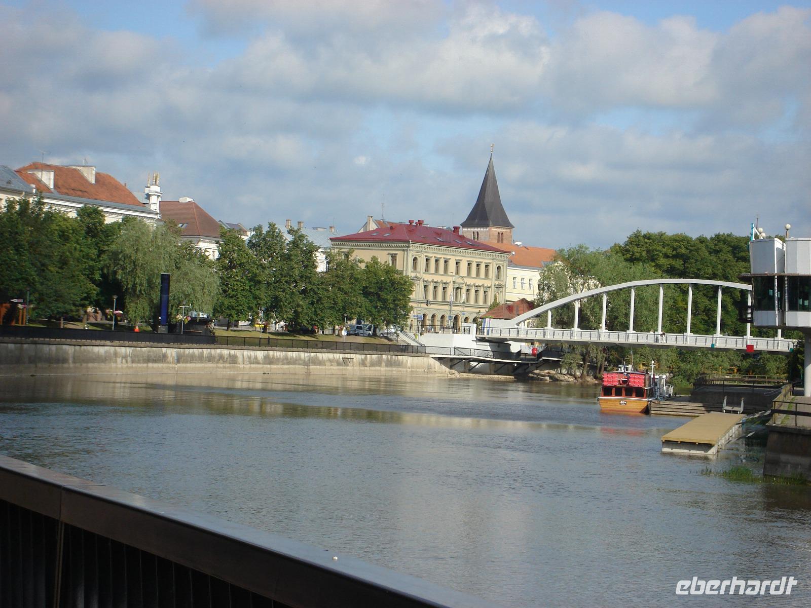 Heute wollten wir die Stadt Tartu kennenlernen. Mit unserer örtlichen Reiseleiterin gingen wir vom Hotel am Fluss entlang zum Marktplatz und zum Rathaus. Unterwegs kamen wir an der Bogenbrücke vorbei, über deren Bögen jeder ordentliche Student der Stadt gelaufen sein sollte. Aber es ist ziemlich gefährlich, waren wir uns einig.