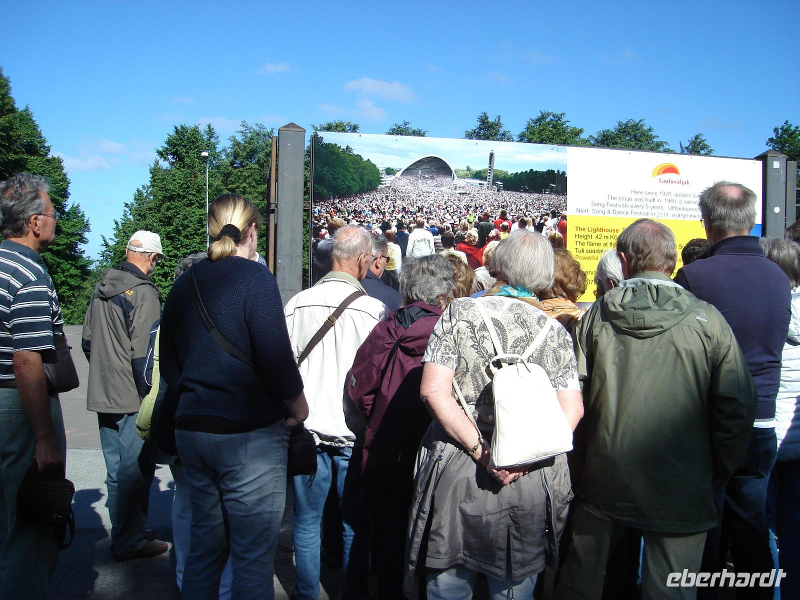 Heute sollten wir nun Tallinn, die Hauptstadt Estlands auf einem Rundgang genauer kennenlernen. Wir starteten an unserem Hotel Radisson blu Sky mit einer Rundfahrt. Zunächst besuchten wir den Sängerfestplatz mit seiner großen Bühne (der Muschel), wo seit Jahrzehnten das seit 1869 traditionelle Sängerfestival Estlands stattfindet und 1989 die „singende Revolution" mit 300.000 Beteiligten eingeleitet wurde.